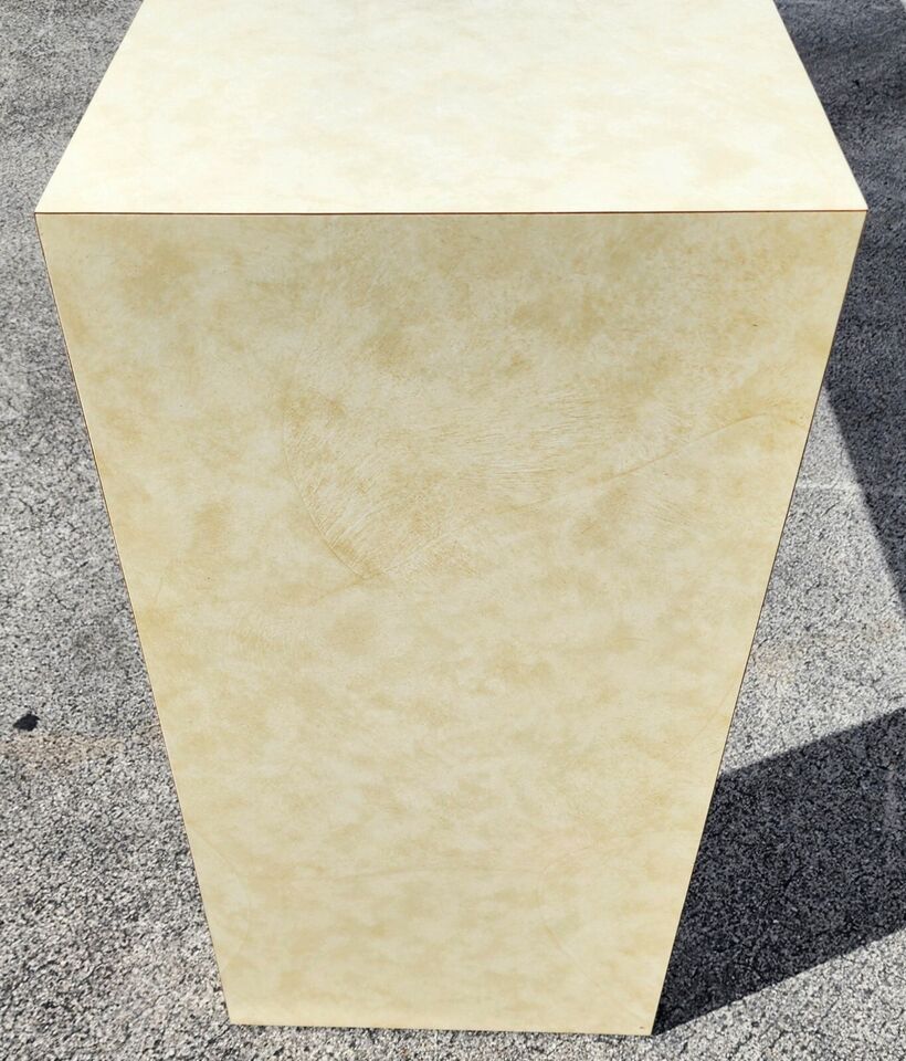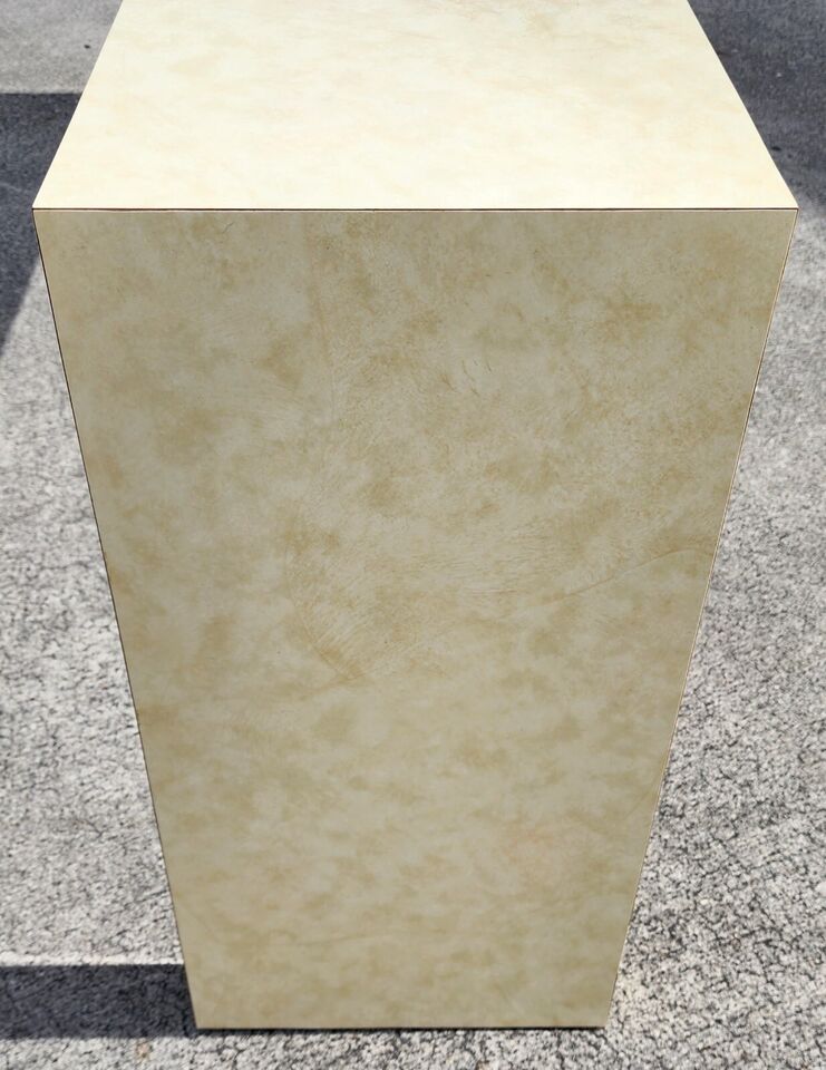 In good, structurally sound and sturdy condition with a small imperfection on the bottom back corner of 1 leg as shown in the last photo. The photos and video are an important part of the item description and condition so please use the zoom feature to view them closely.