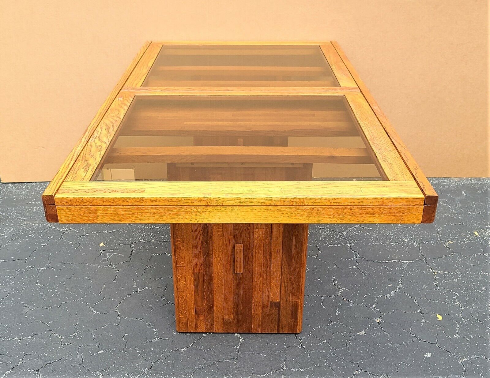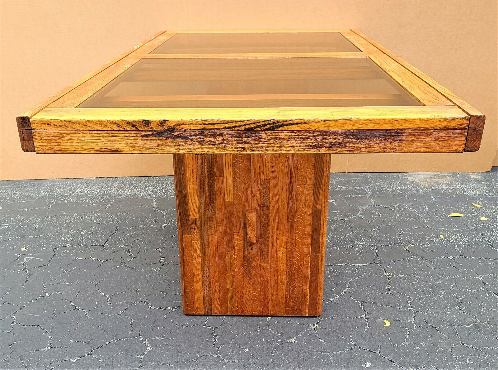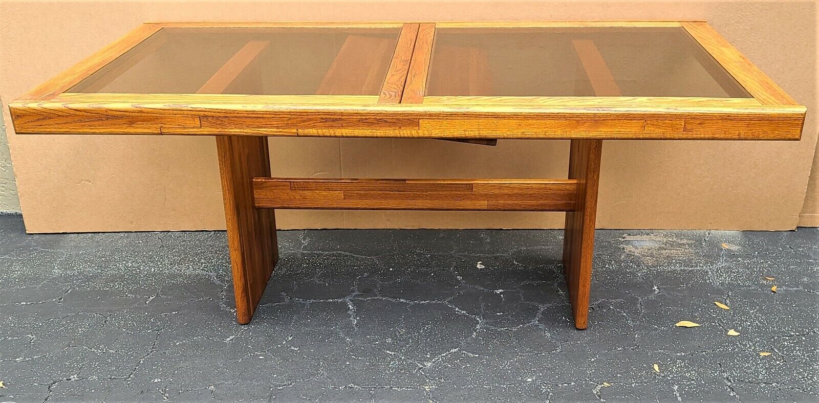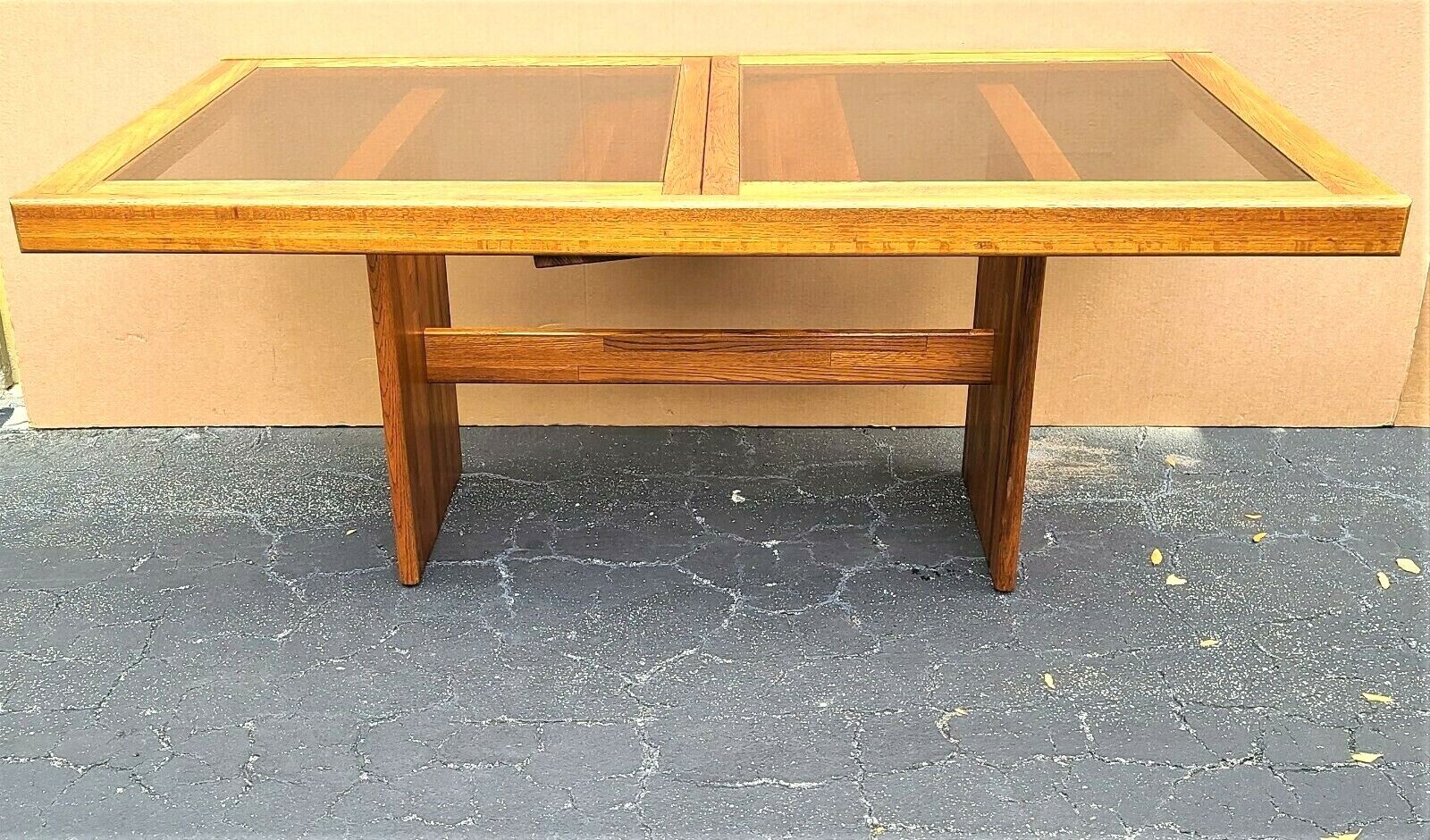 MCM Vintage Solid Teak Smoked Glass Extendable with Pop Up Leaf Dining Table