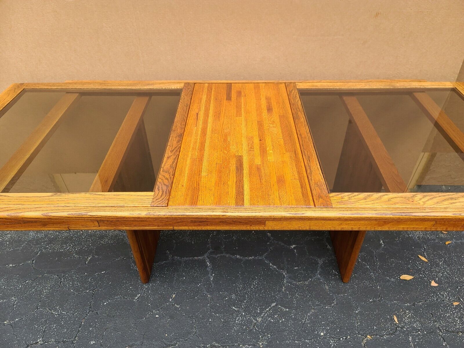 MCM Vintage Solid Teak Smoked Glass Extendable Pop Up Leaf Dining Table