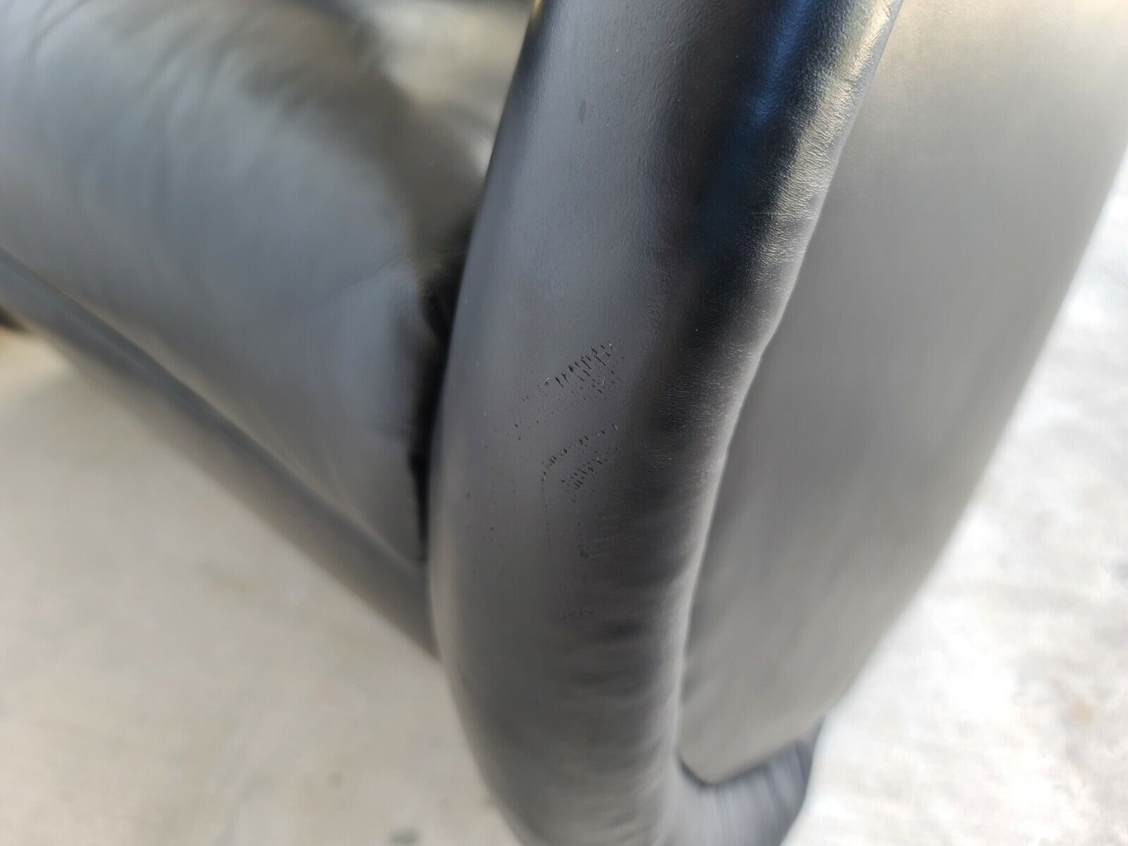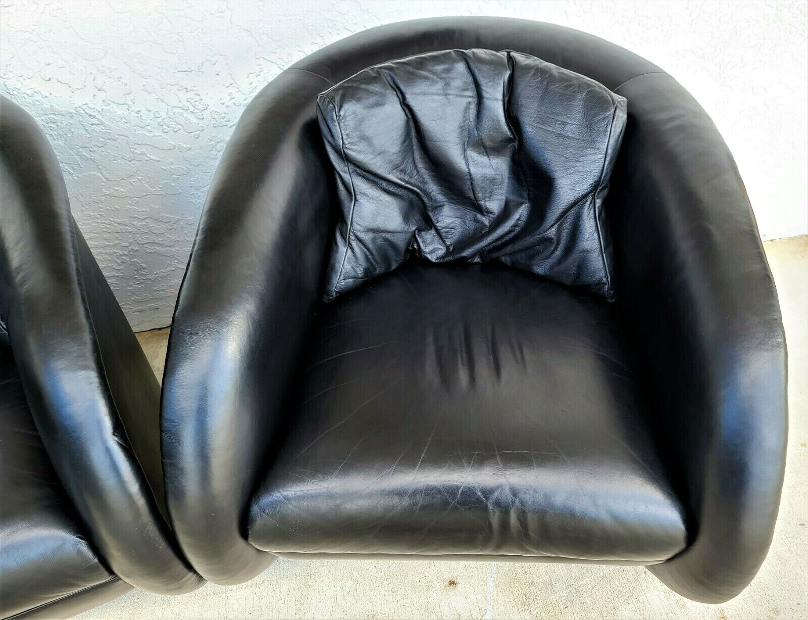 Pair of Mid Century Modern Black Leather Swivel Barrel Lounge Chairs by PREVIEW
