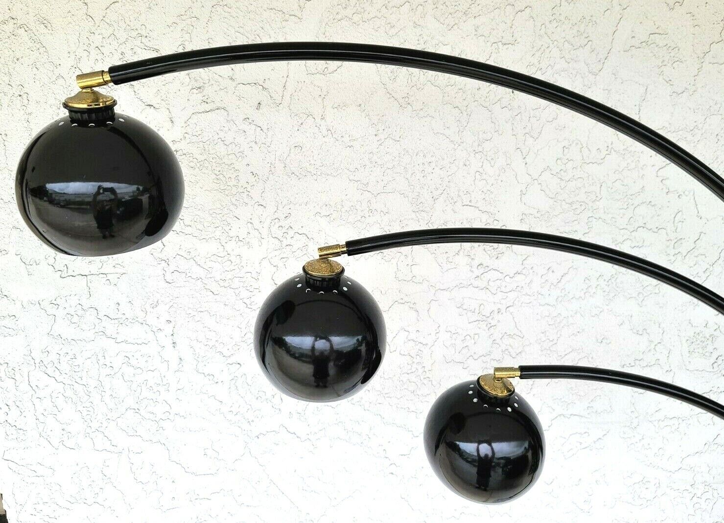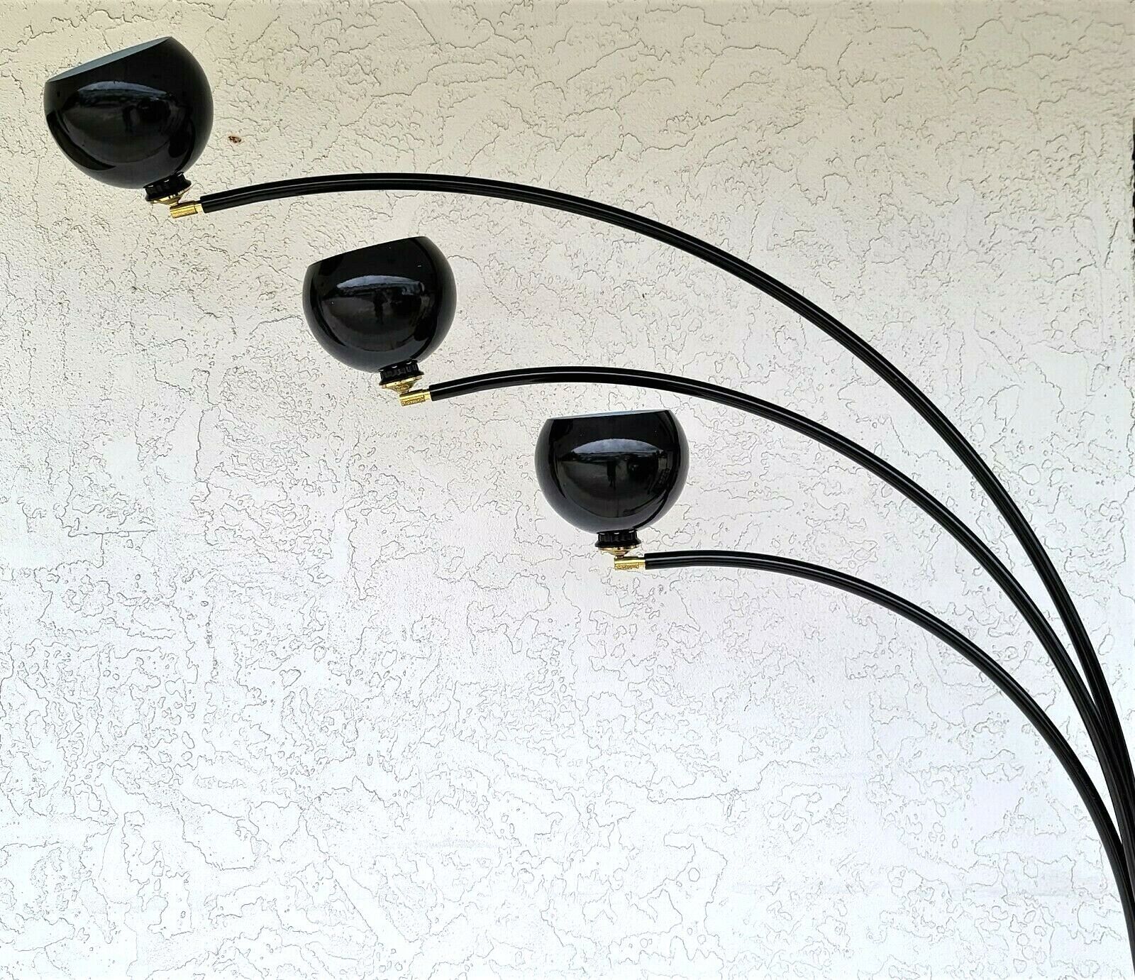 Mid-Century Modern Italian Black Chrome & Marble Guzzini Style Multi Directional Arc Floor Lamp