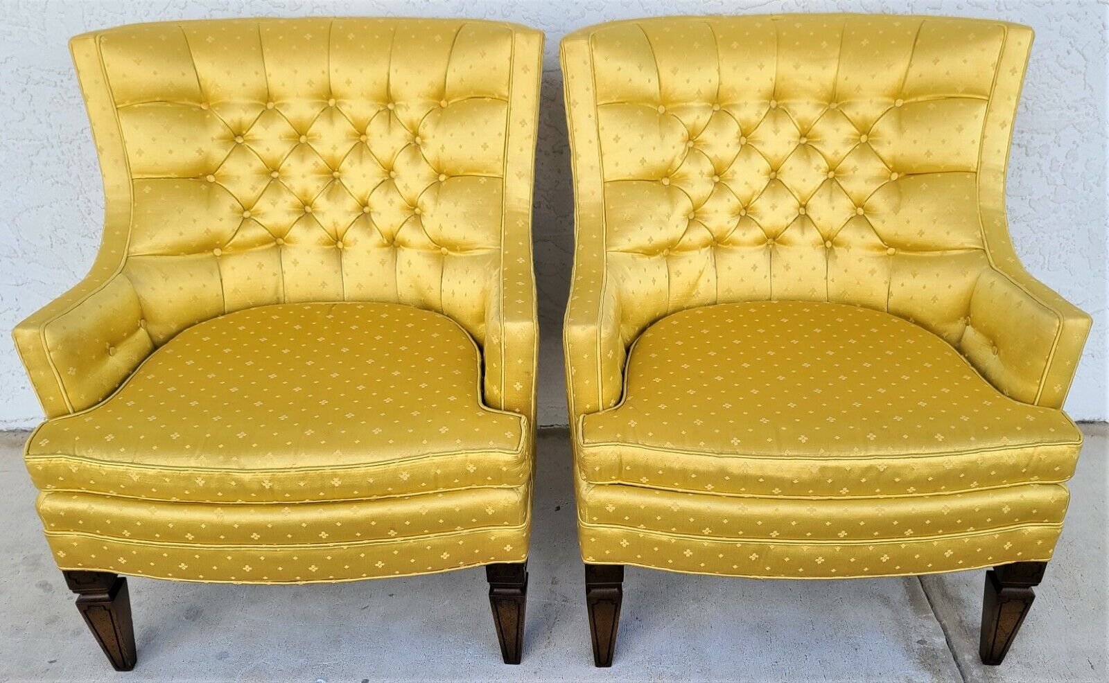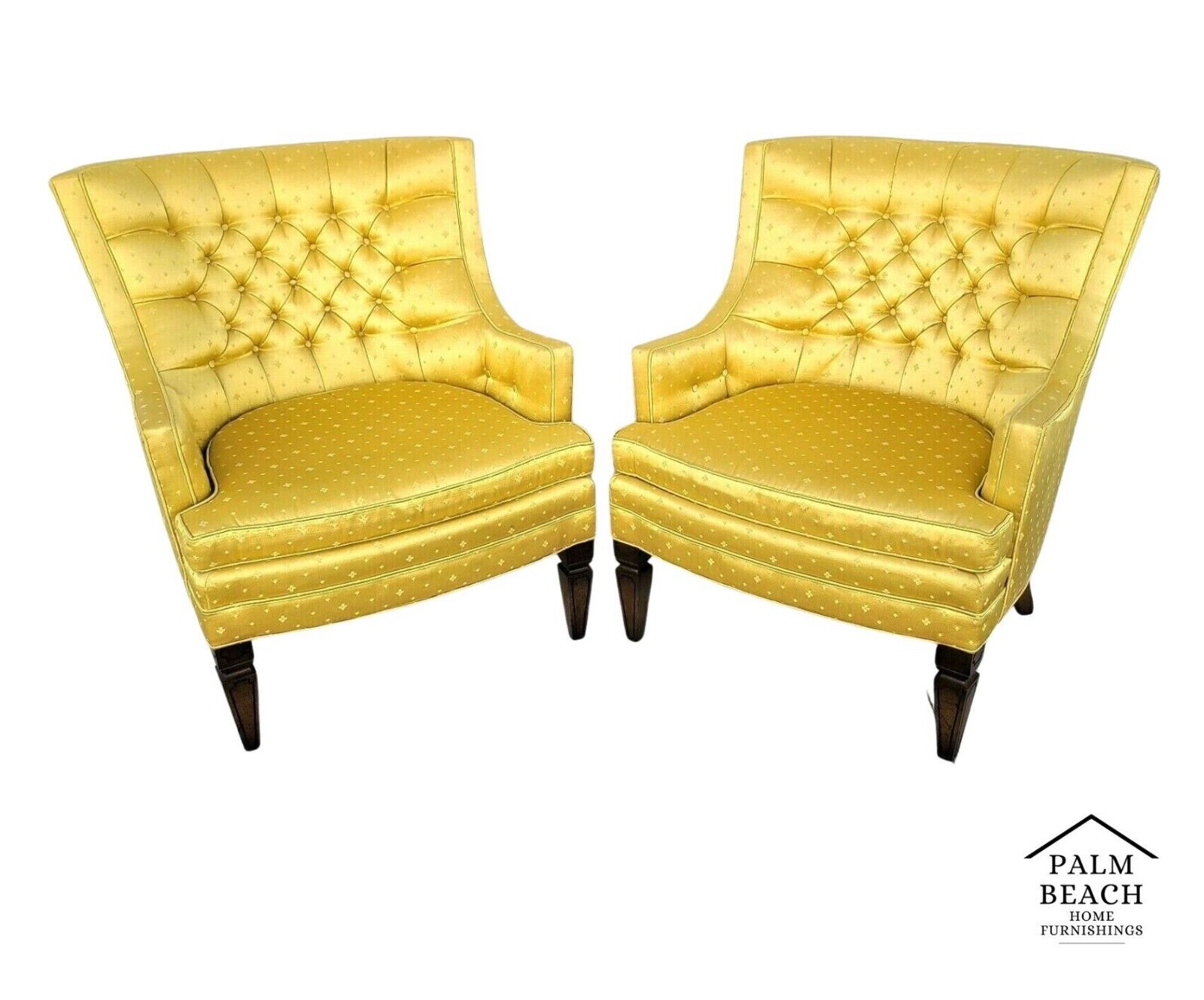 Pair of Mid Century SILVER CRAFT Hollywood Regency Tufted Club Lounge Chairs