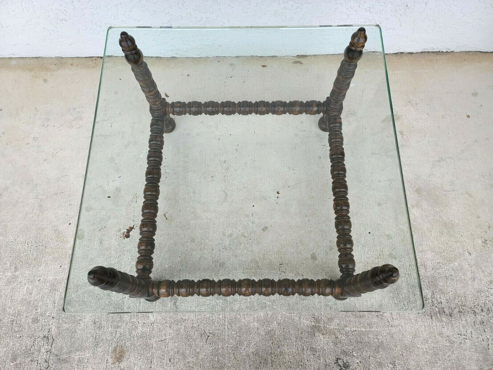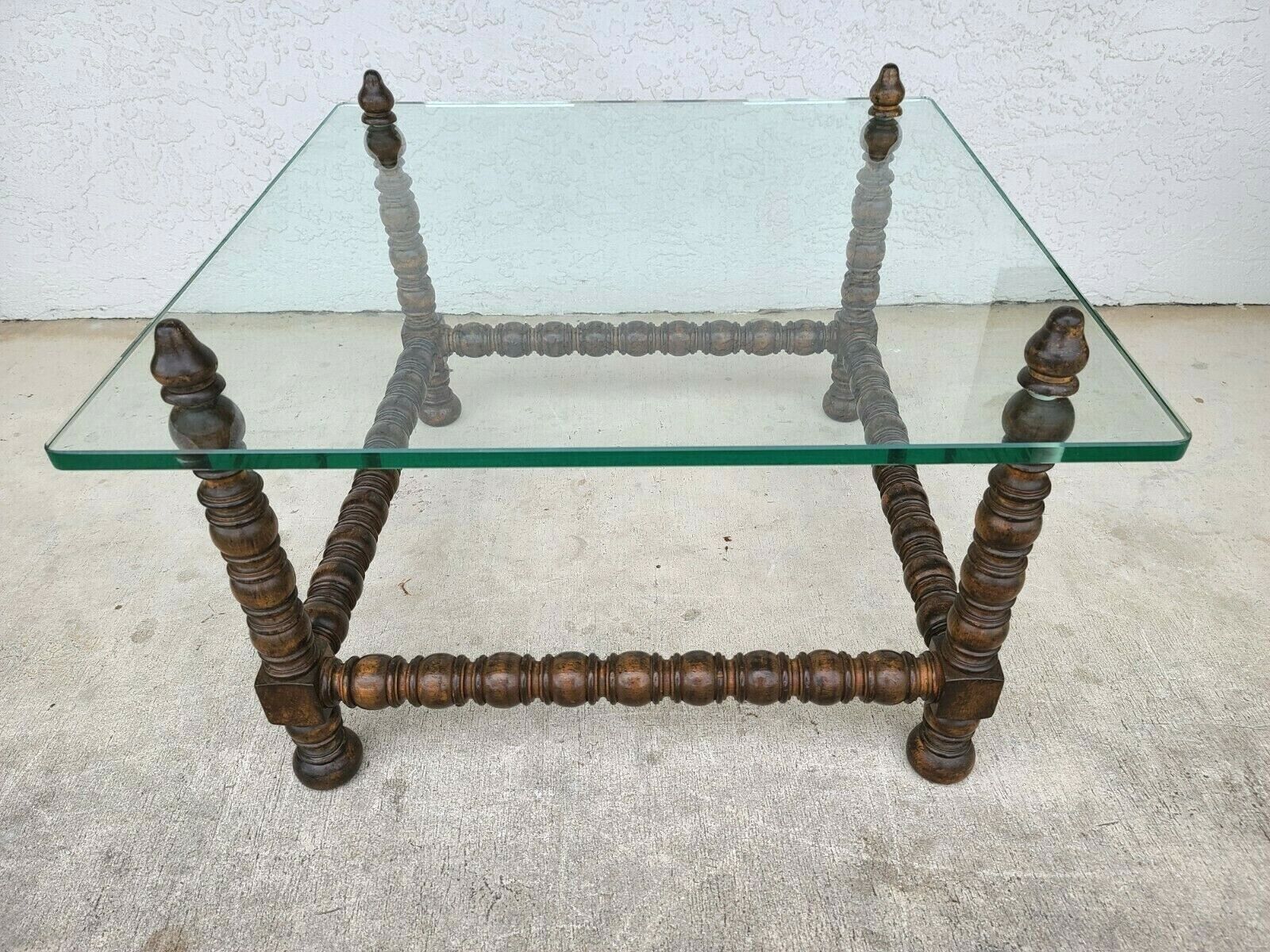 In structurally sound and sturdy condition with no chips on glass. Wood may have some light wear and glass may have some small light scratches.