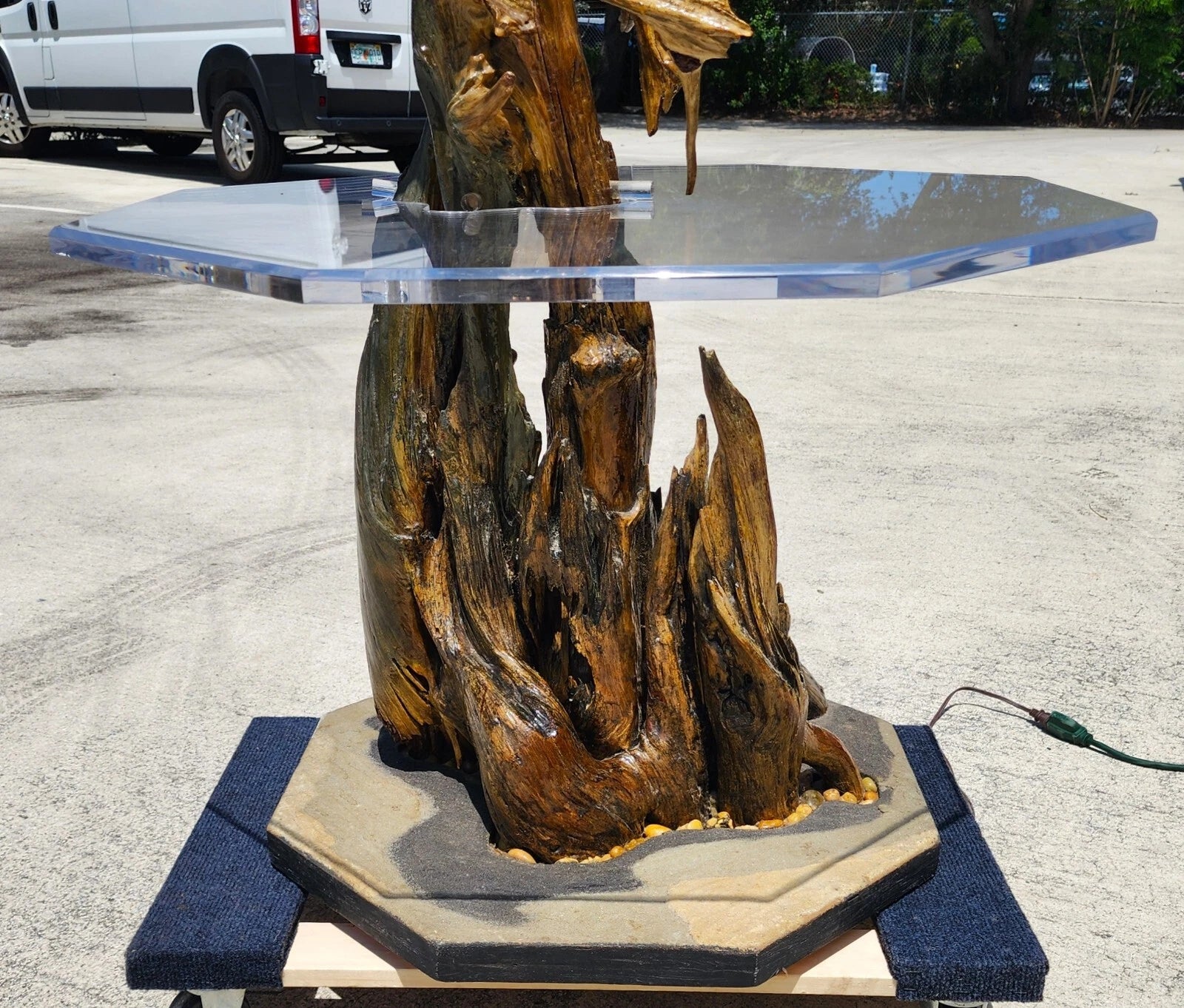 Monumental Rustic Driftwood Floor Lamp with Lucite Table Top