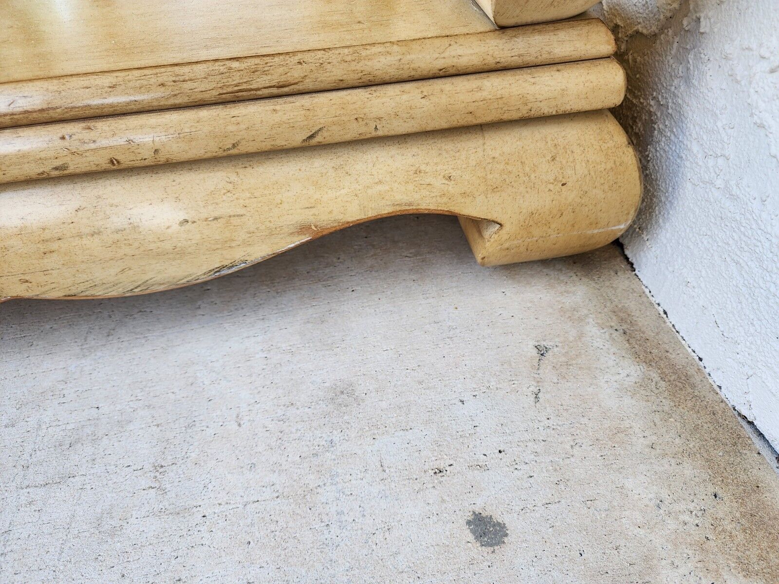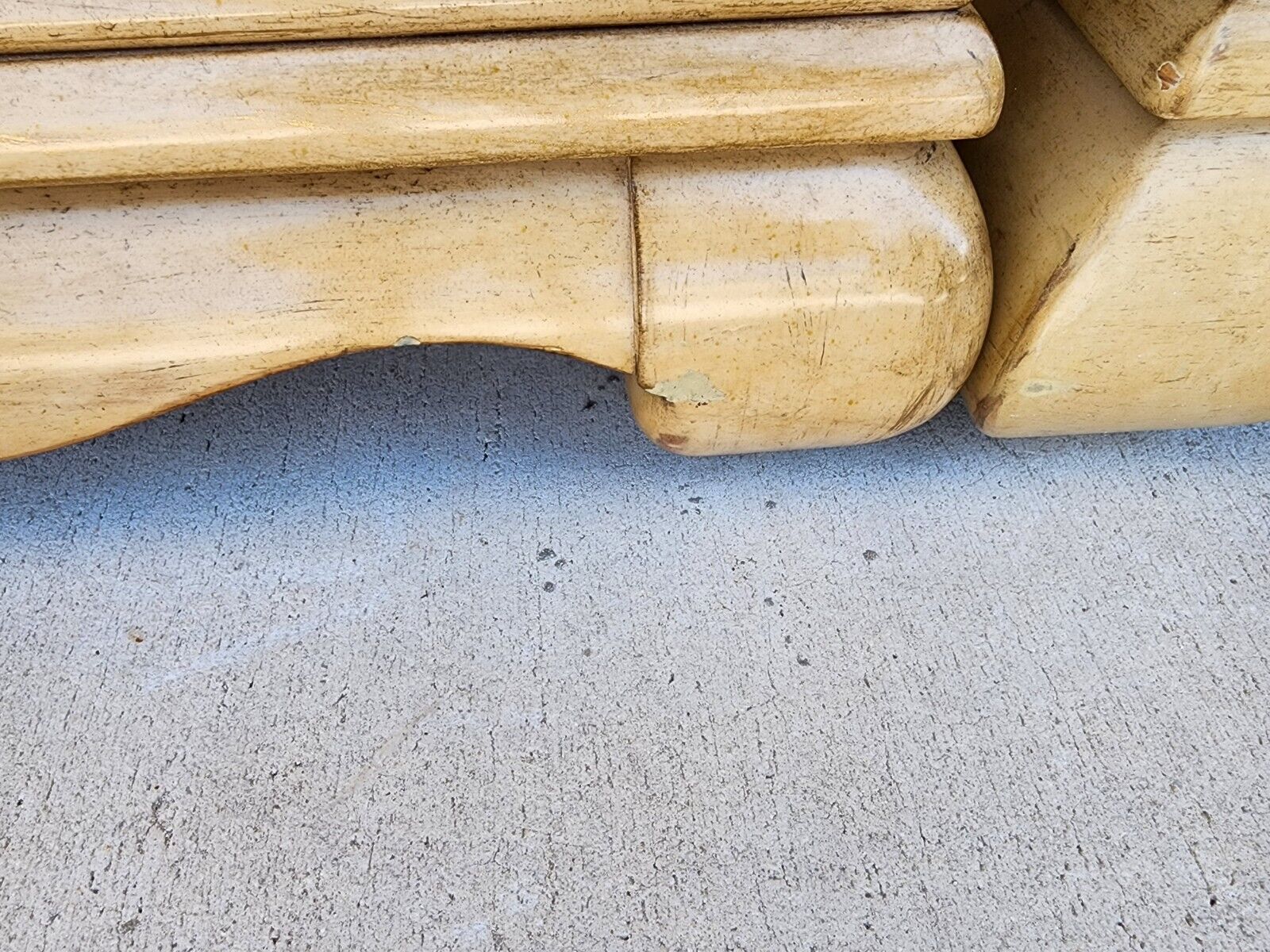 In good, structurally sound and sturdy condition. There are a few small stains on the tops and some nicks and dings mostly near the bottoms of the feet, the worst of these issues are shown in the photos. The photos are an important part of the item description and condition so please use the zoom feature to view them closely.