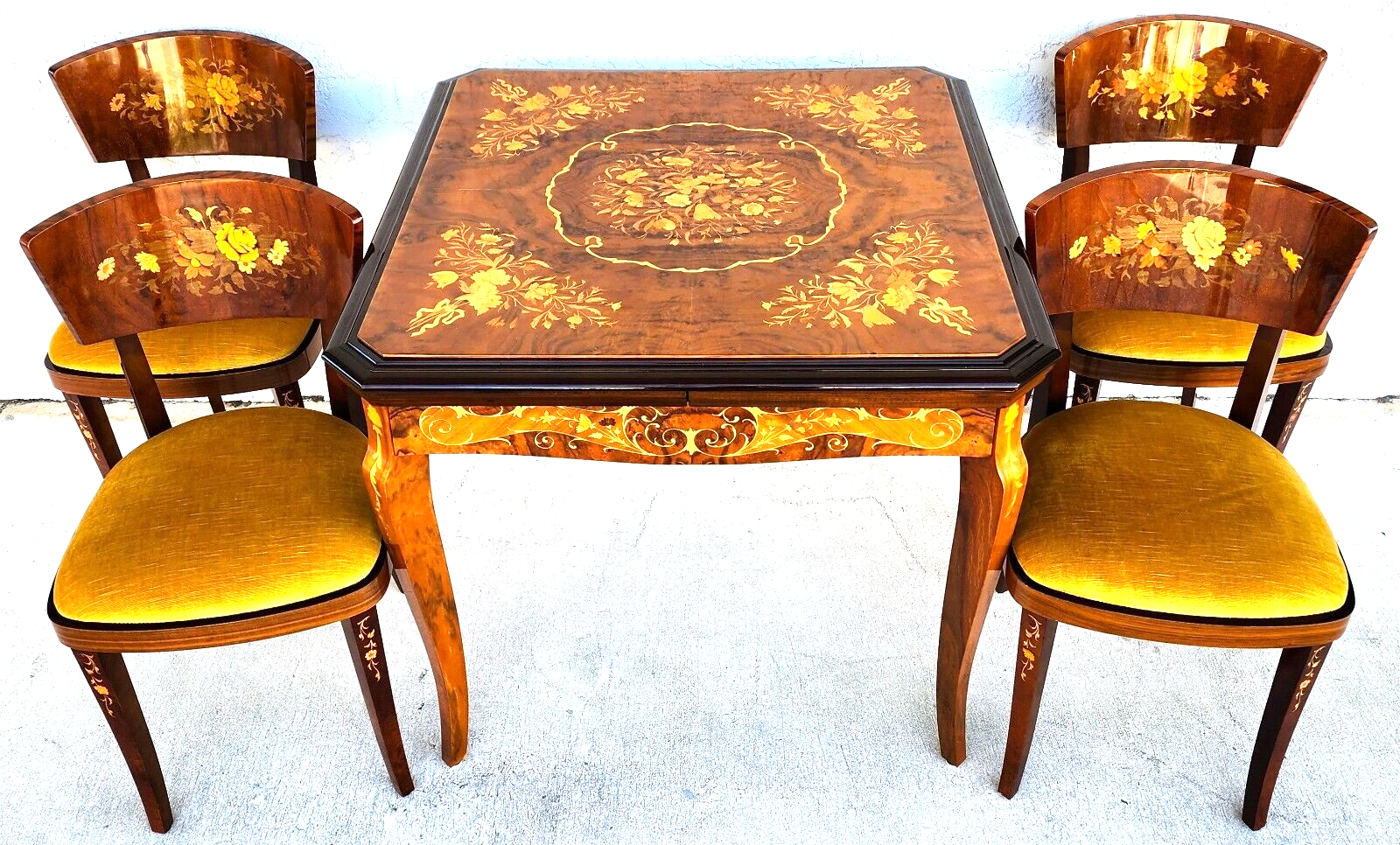 Italian Notturno Intariso Casino Game Table & 4 Chairs