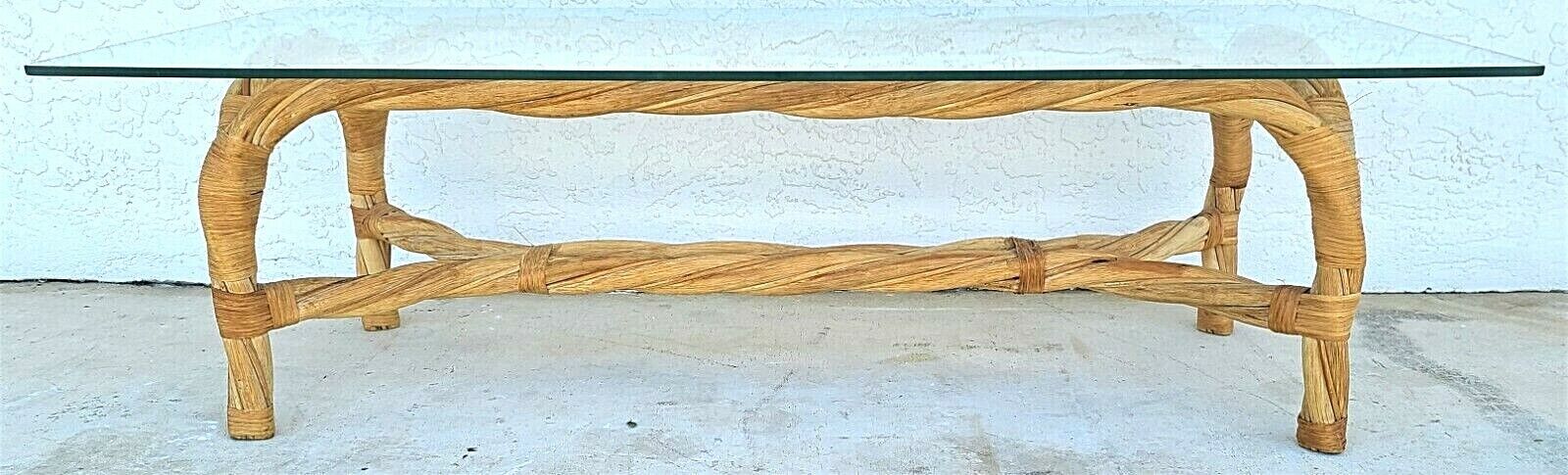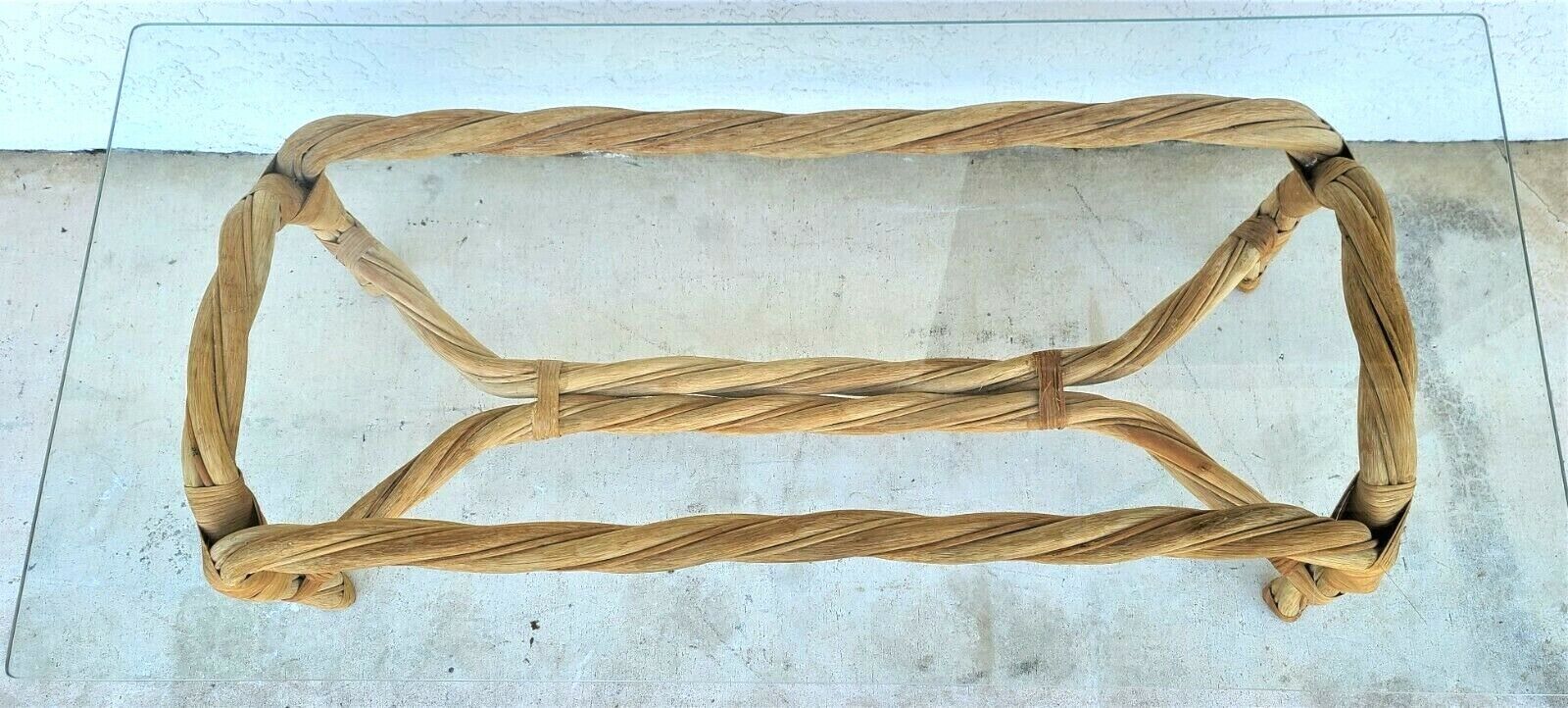 Organic Modern Coastal Twisted Braided Bentwood & Rattan Glass Top Coffee Table