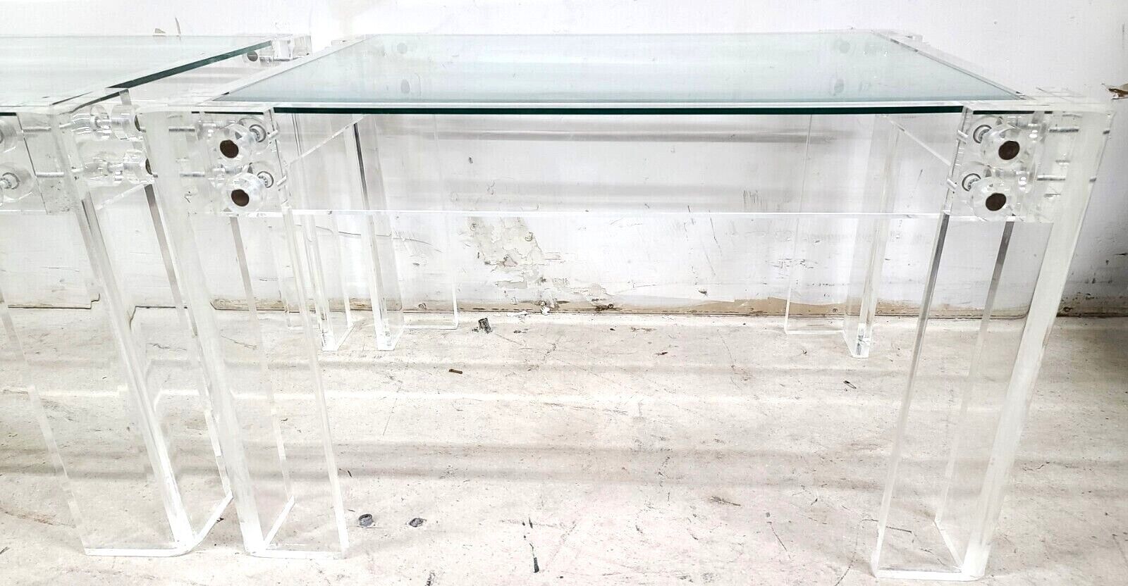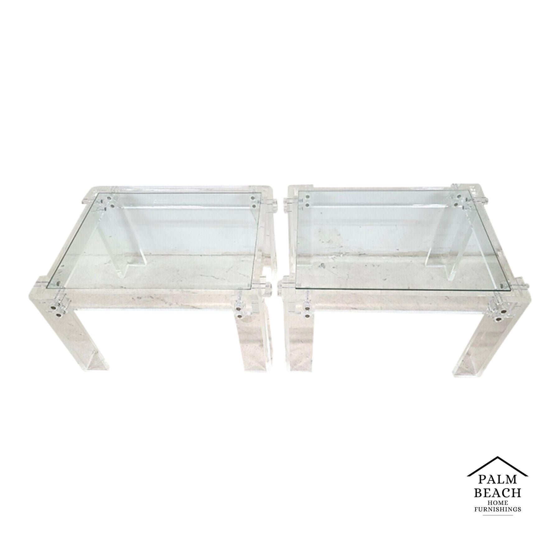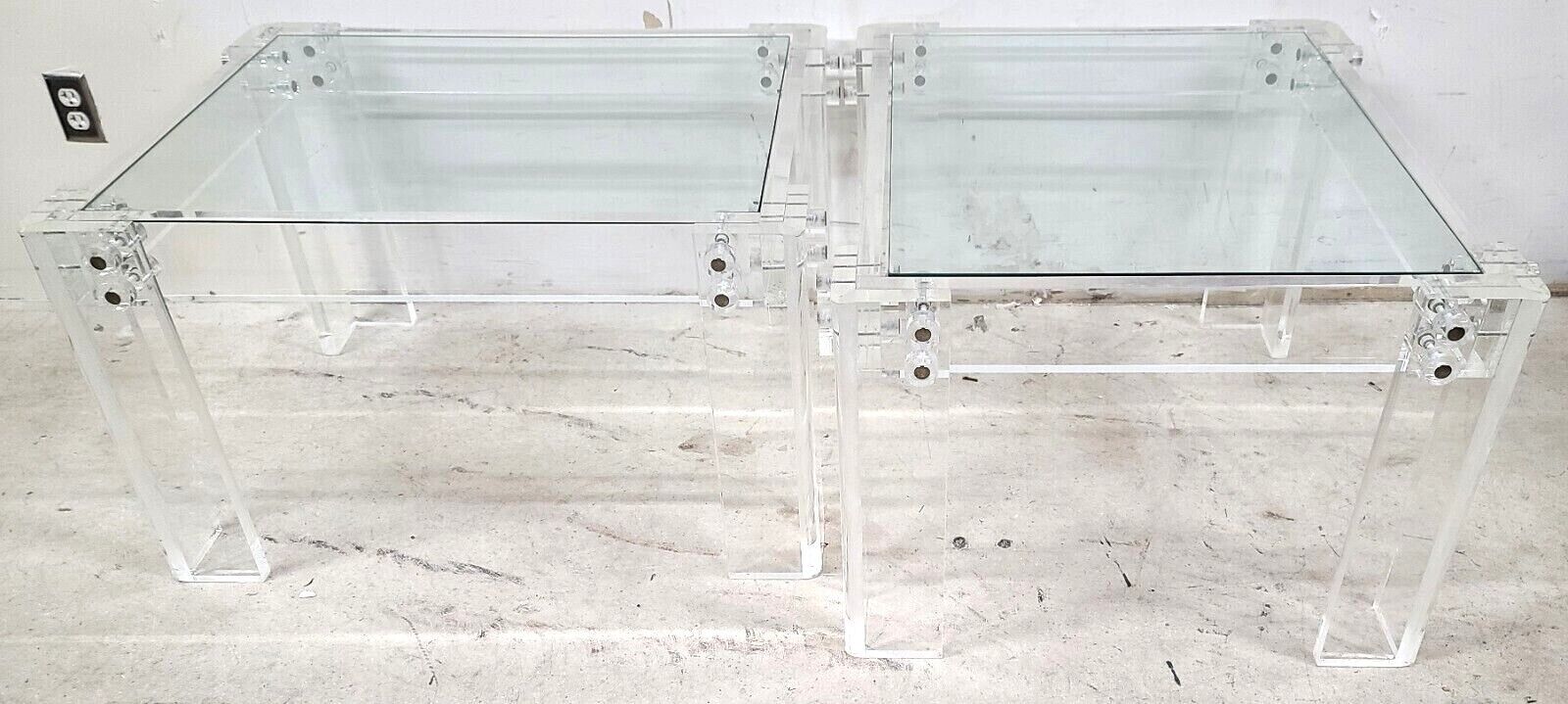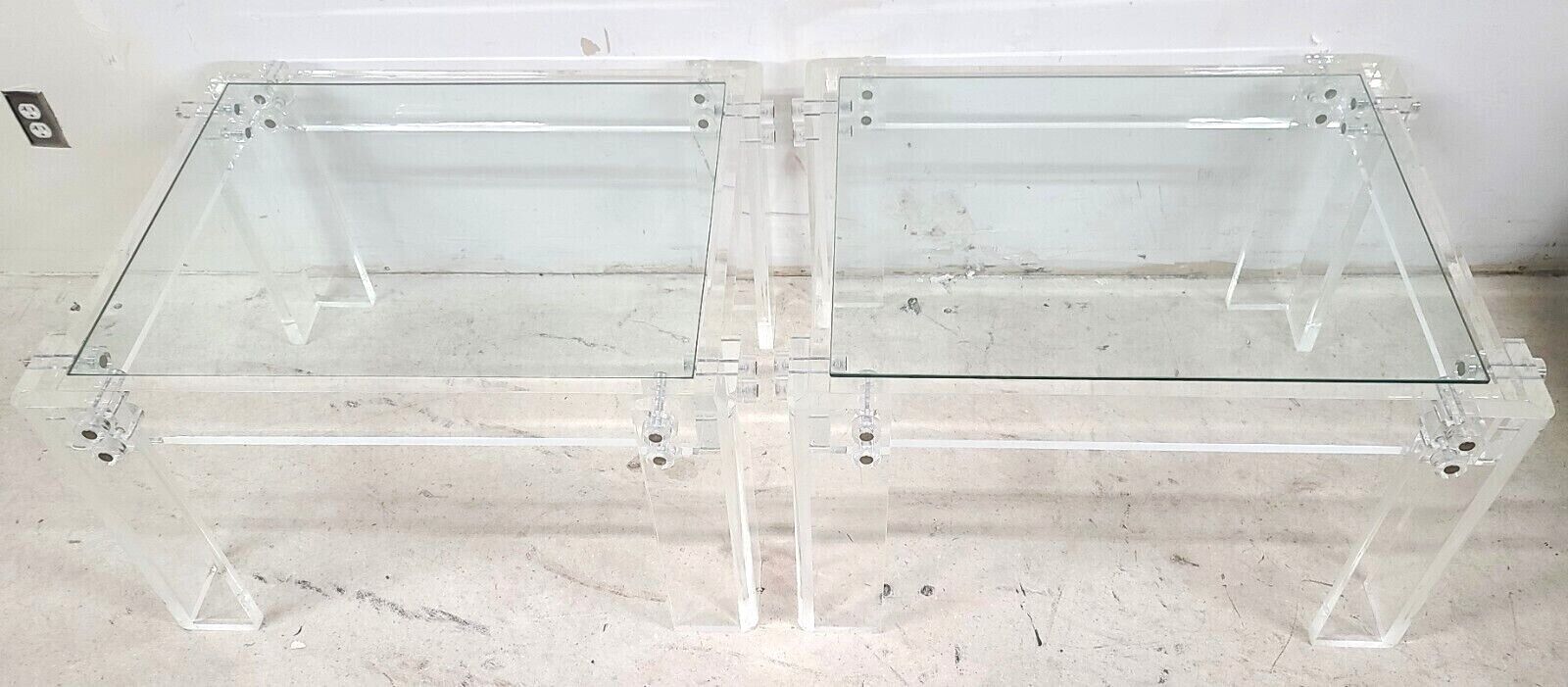 Oversized 1970s Vintage MCM Lucite Glass Side End Tables