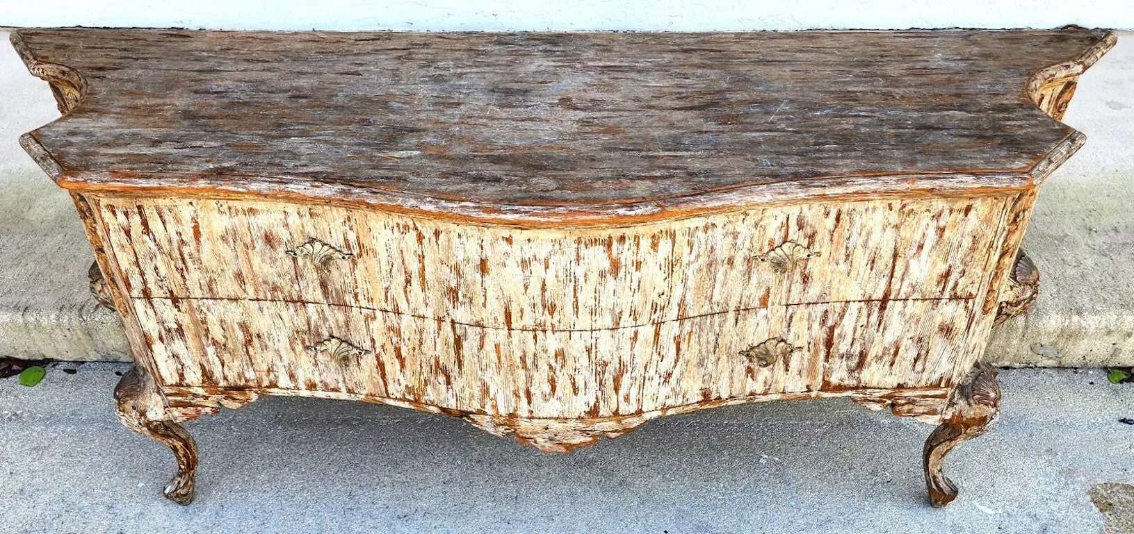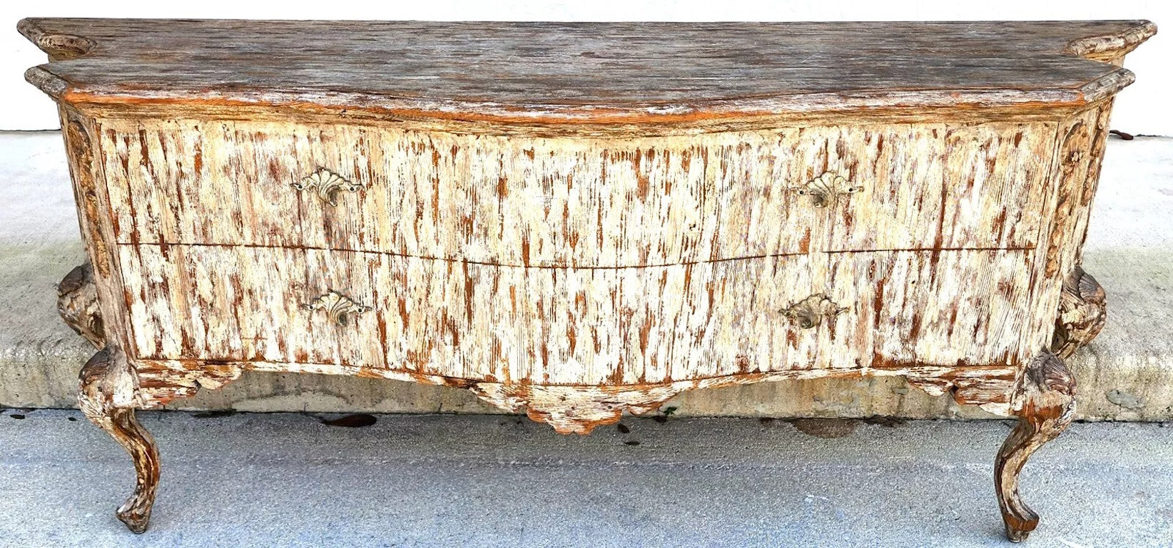 Painted Coastal Highly Distressed Rustic Console Buffet Table