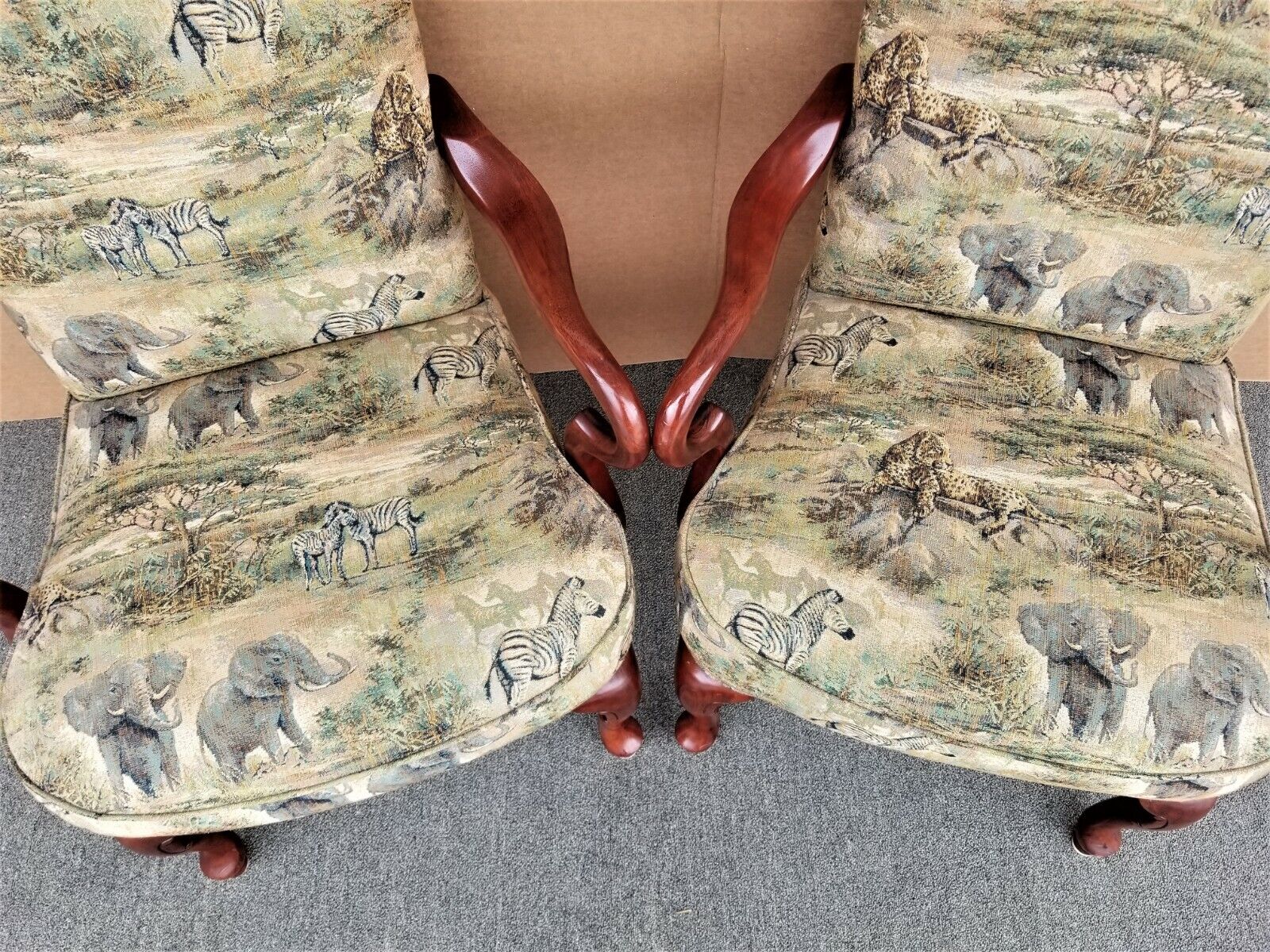 Featuring tapestry style animal print fabric and are very comfortable with spring supported seats.