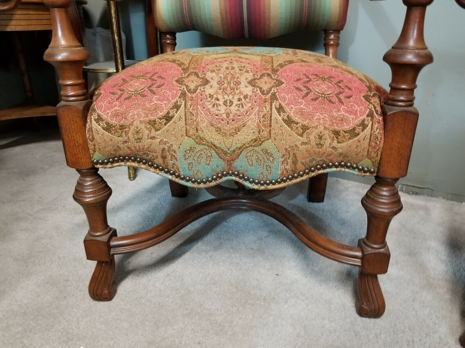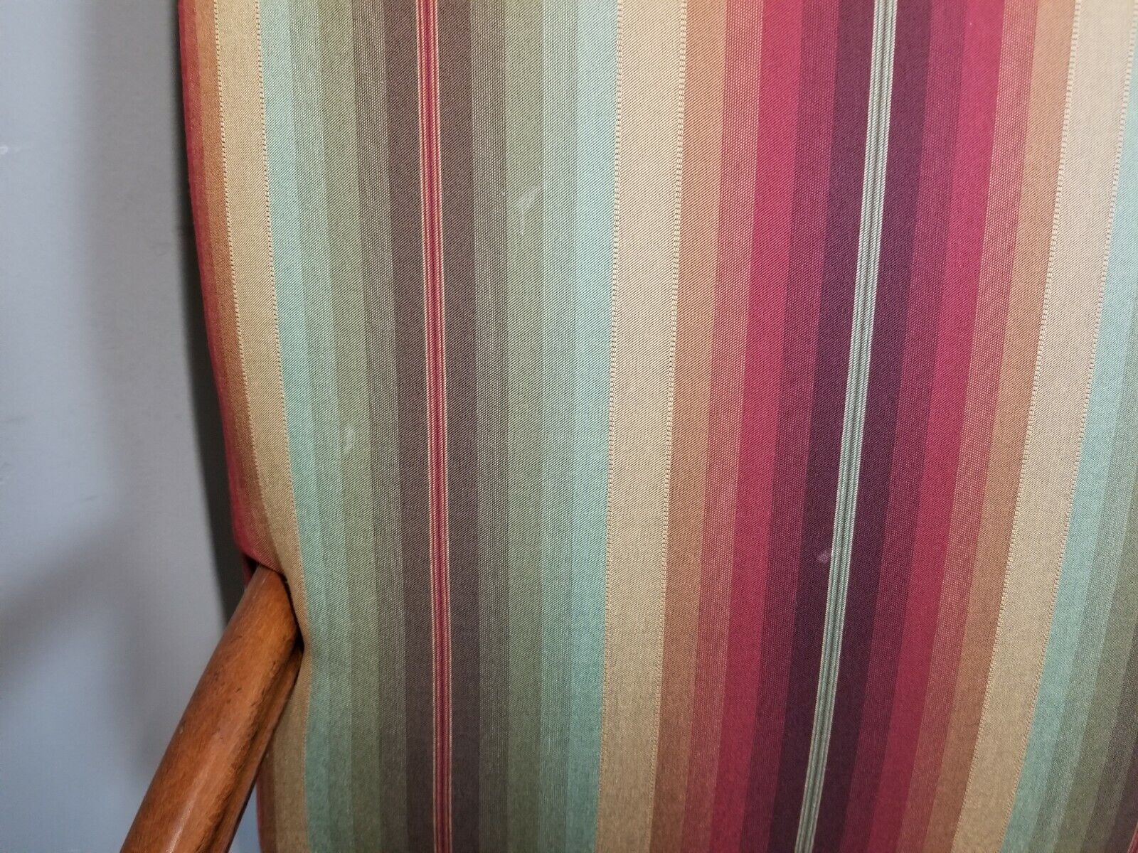 Fabric looks new with the exception of 3 small lighter spots on the back of 1 chair as shown in 9th photo.