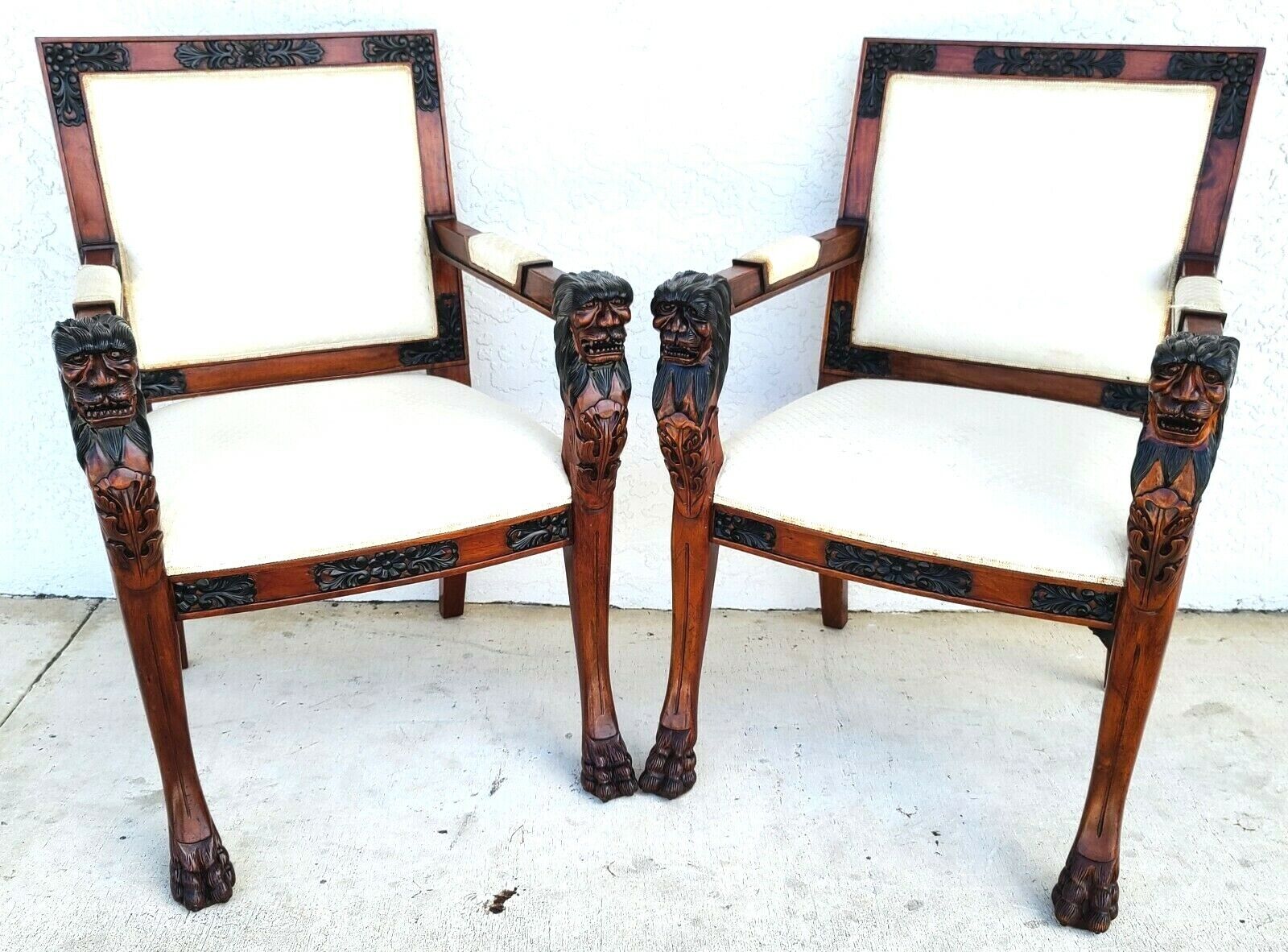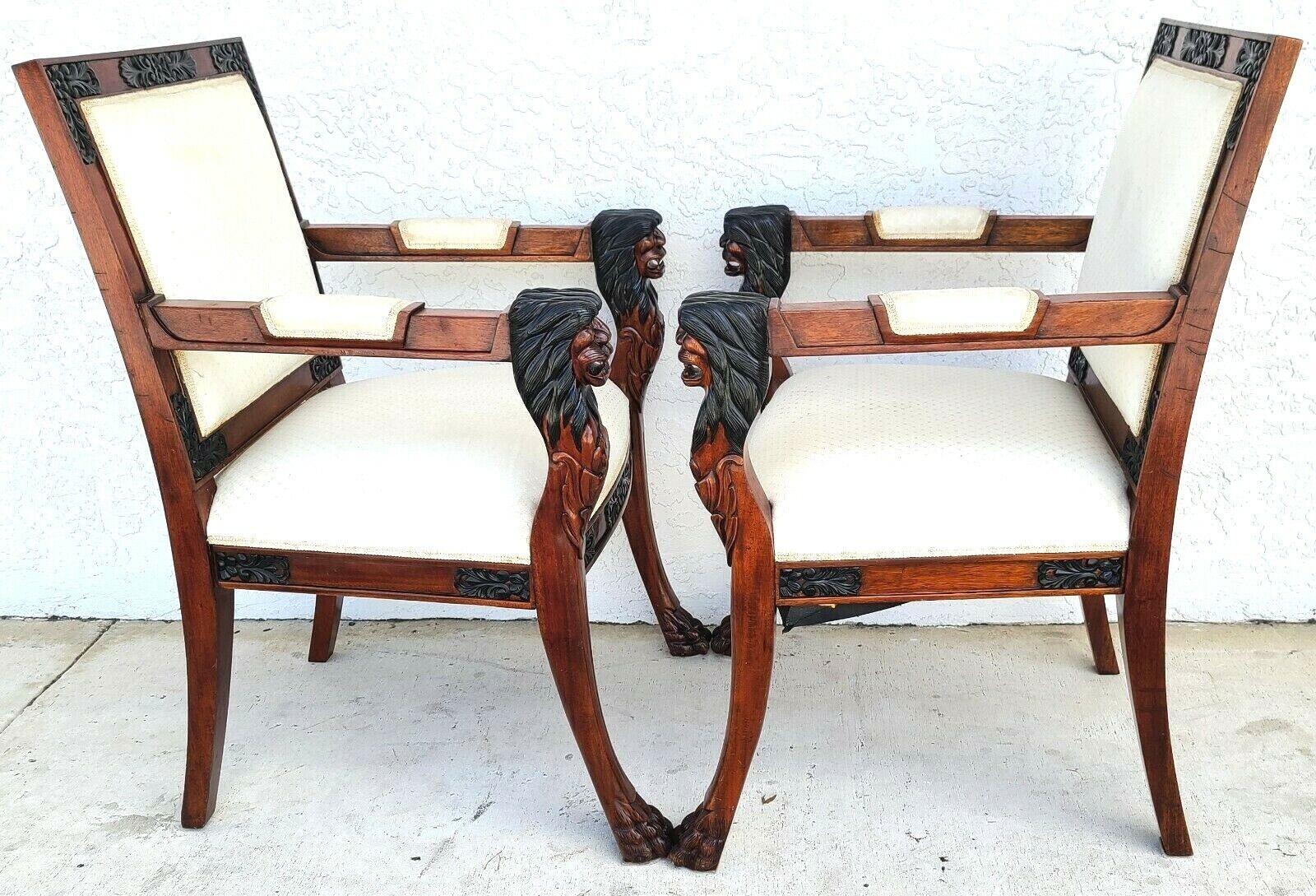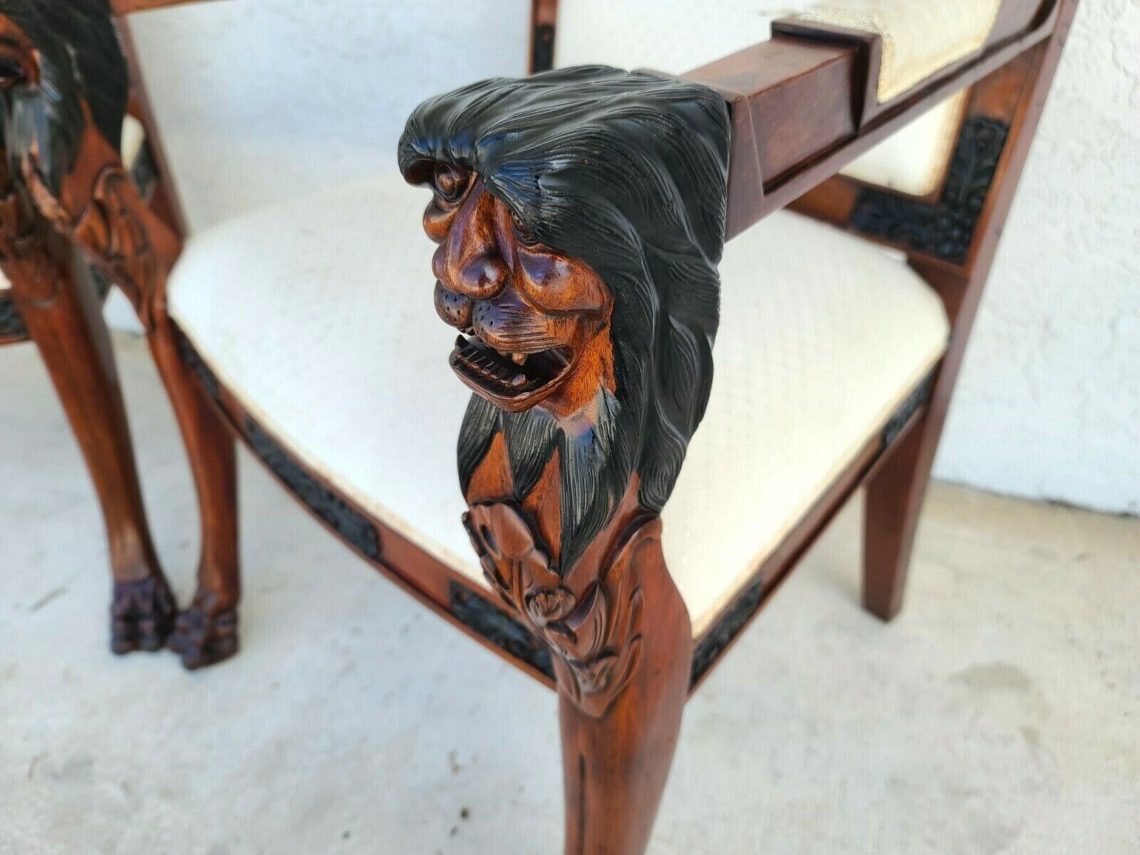Pair of Hand Carved Mahogany Lions Head Armchairs
