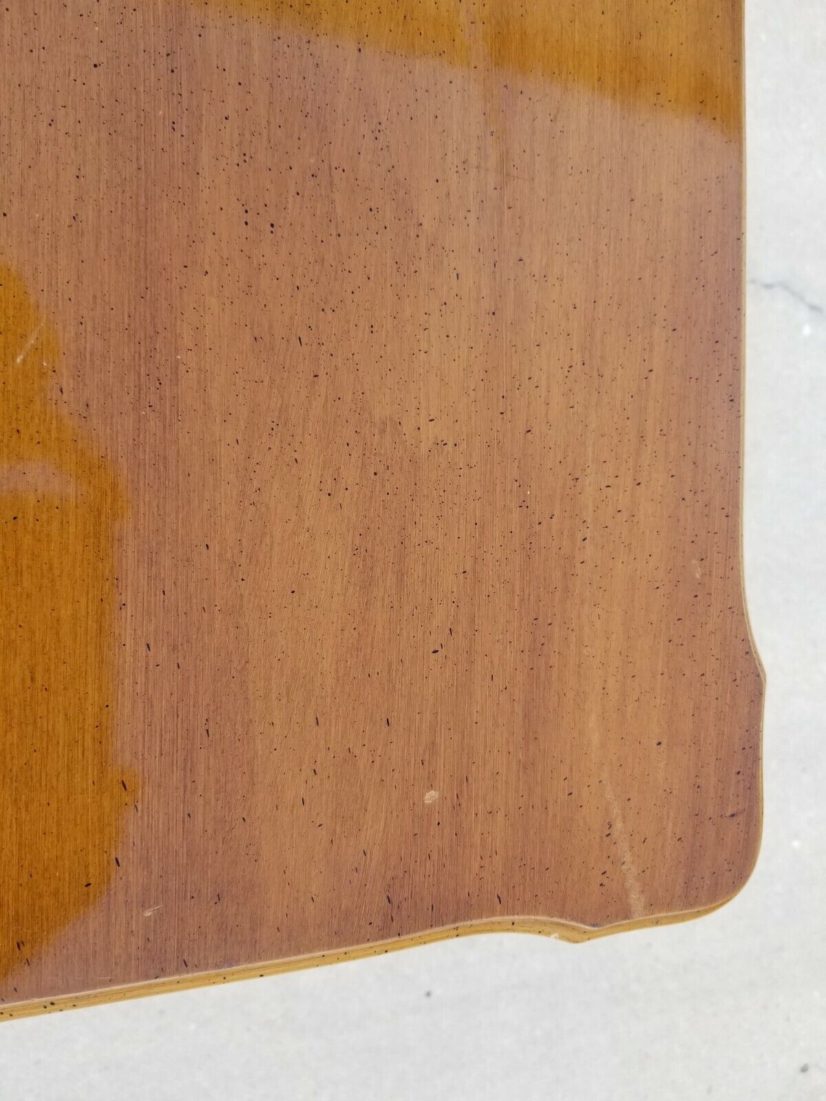 Structurally sound and sturdy with some scratches and dings on their tops, and wear to finish at bottoms of legs-the worst of which are shown.