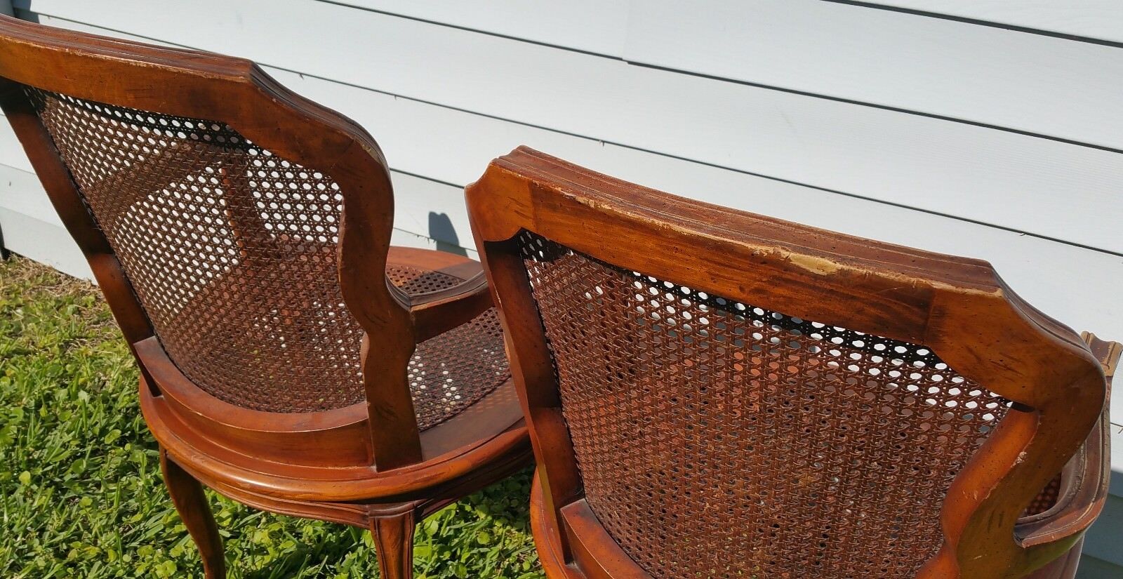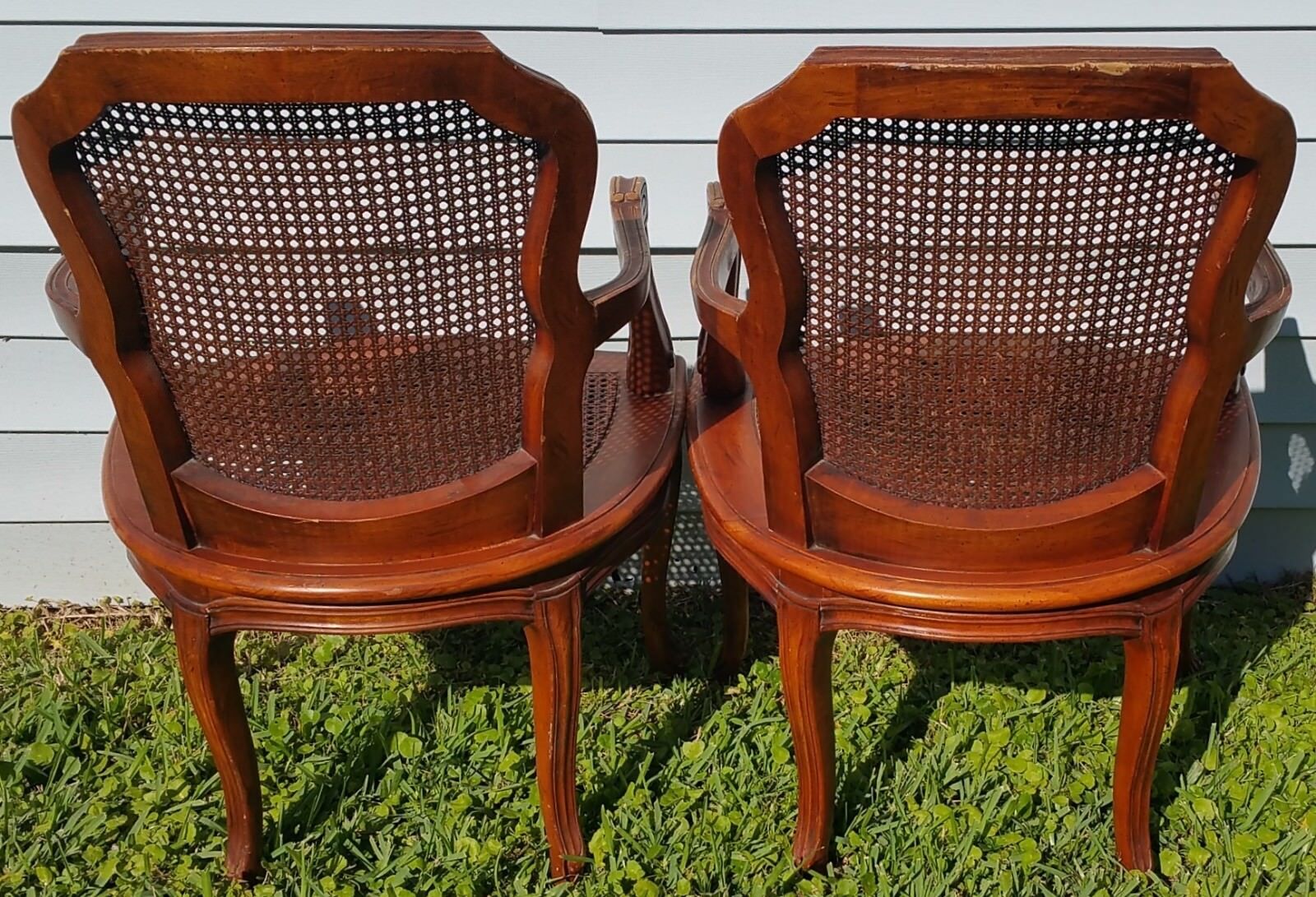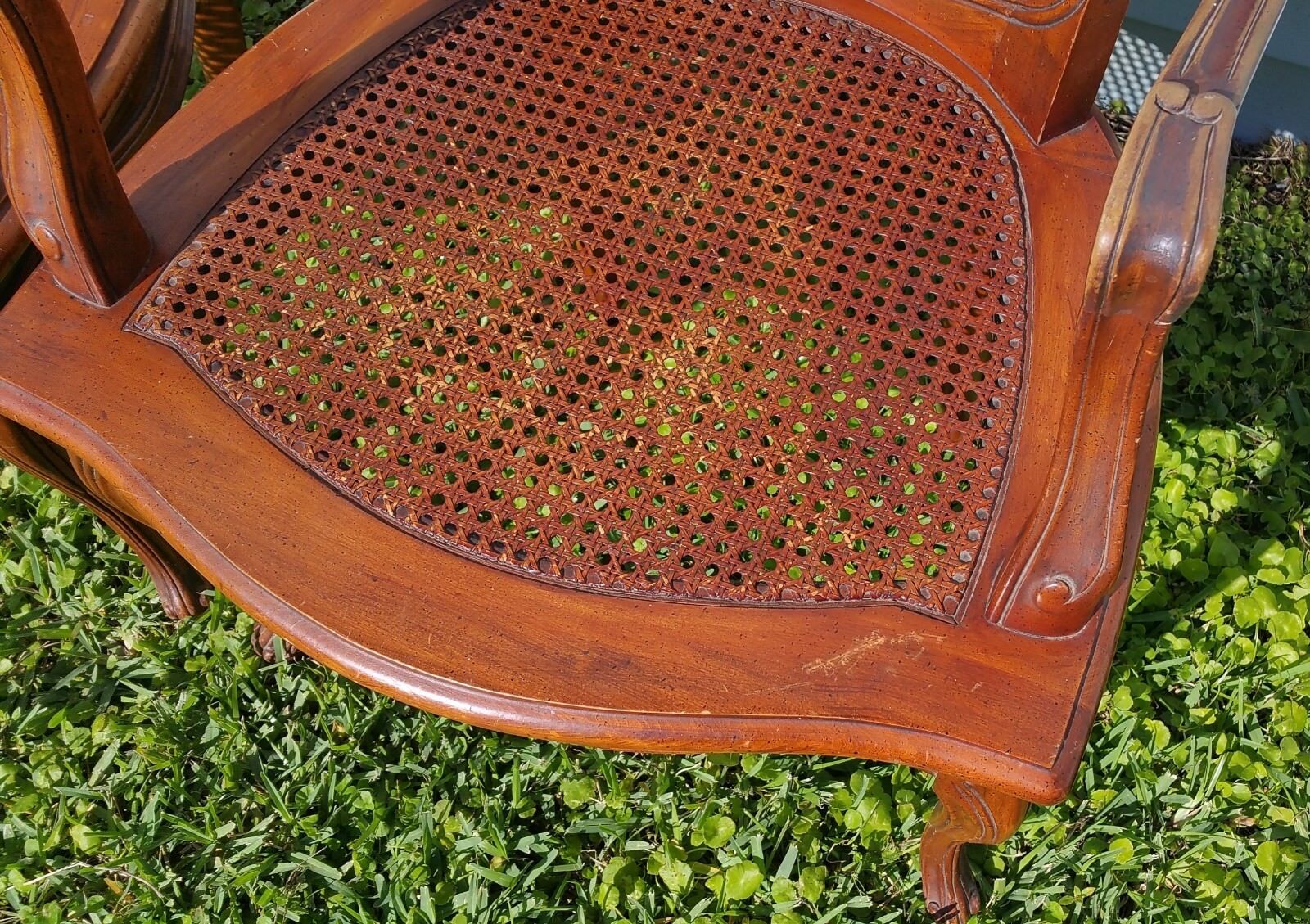Pair of Vintage Louis XV French Provincial Country Cane Back & Seat Armchairs