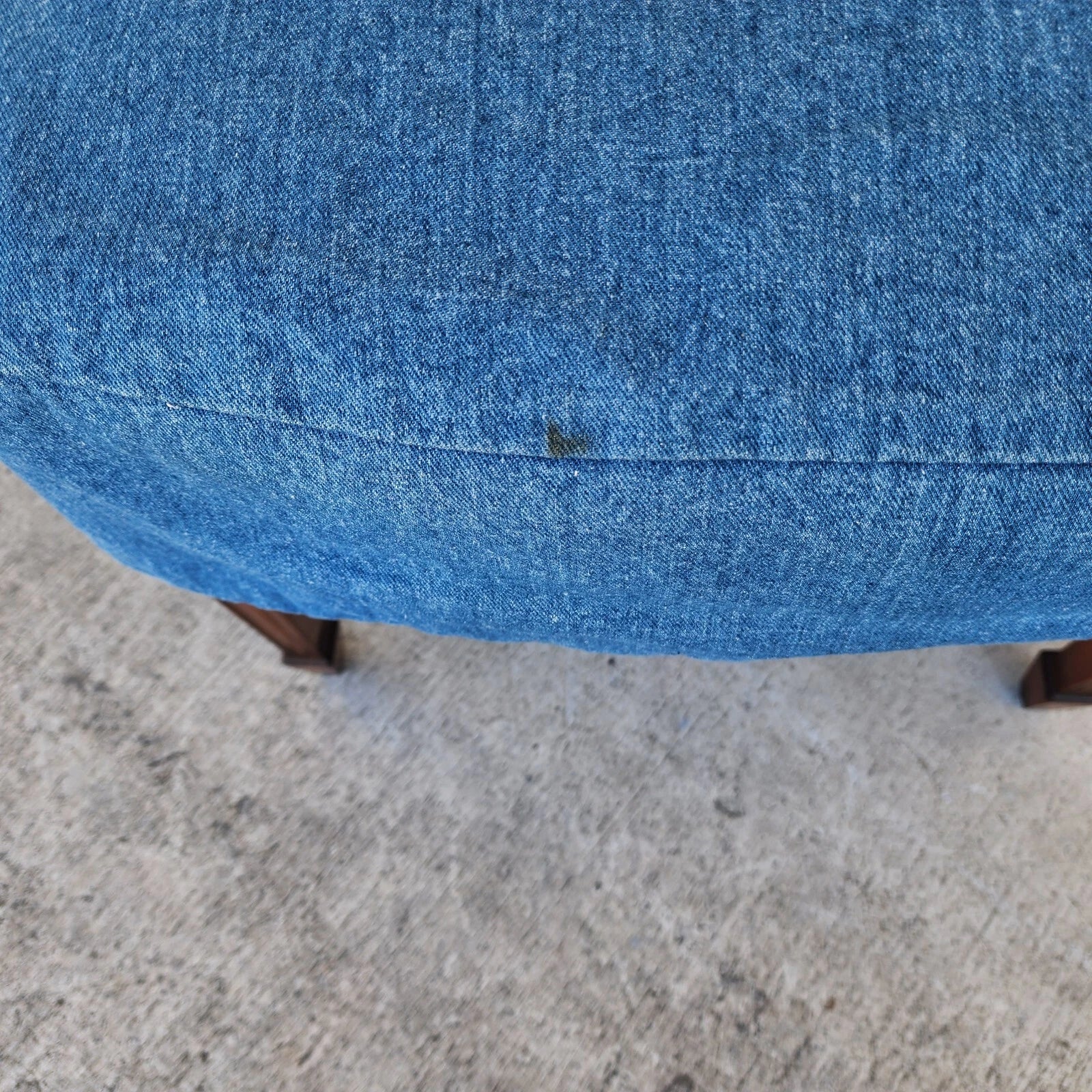 In good, structurally sound, and sturdy condition. There are some repairs to the backs and a couple small stains on the denim covers and on the front corners of the Frey fabric on a few chairs as shown. The photos and video are an important part of the item description and condition so please use the zoom feature to view them closely.