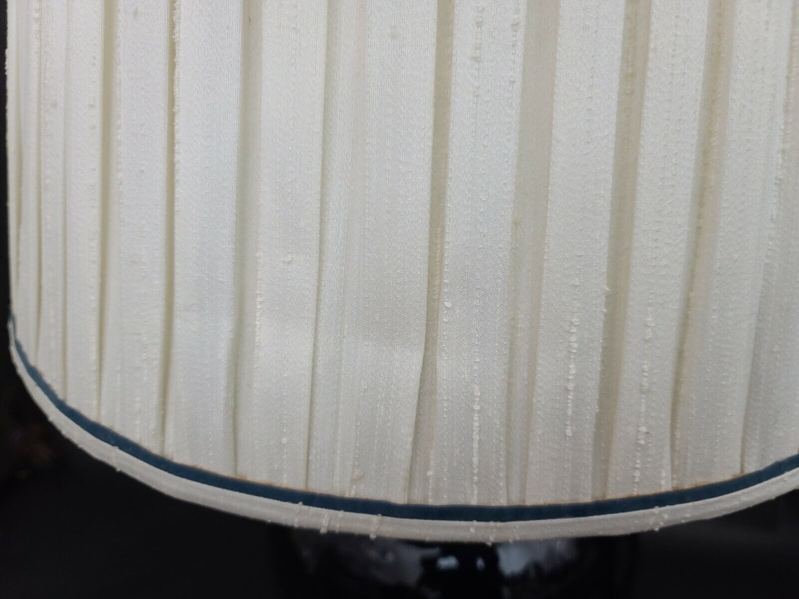 In perfect working order with 3 way switch. Lamp is in good condition with no notable damage. Original Hanson pleated shade has a 1 inch tear on the inside of liner, a faint stain on the outside, and 2 creases all of which can be turned to the back. The photos are an important part of the item description and condition so please use the zoom feature to view them closely.