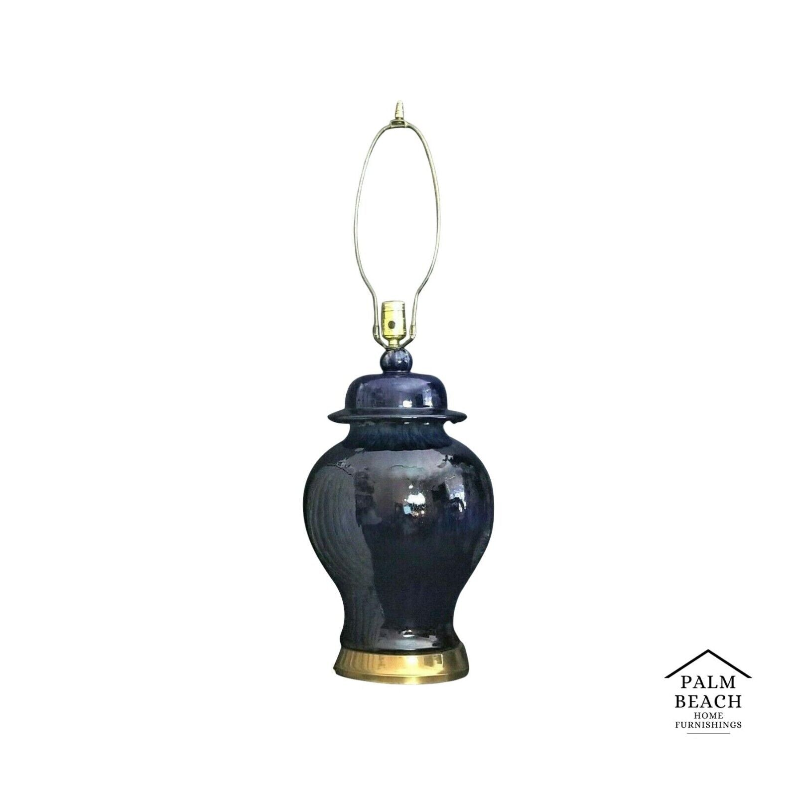 PAUL HANSON Cobalt Blue Drip Glaze Ceramic Ginger Jar Table Lamp with Matching Shade