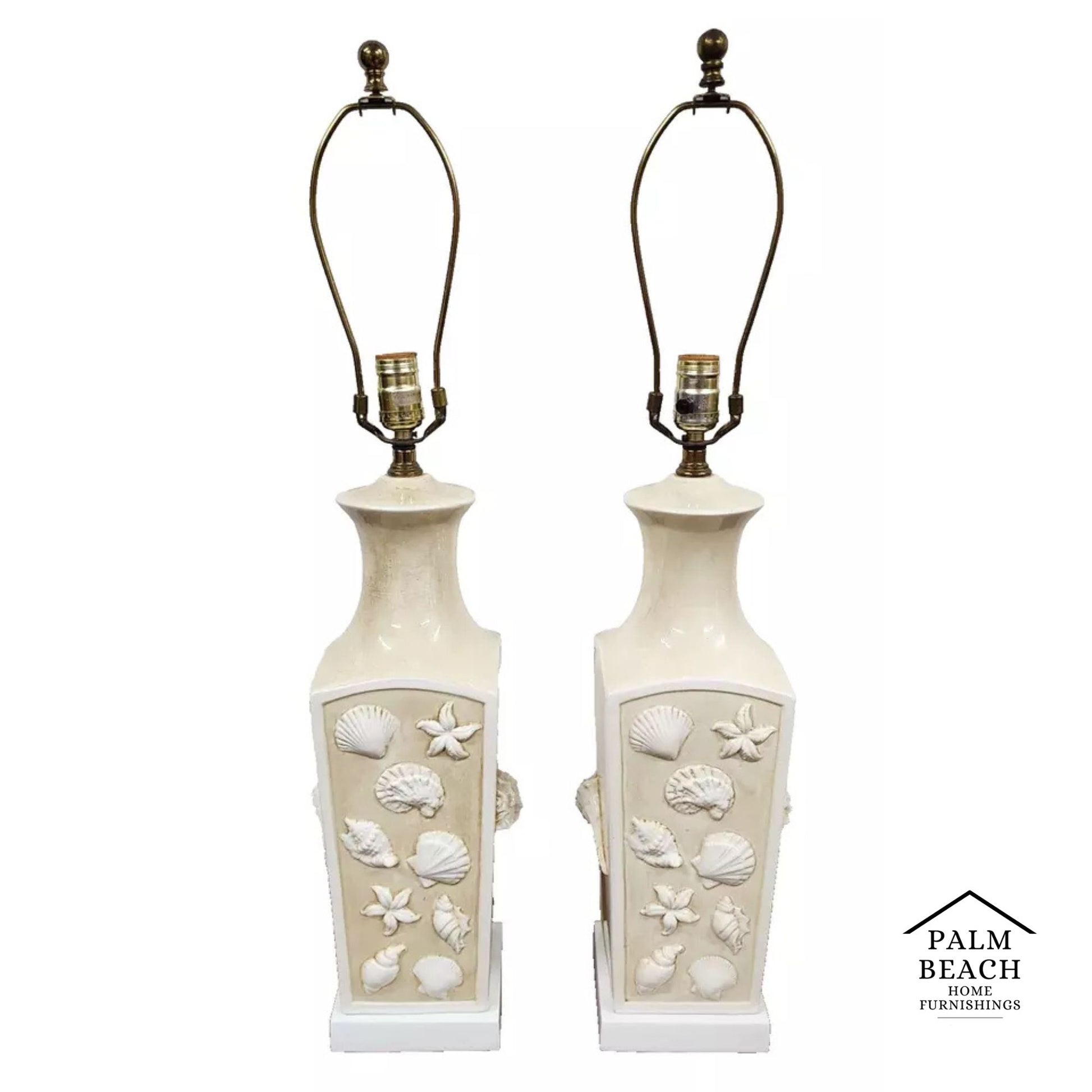 Pair of Mid Century Paul Hanson Beach House Table Lamps with Embossed Sea Shells