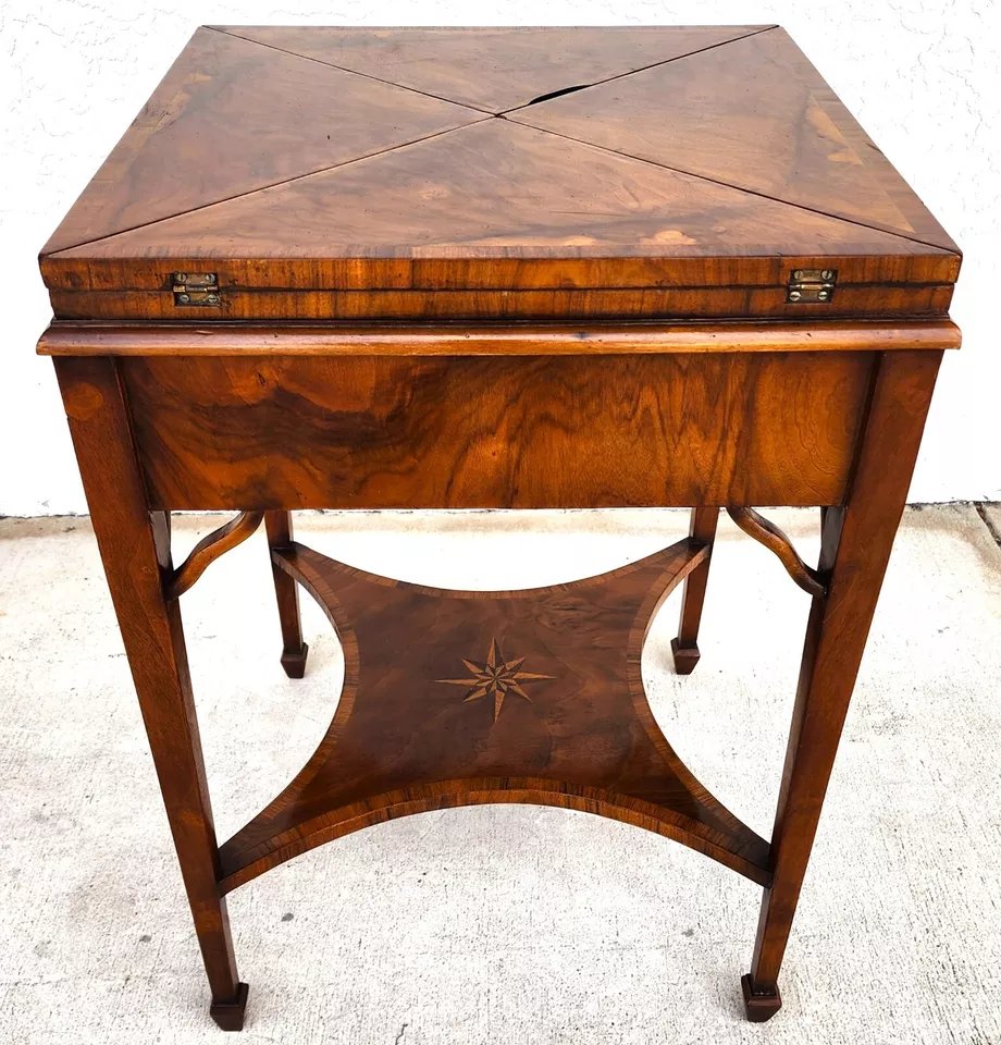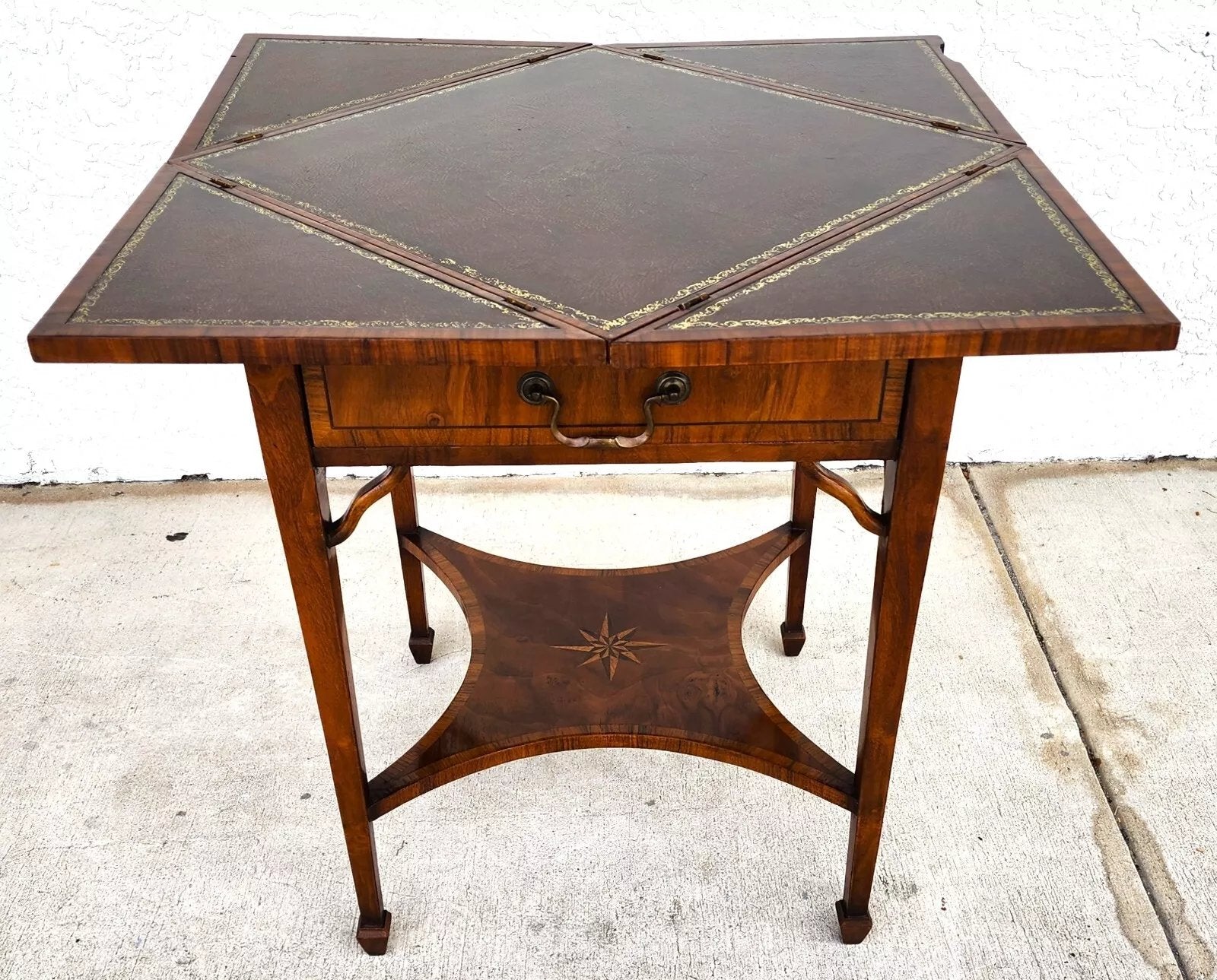 Mid Century Pierre Deux Flip Top Game Table with a Tooled Leather Top