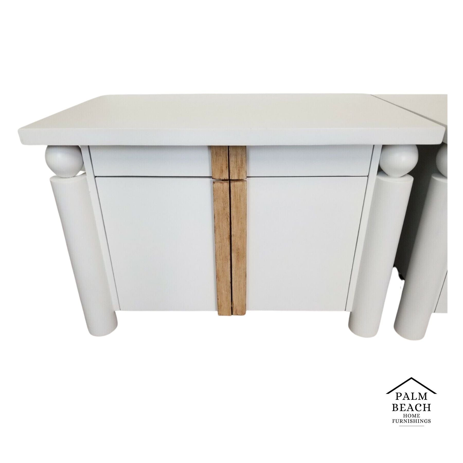 PLATT COLLECTIONS Modern Palm Beach House Coastal Nightstand Side Table Cabinet in White