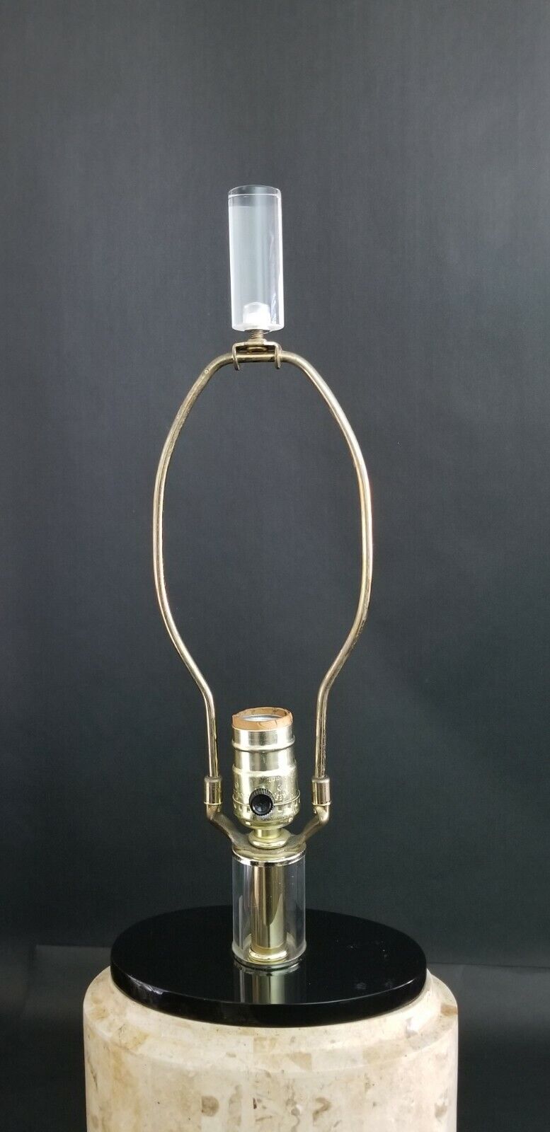 With black lacquered wood base and collar, and Lucite finial.