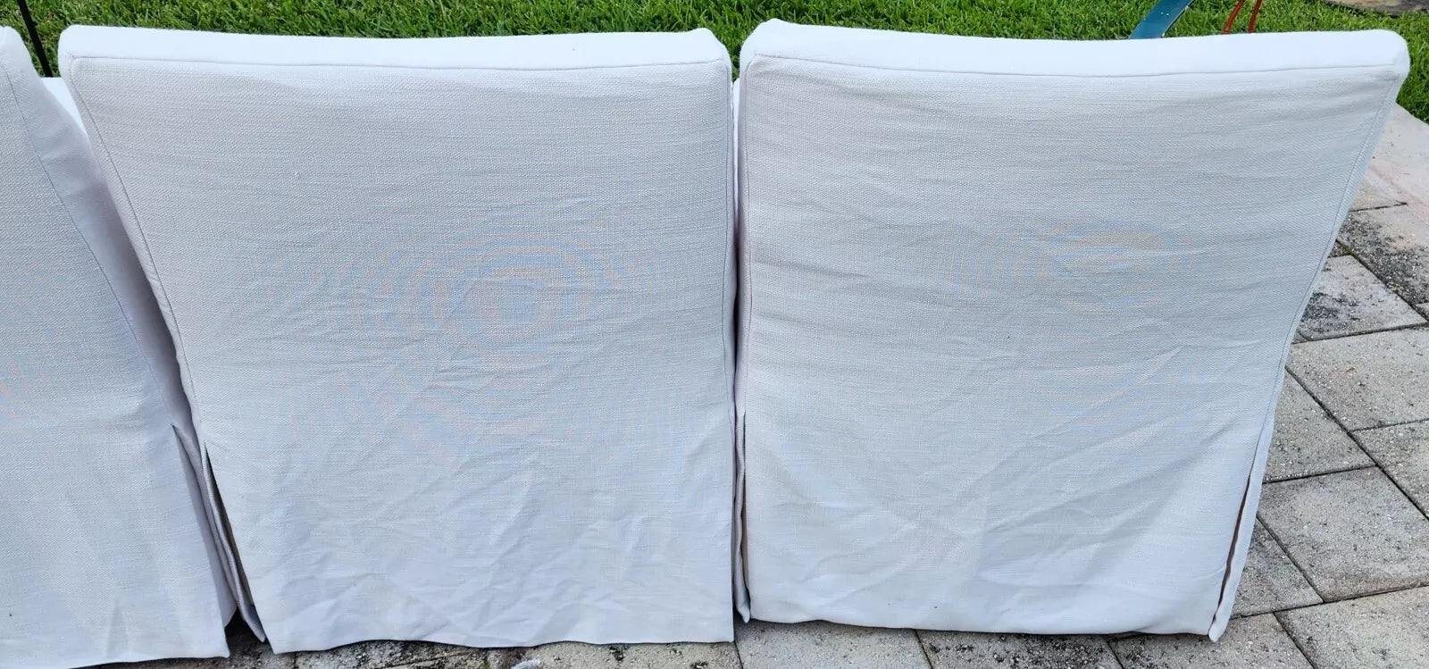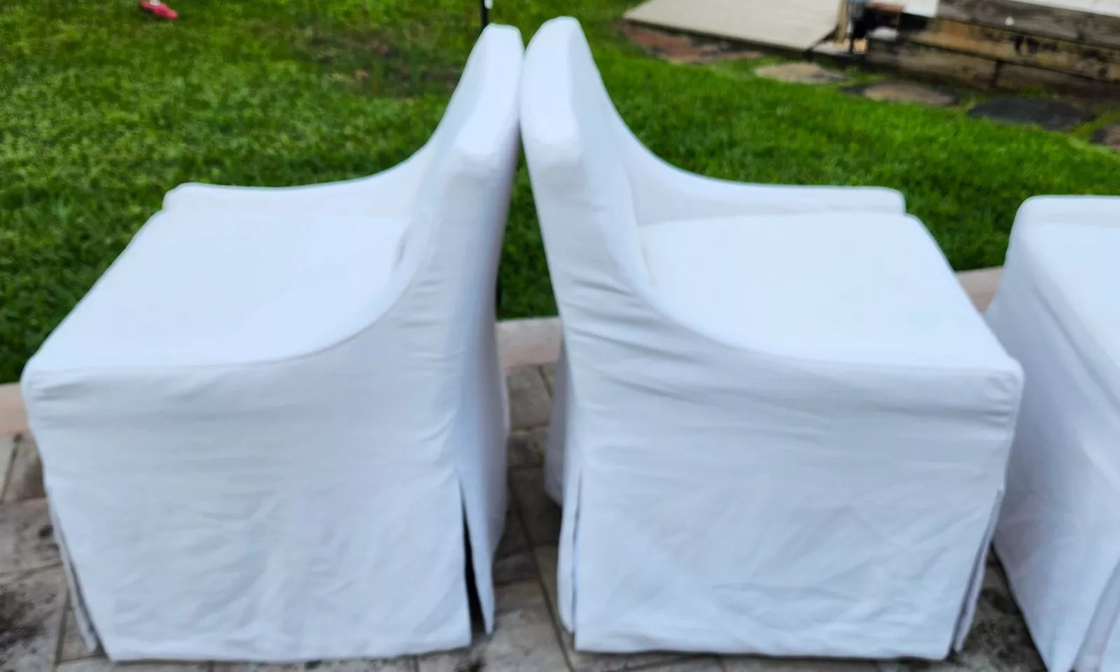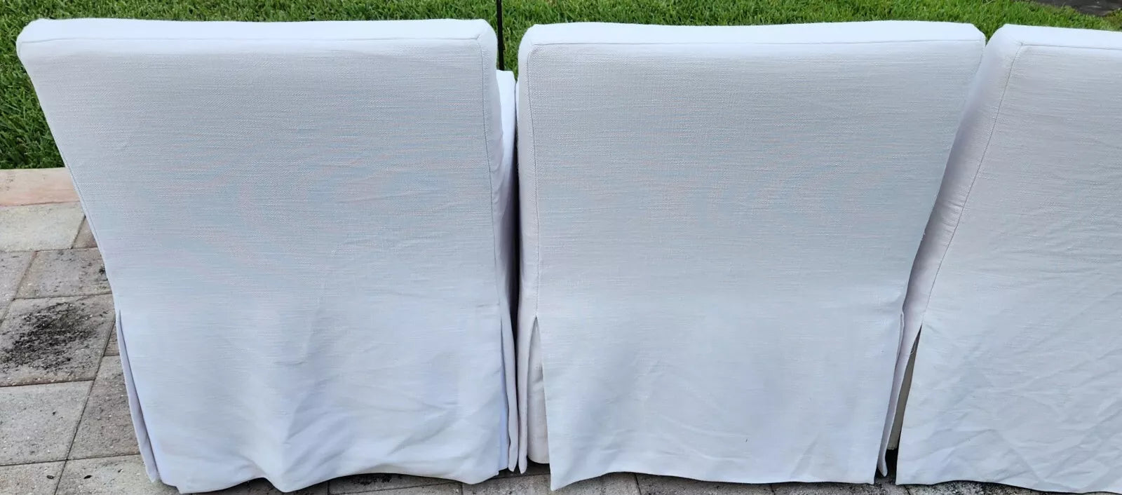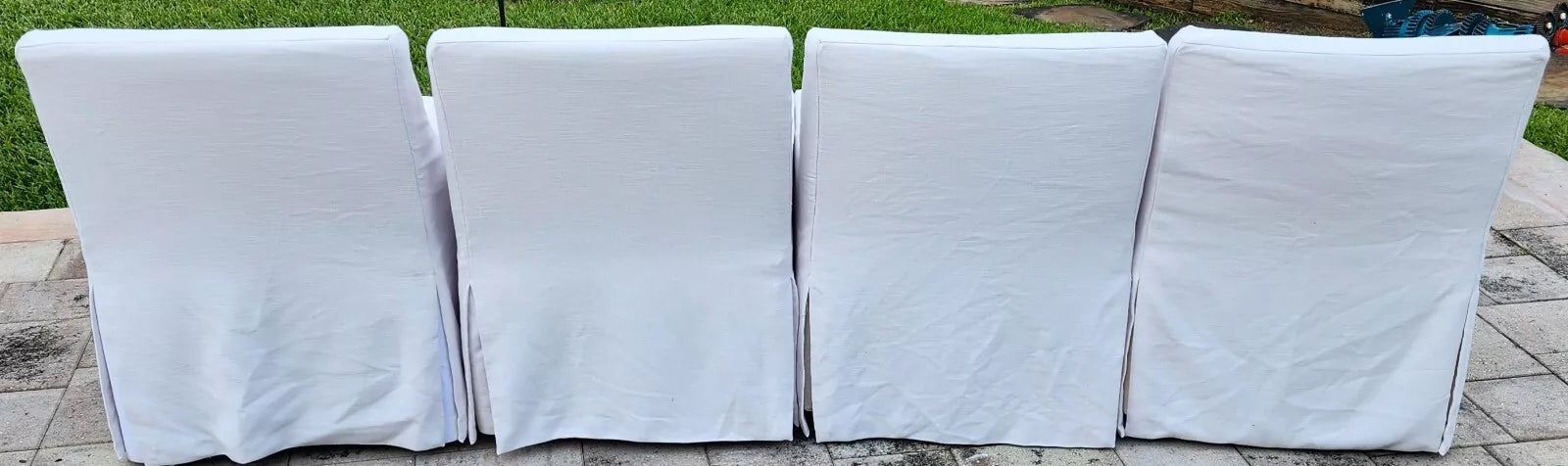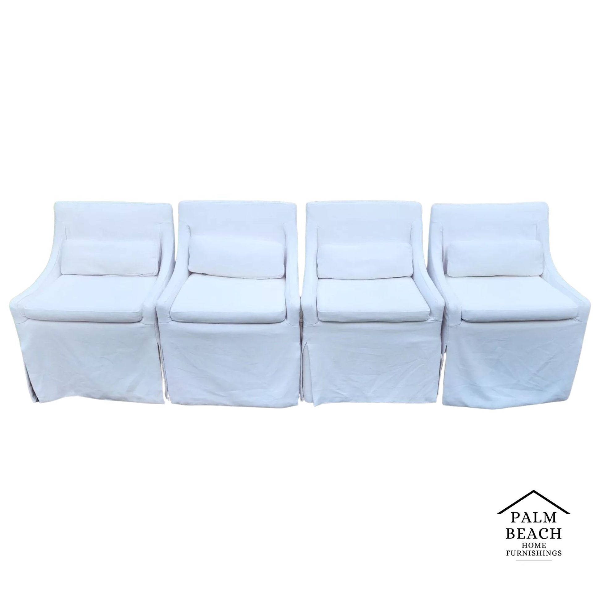 Set of 4 Restoration Hardware Low Belgian Slope Arm Slipcovered Dining Side Chairs
