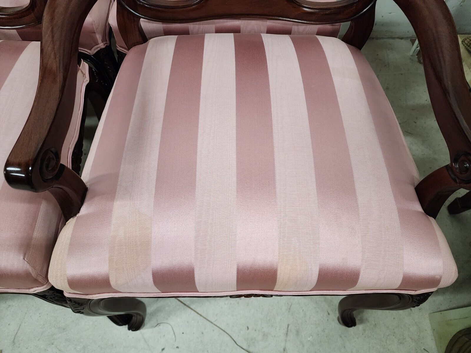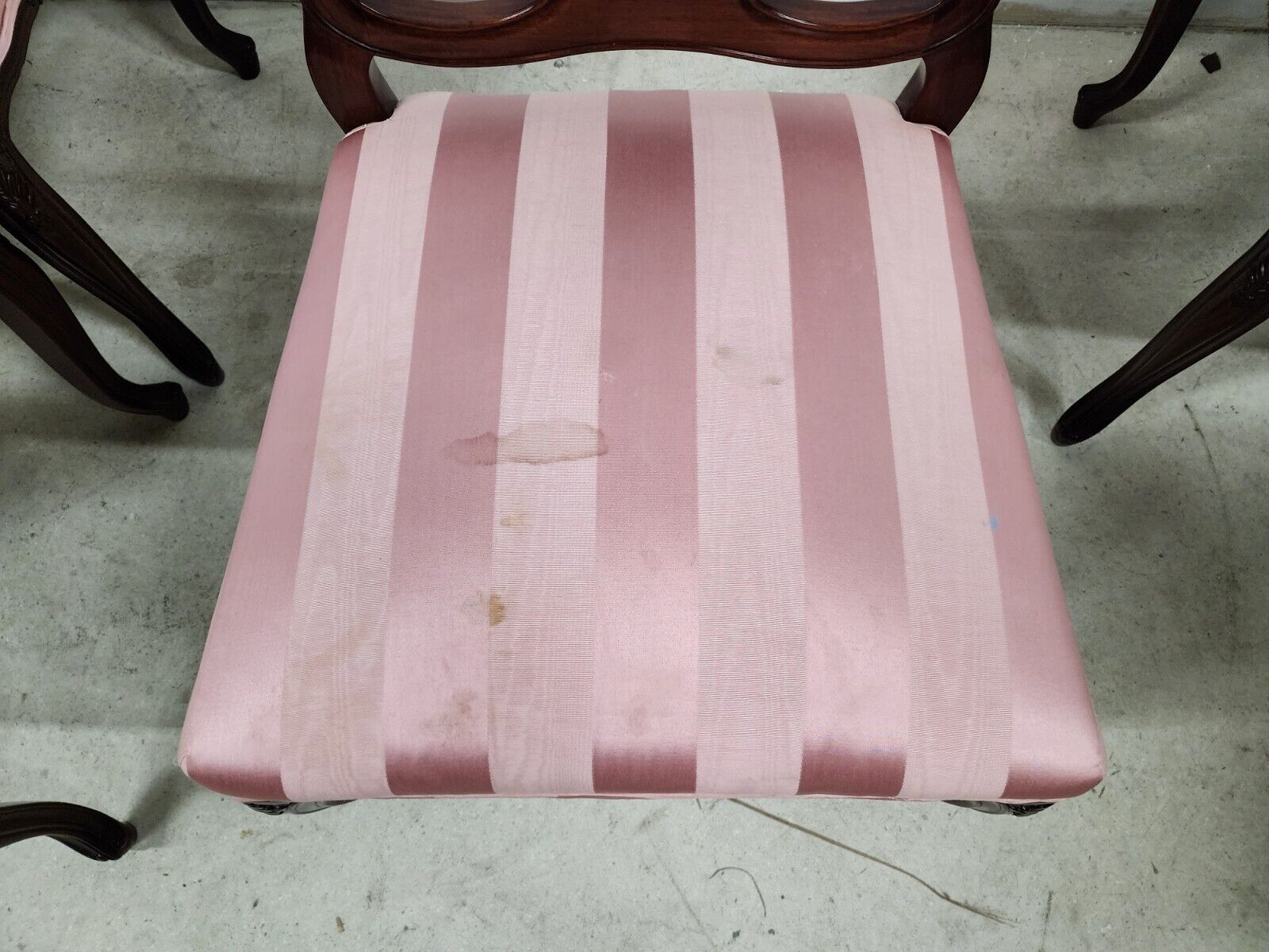 Very well-made and solid chairs. All are in very structurally sound and sturdy condition. Some of the seats have stains as shown. The photos are an important part of the item description and condition so please use the zoom feature to view them closely.