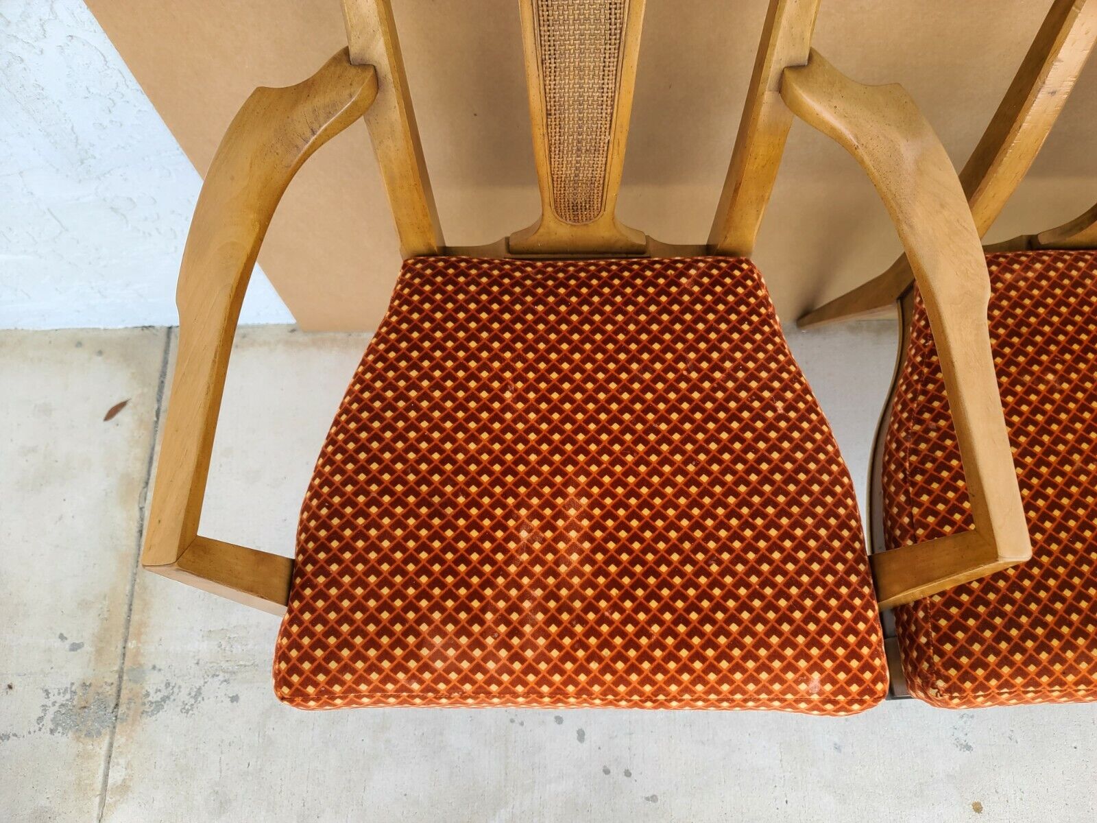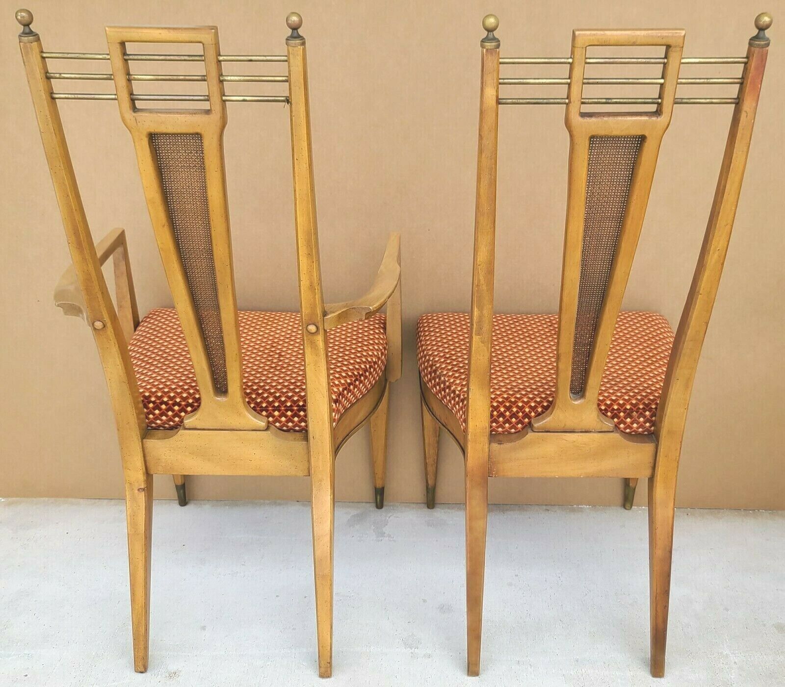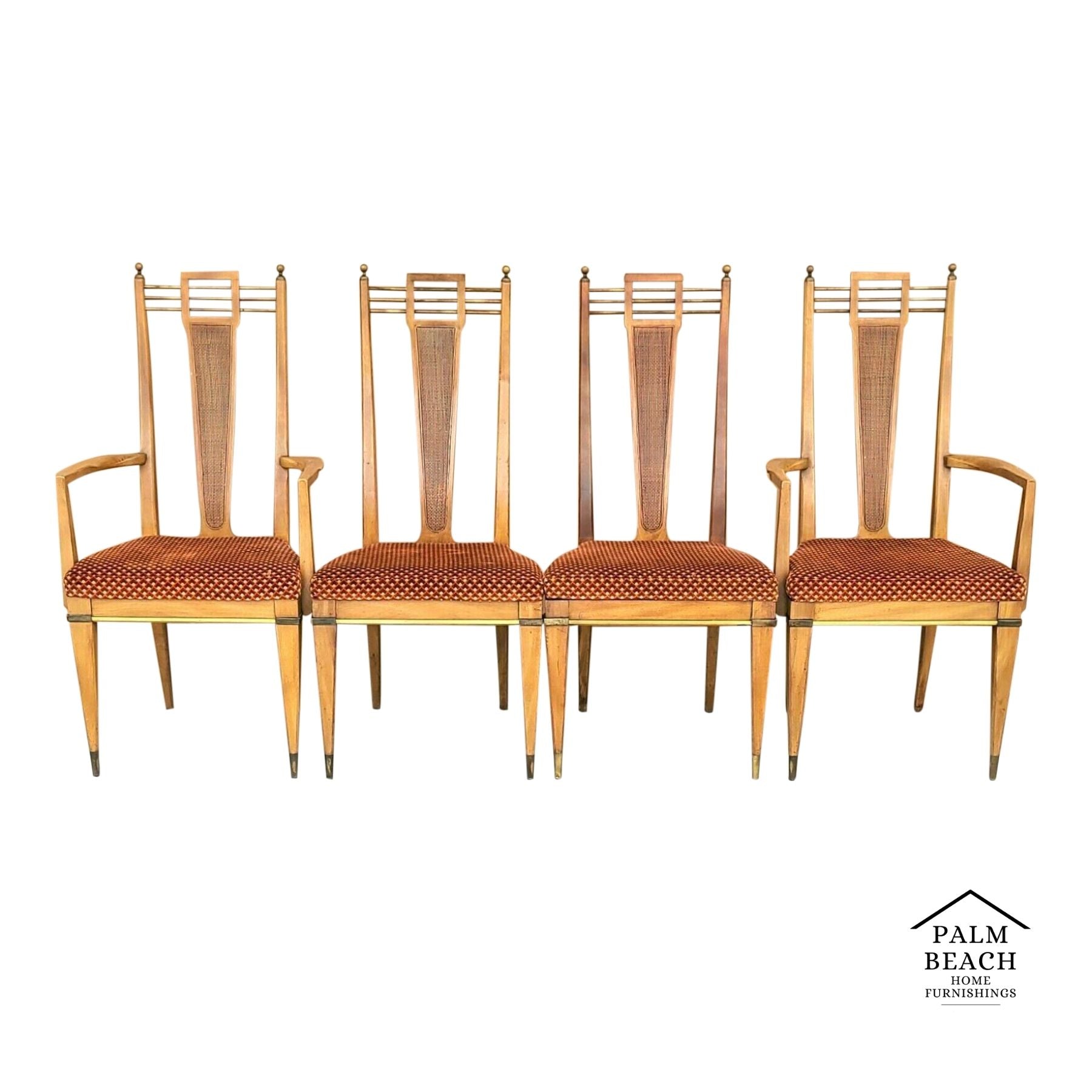 Set of 4 1950's MCM J L METZ Brass Solid Wood & Cane Dining Chairs