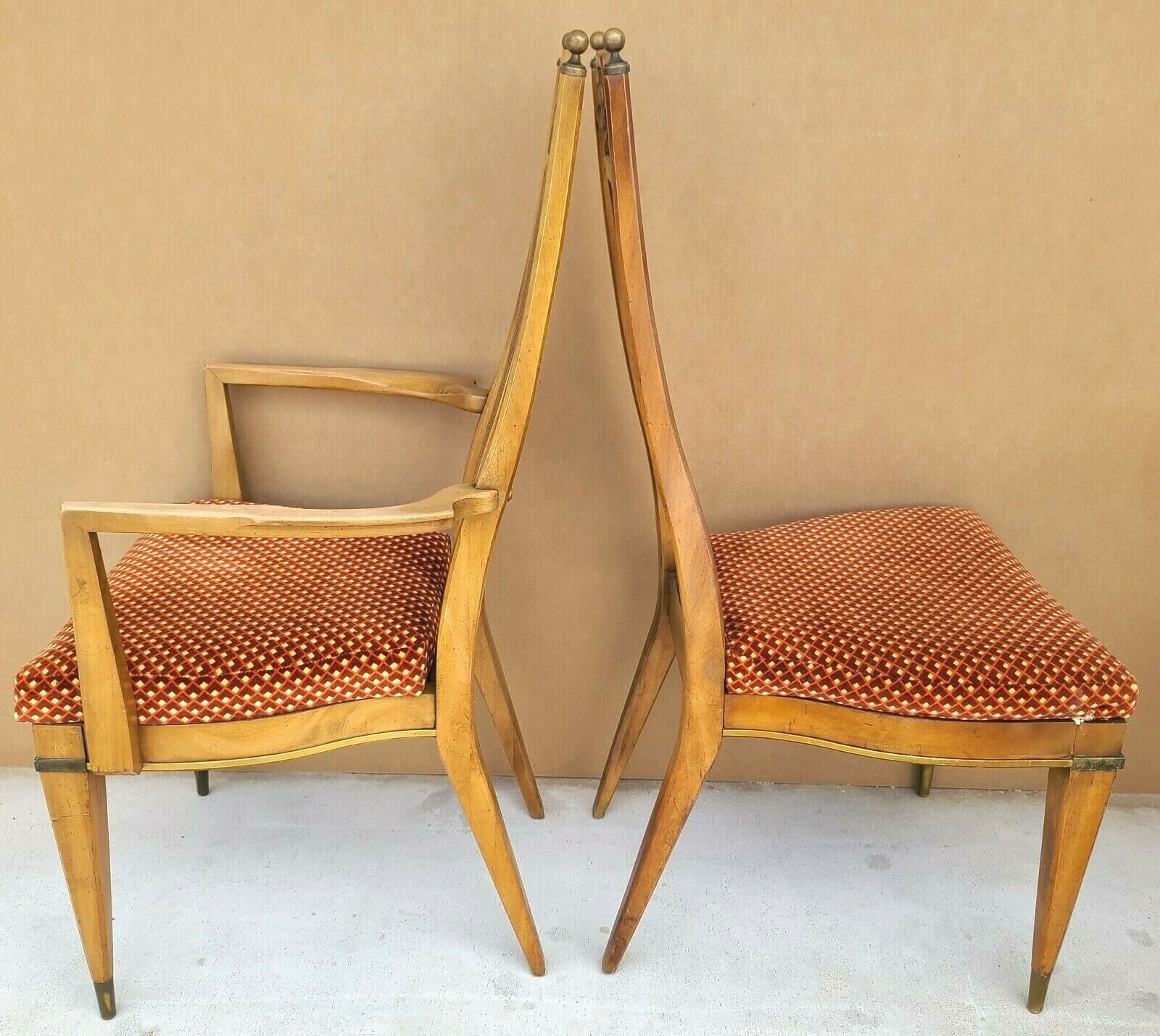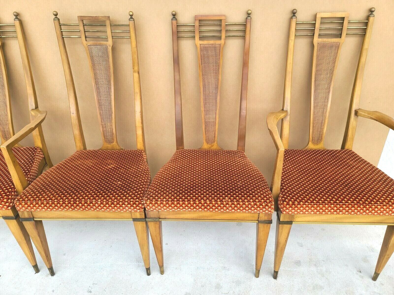 Set of 4 1950's Mid Century Modern J L METZ Brass, Solid Wood & Cane Dining Chairs
