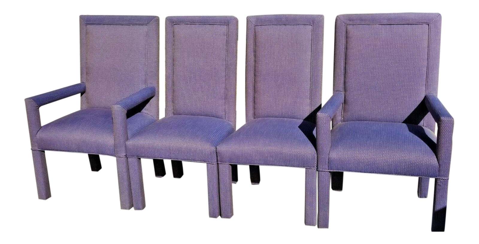 Set of 4 High End Upholstered Blue Parsons Dining Chairs Spring Supported Seats