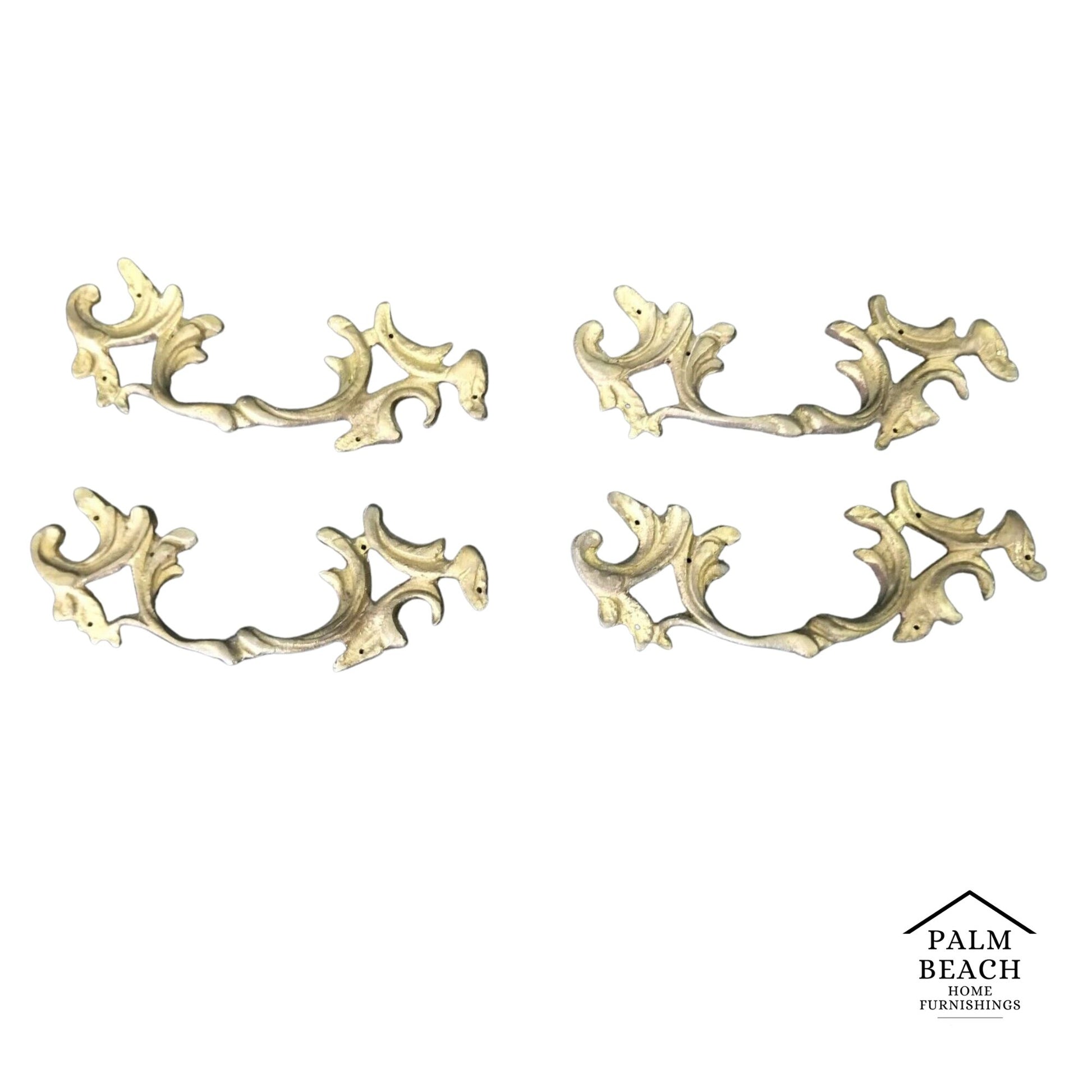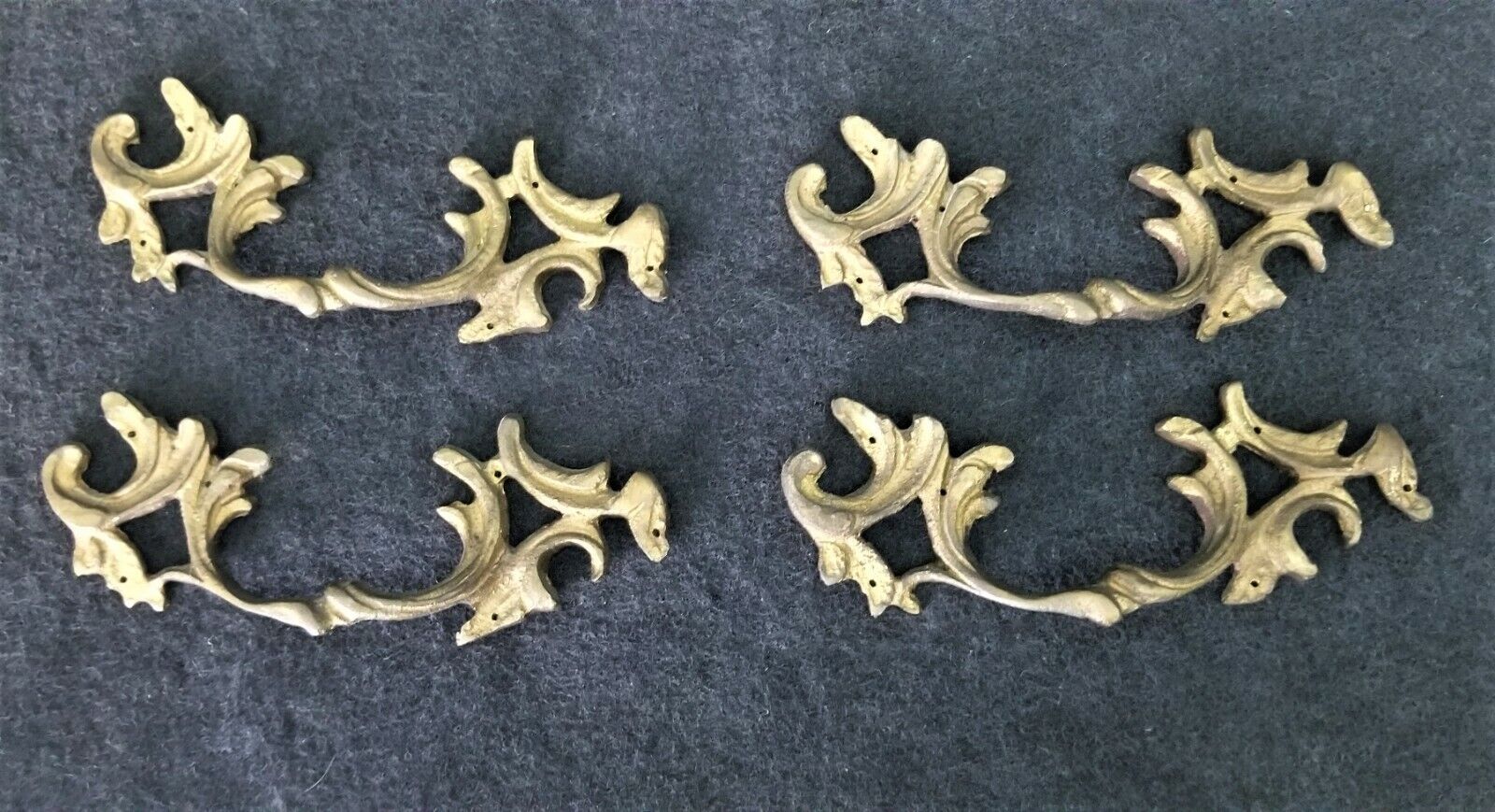 Set of 4 Vintage Acanthus Leaf Scroll Design Bronze Drawer Pulls Handles