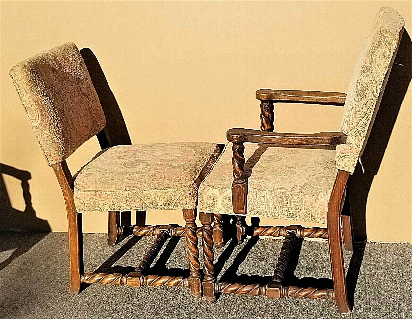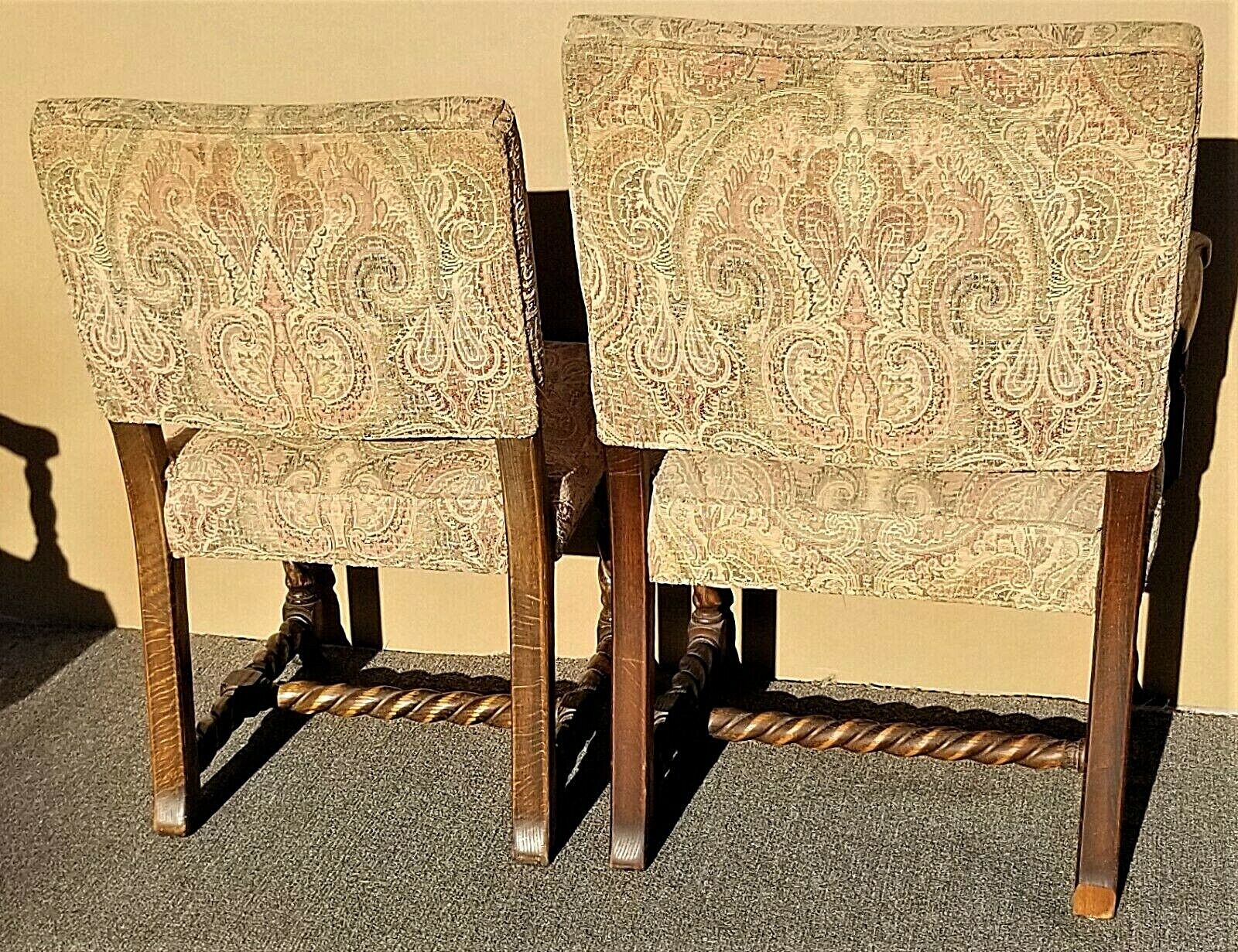 Set of 6 Antique English Oak Carved Barley Twist Jacobean Style Dining Chairs