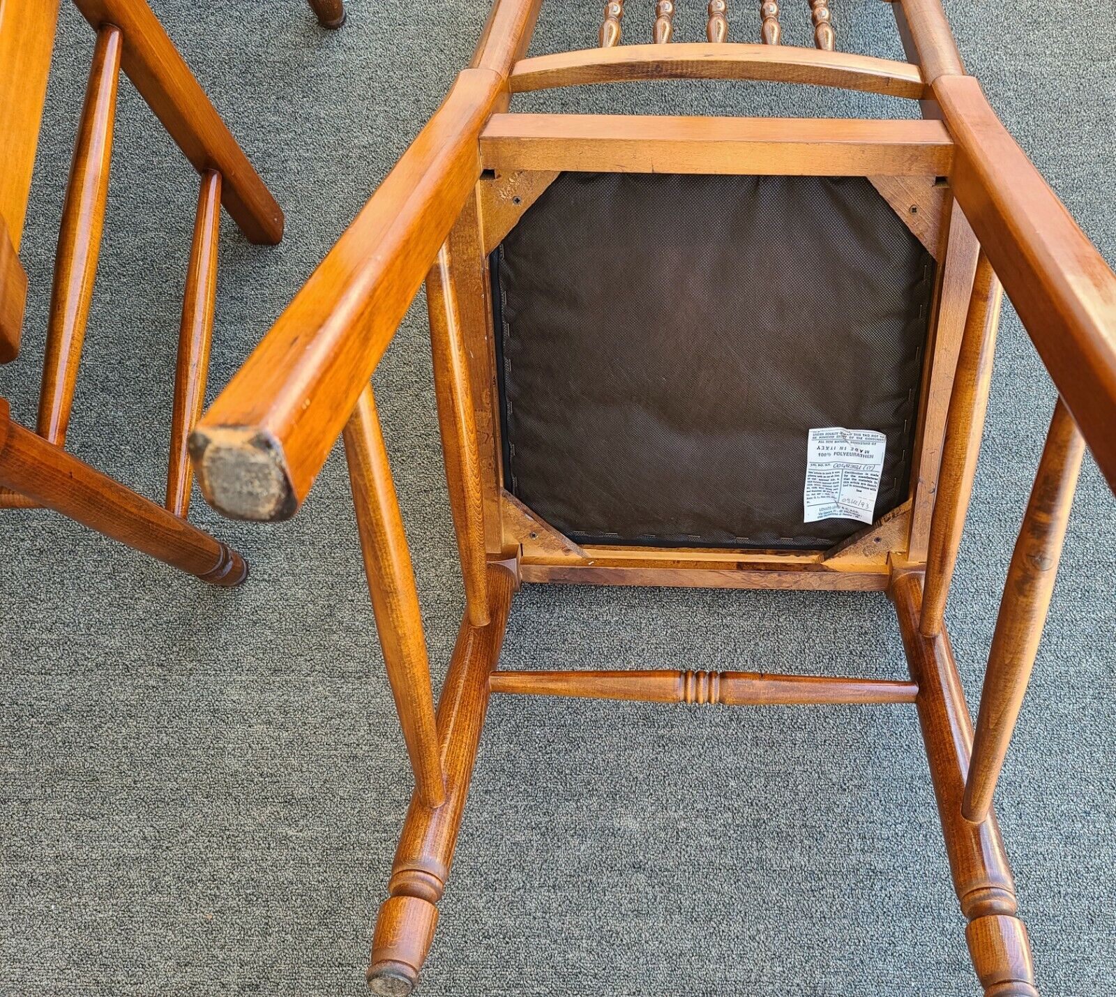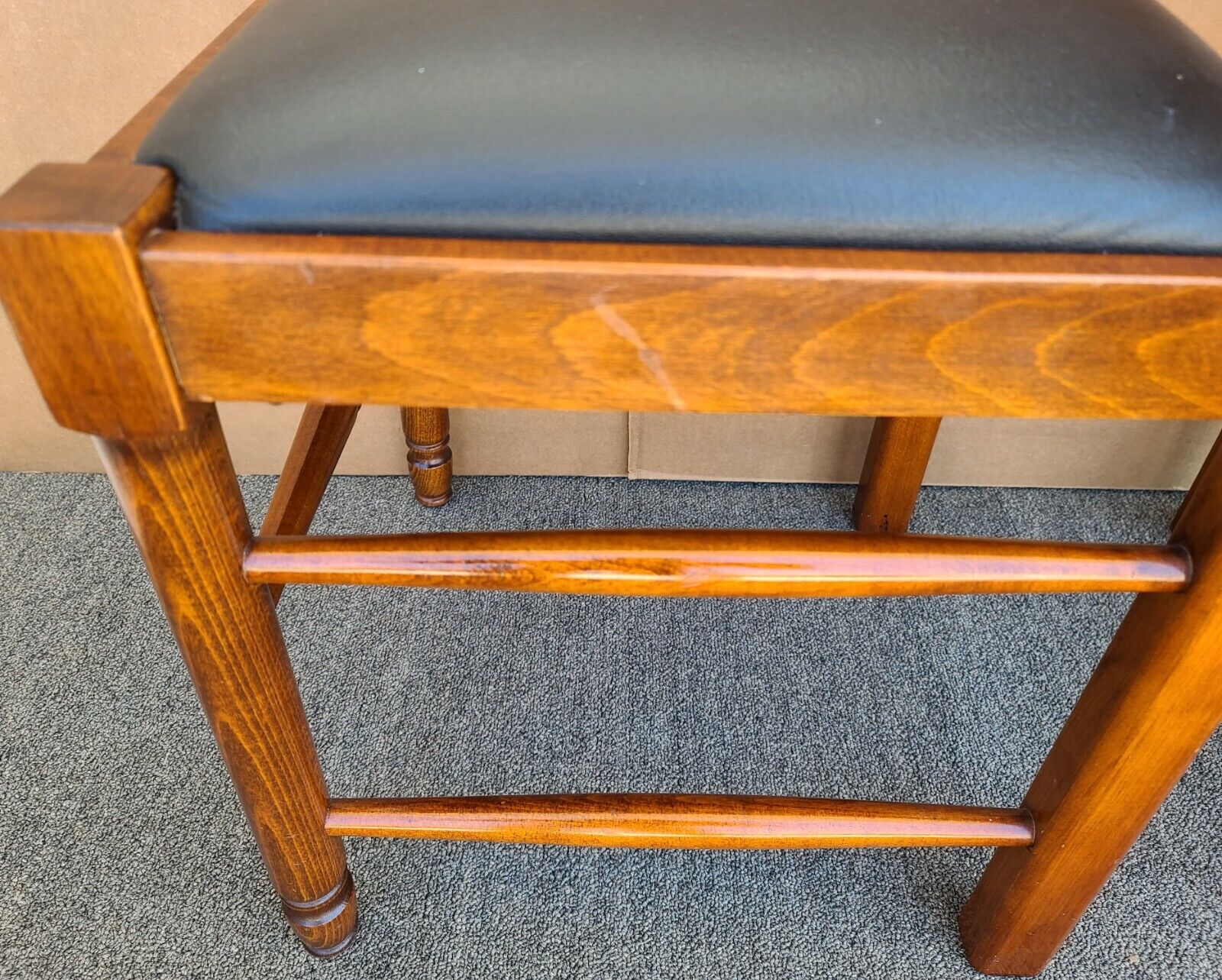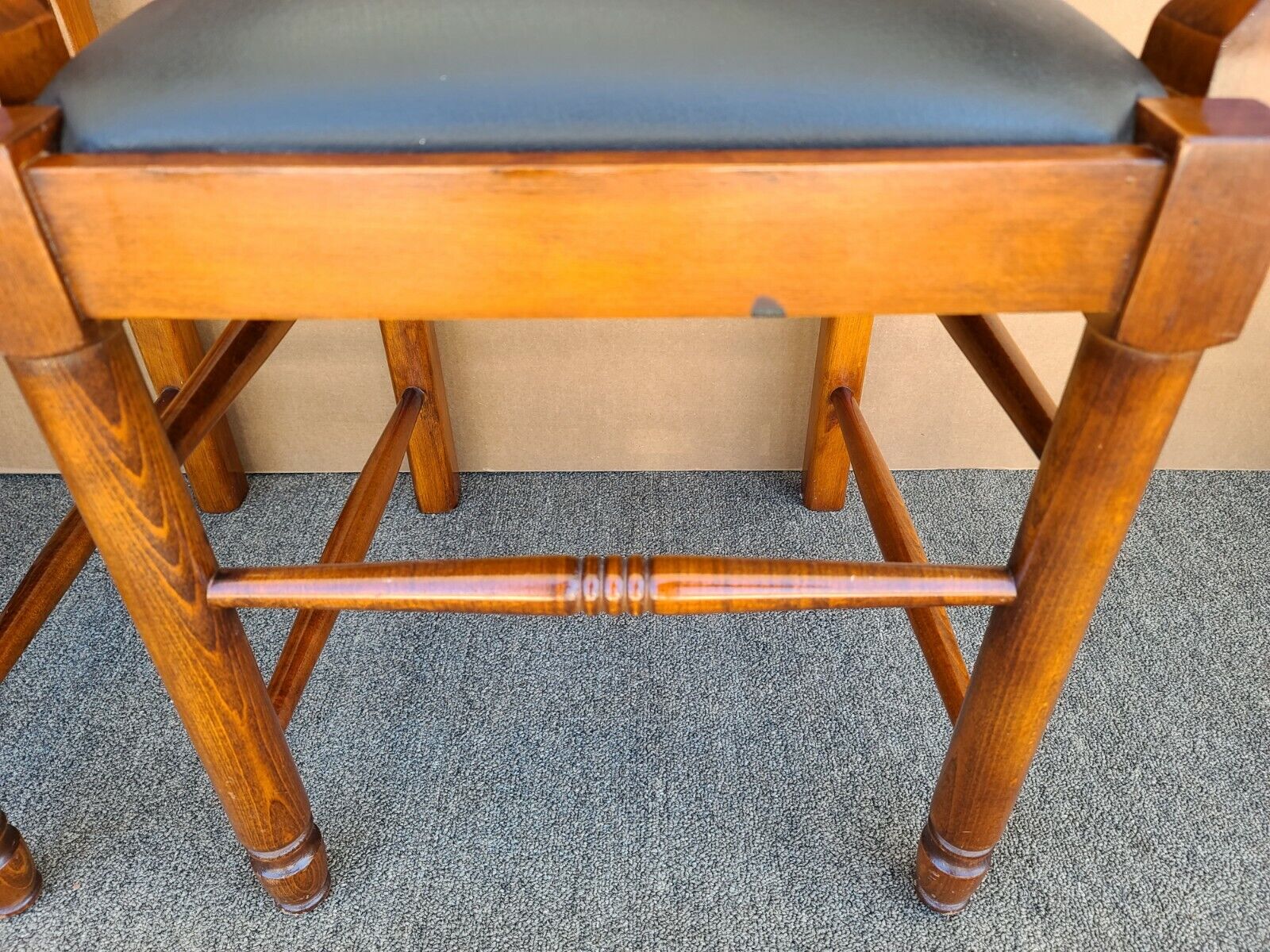 Very well built and solid chairs. Structurally sound with some spots of wear to finish the worst of which are shown. Naugahyde seats have no notable damage.