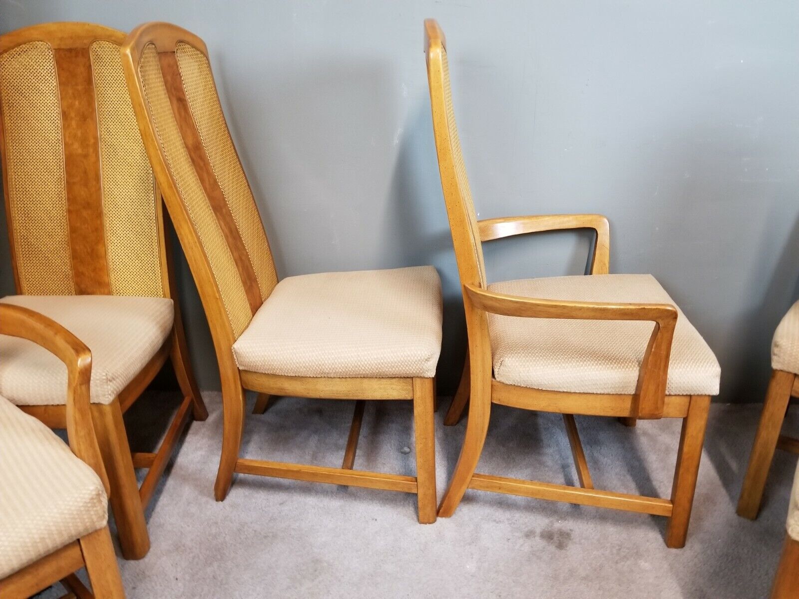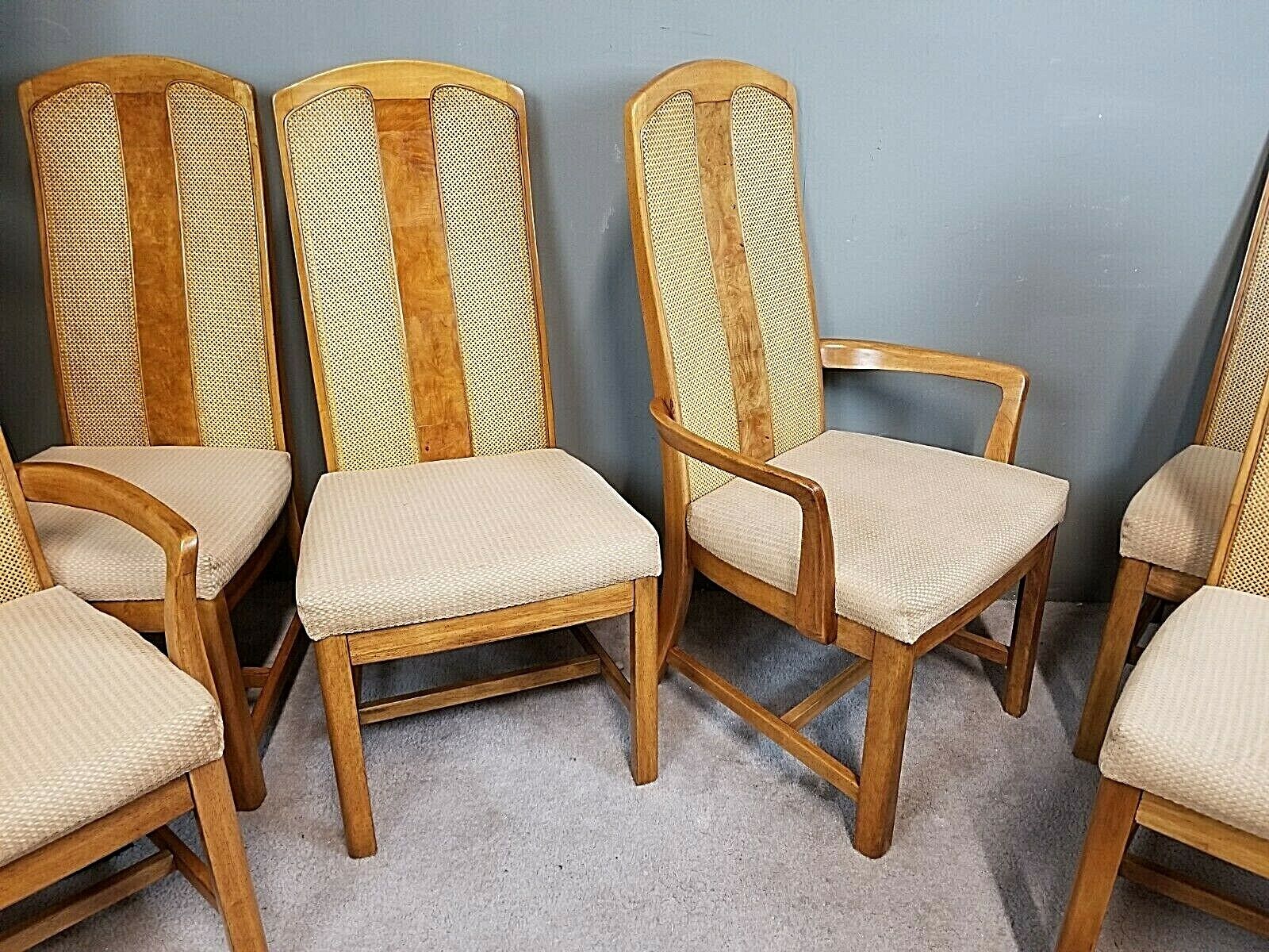 Set of (6) MCM UNIVERSAL FURNITURE Cane + Burl Splat Back Dining Chairs