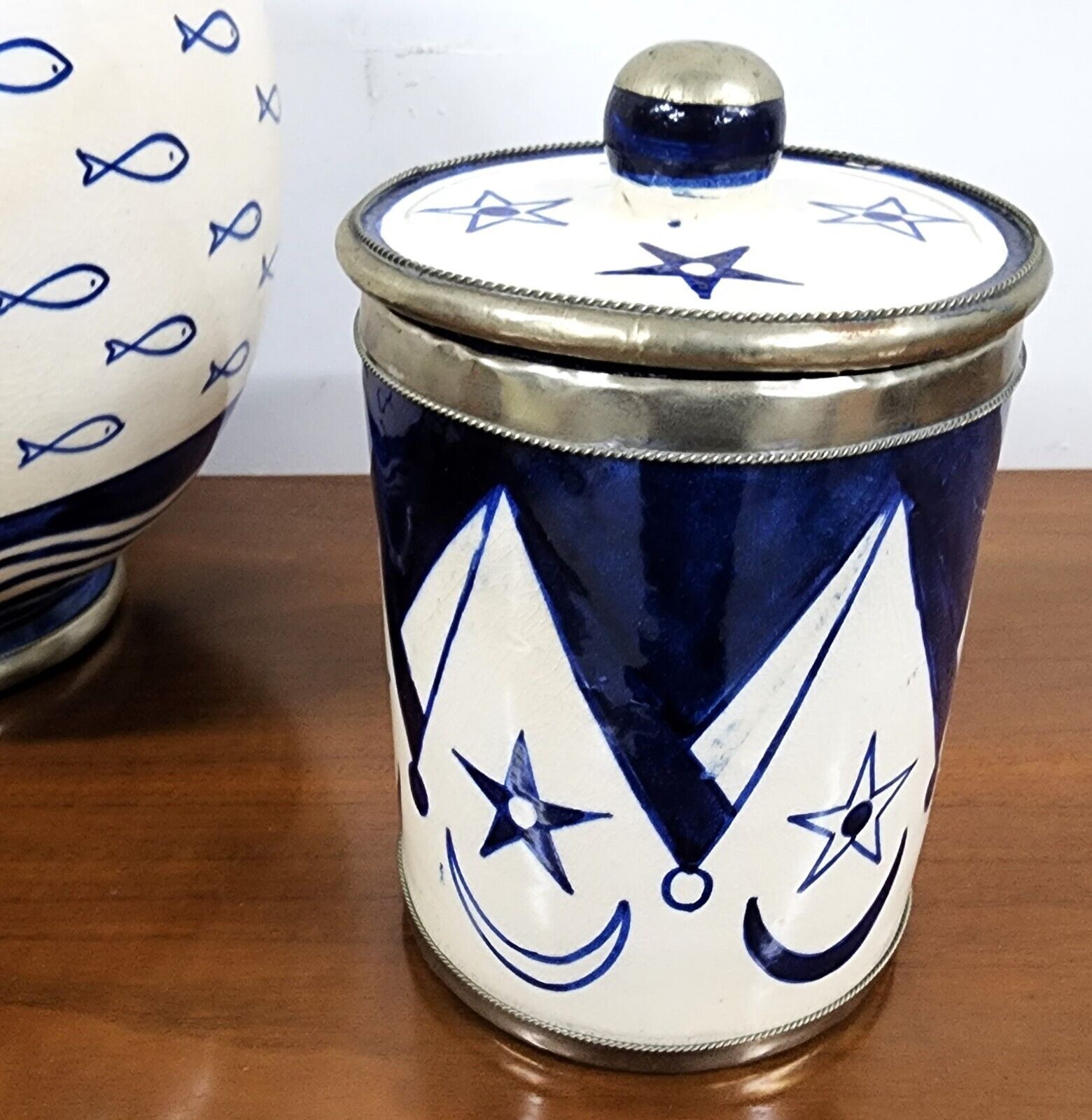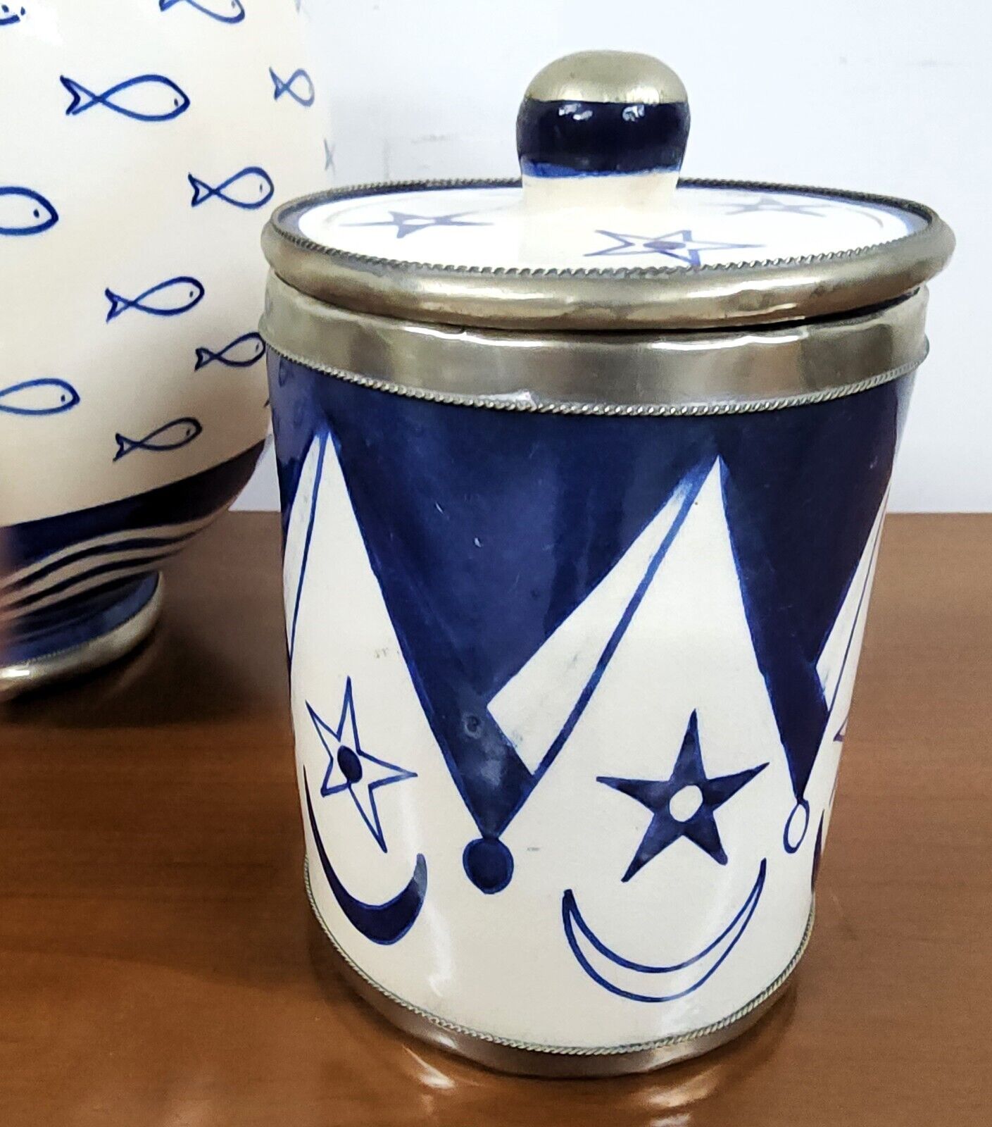Studio Art Pottery Cookie Jar Utensil Holder Lidded Jar 3 Piece Set