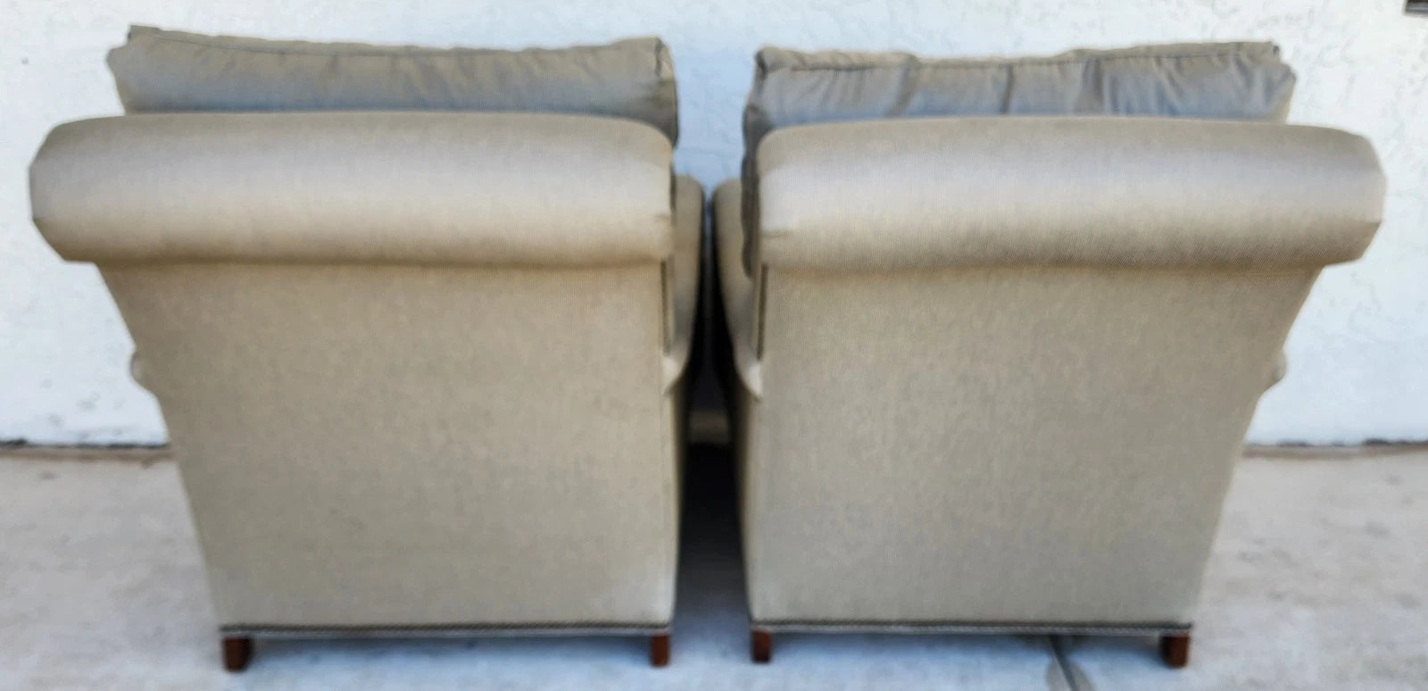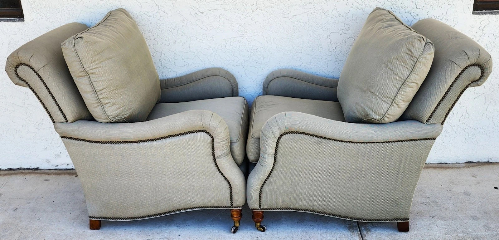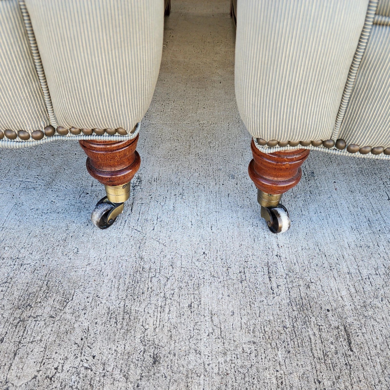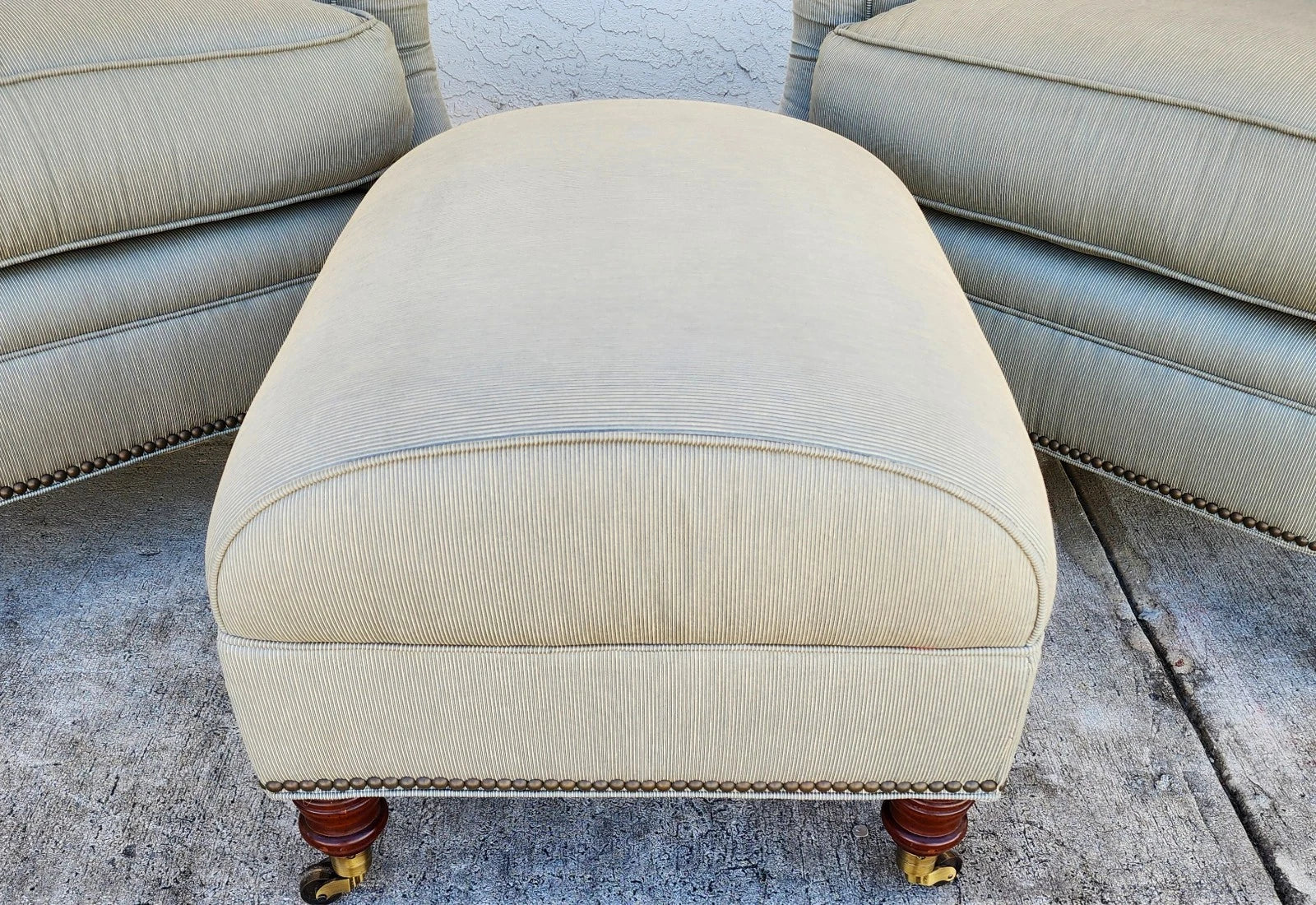 Pair of Vanguard Craftwork English Roll Arm Club Chairs & Ottoman