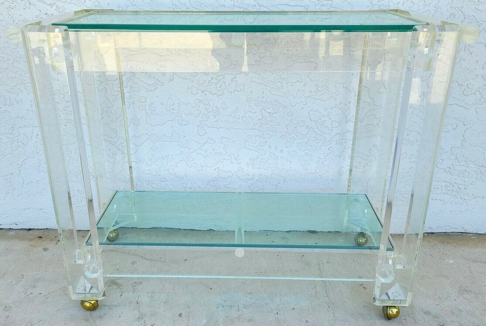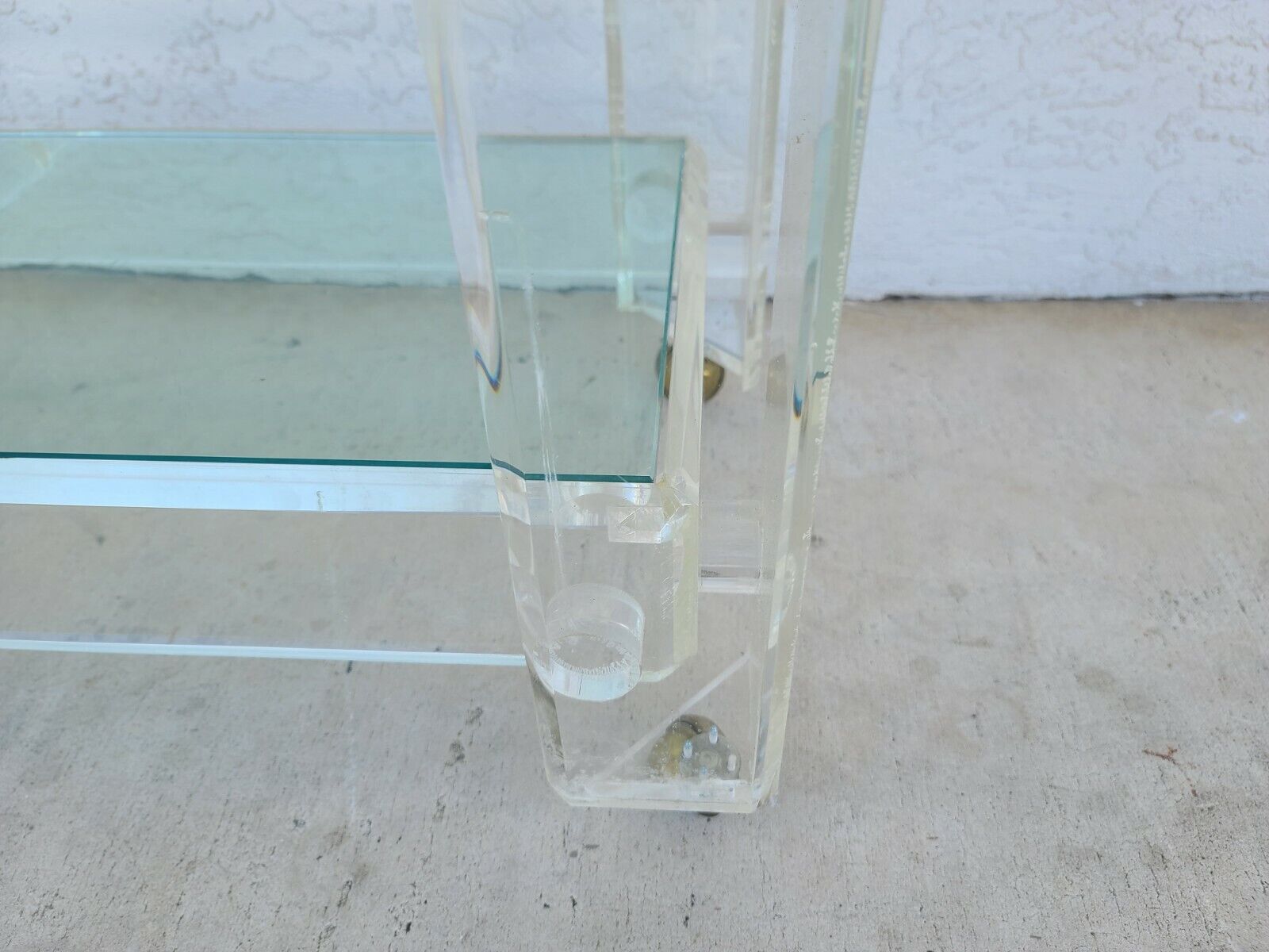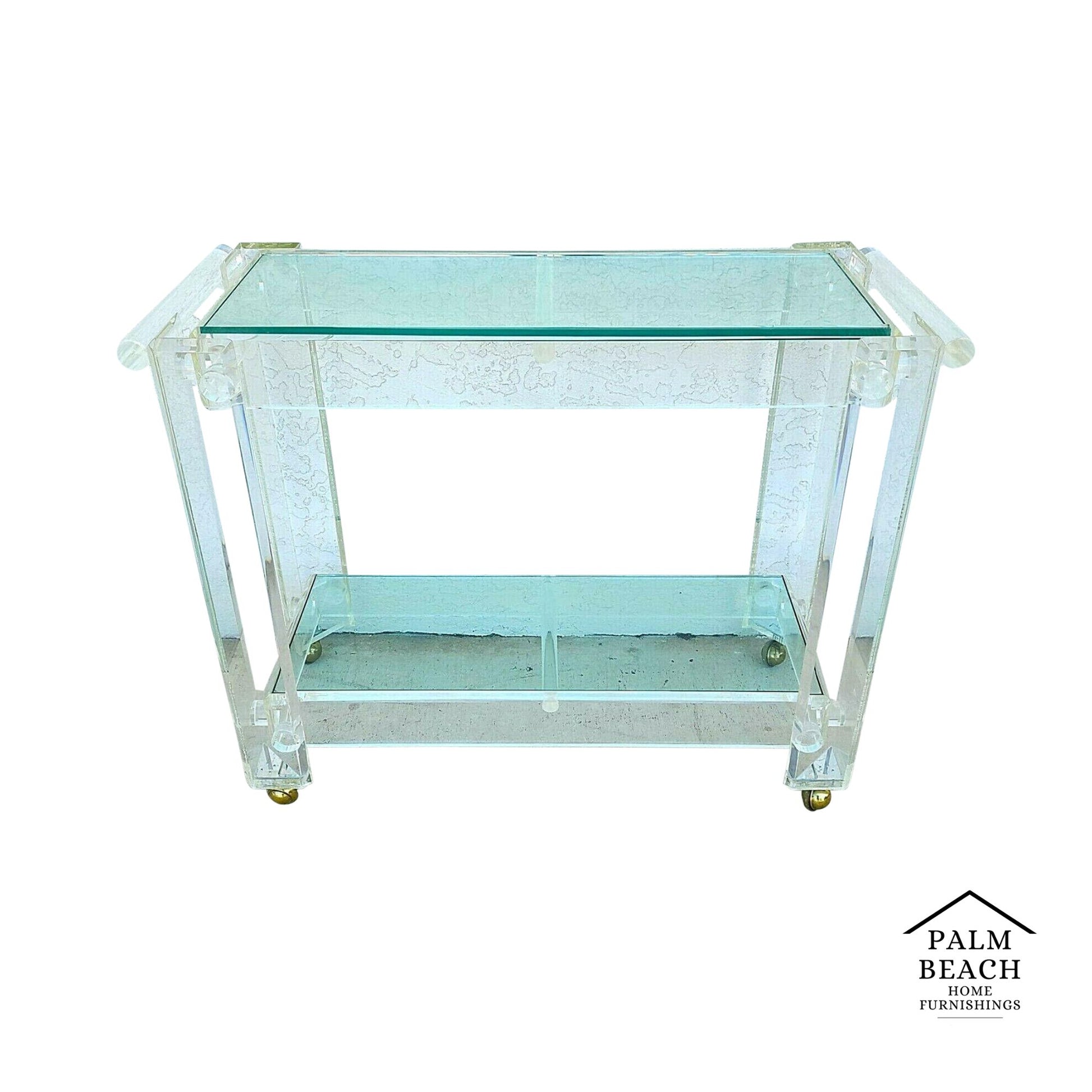 Vintage 1970s Thick Lucite & Glass Rolling Bar Serving Cart