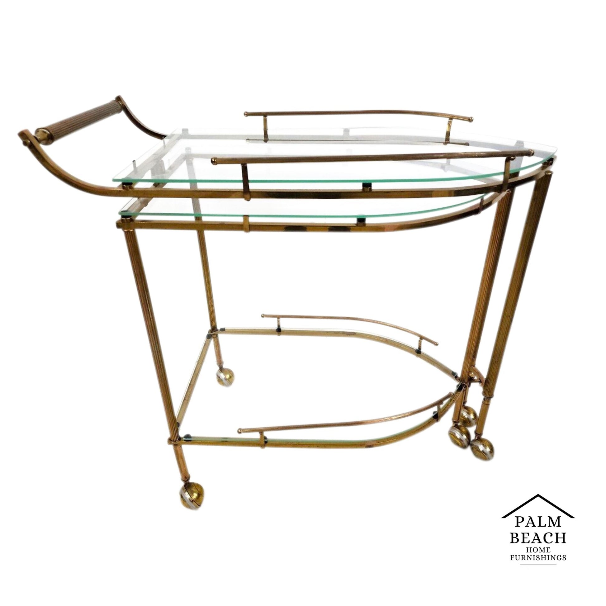 Vintage Bar Cart Folding Brass & Glass GLOBAL VIEWS Style