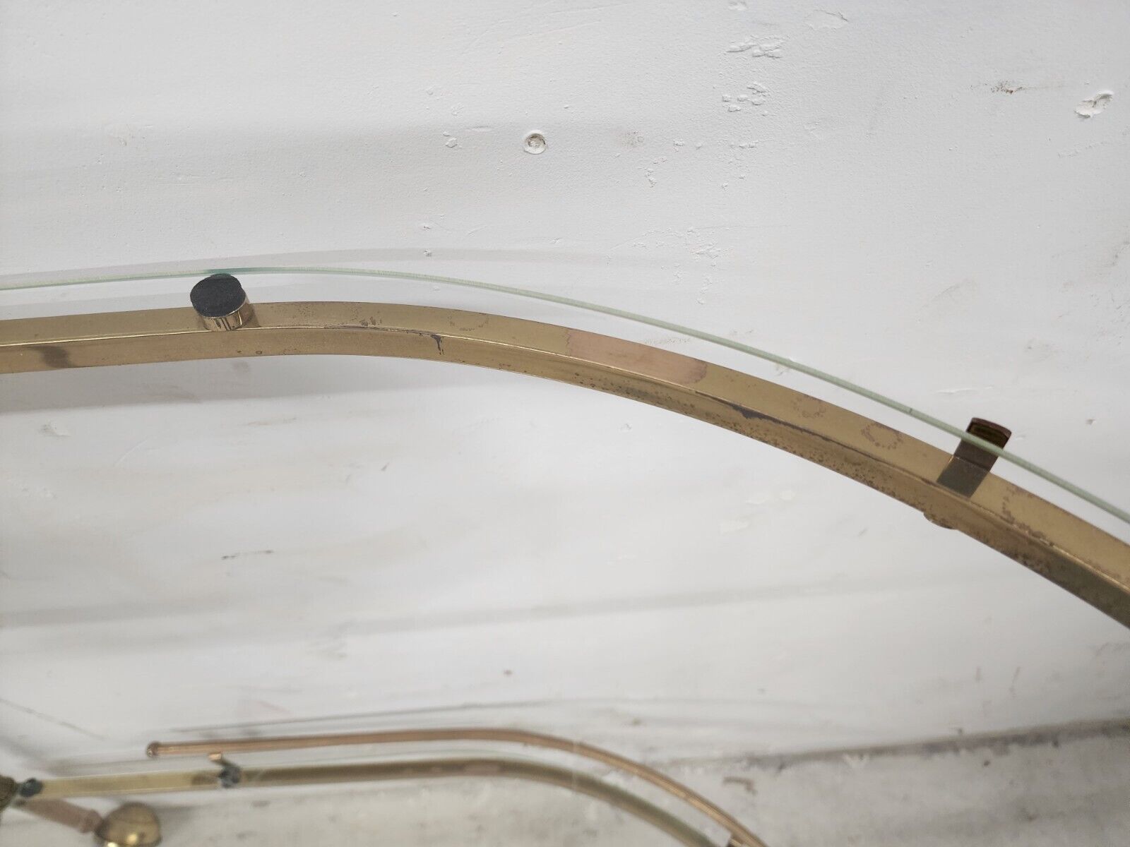 There are 2 small chips on the back side of the top piece of the glass where it fits around the post as shown in the 9th pic.