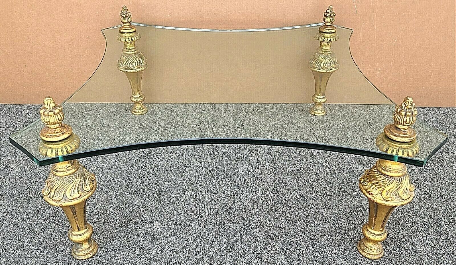 Vintage FRANCISCO HURTADO Hollywood Regency Glass Giltwood Coffee Cocktail Table