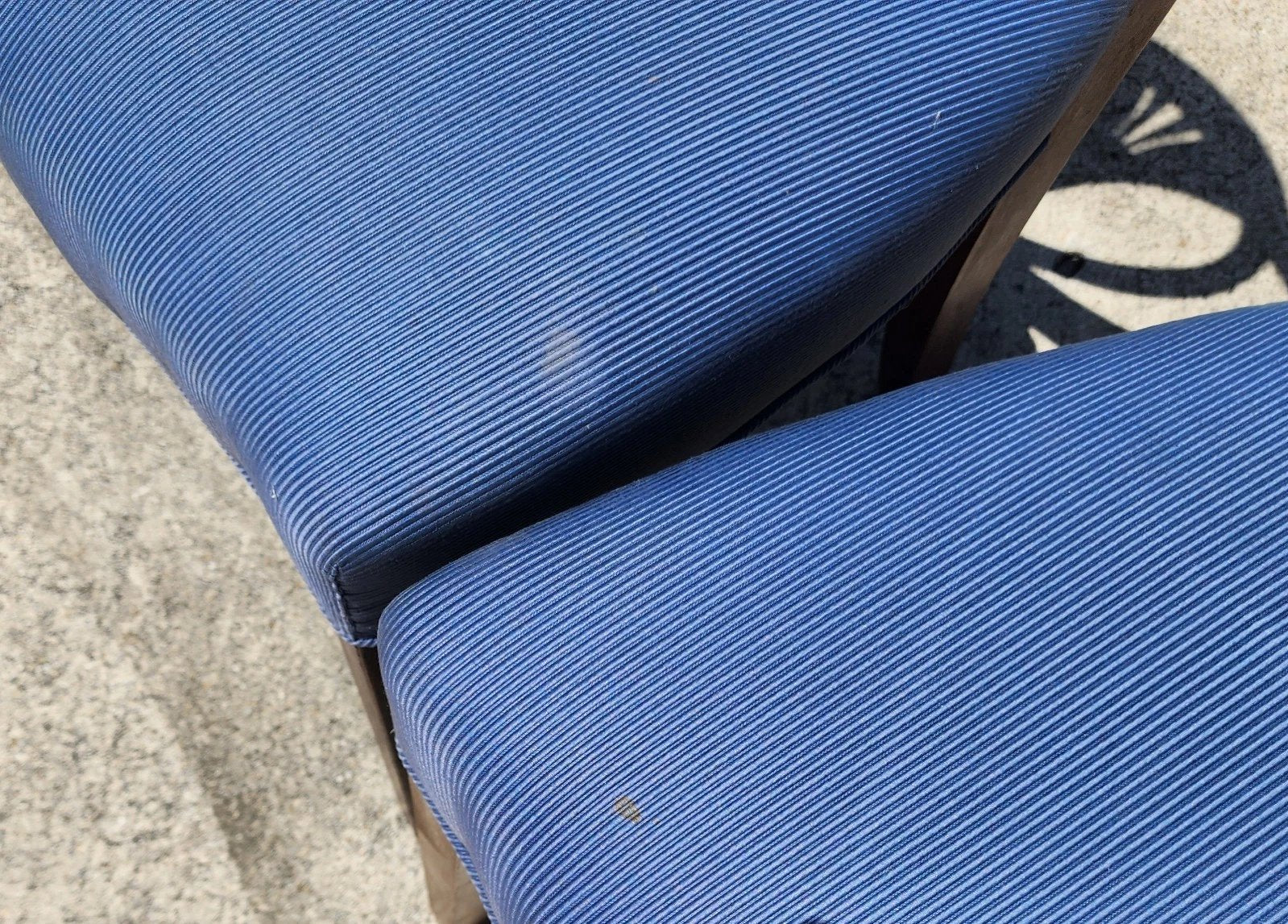 In good, structurally sound, and sturdy condition with some minor imperfections to frames which may be visible upon close inspection. Fabric has some faint stains which we have not tried to clean. The photos and video are an important part of the item description and condition so please use the zoom feature to view them closely.