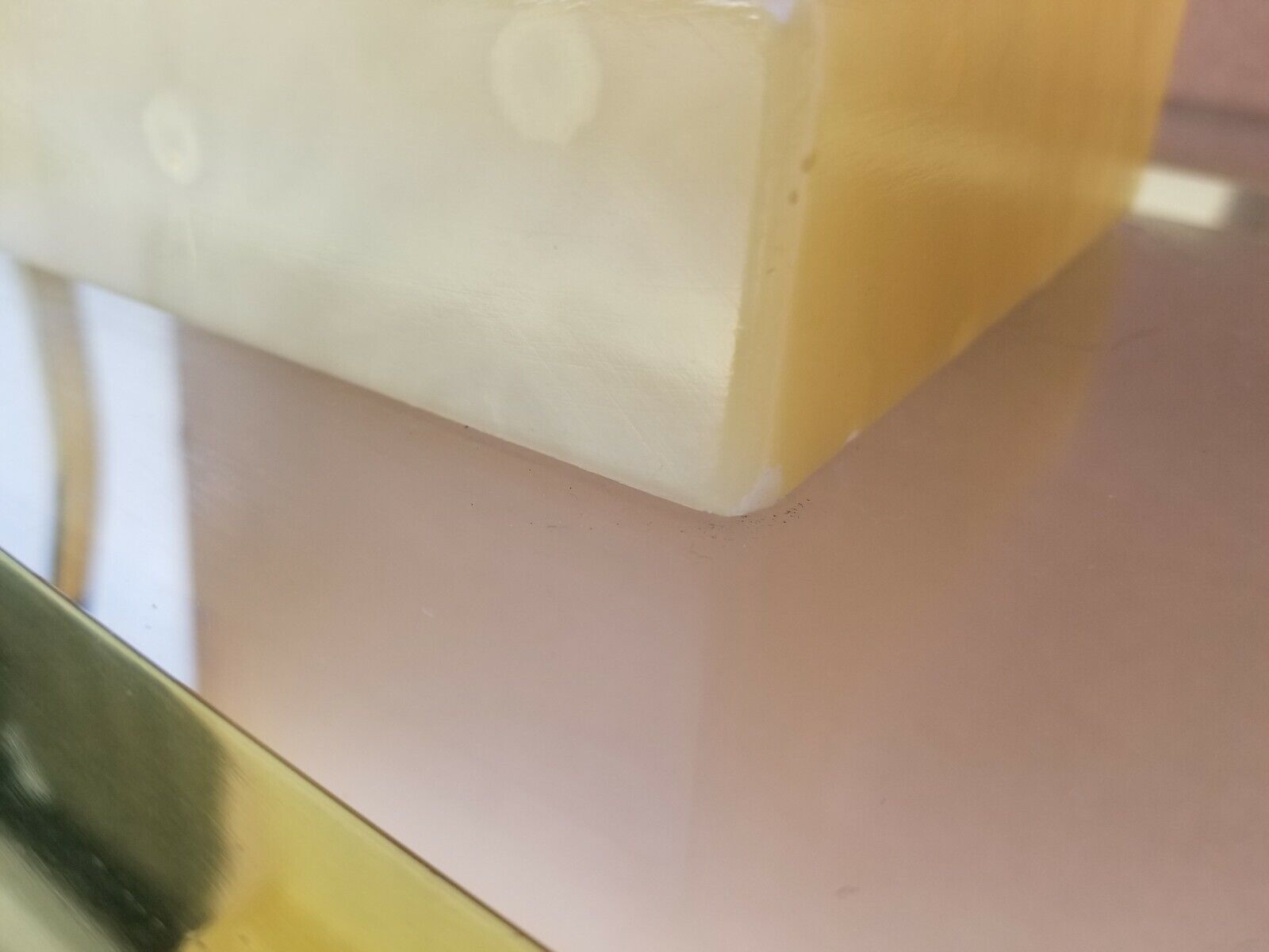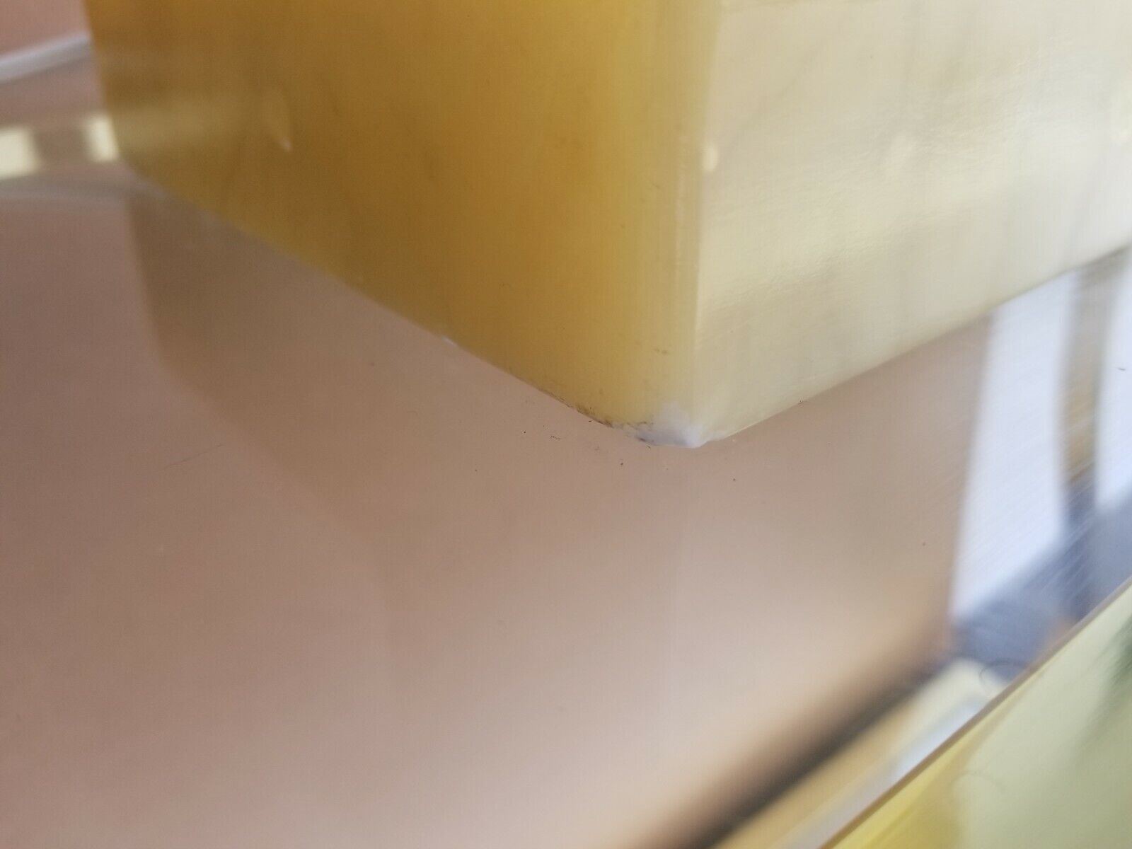 Has a working socket with some very small nicks and small chips on the bottom corners of the base as shown.
