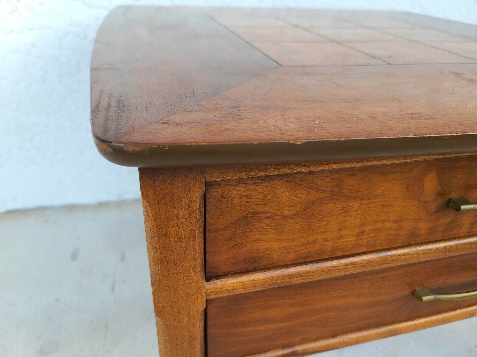 Vintage Mid Century LANE MCM Walnut and Burl Side End Table 2 Drawers 1923