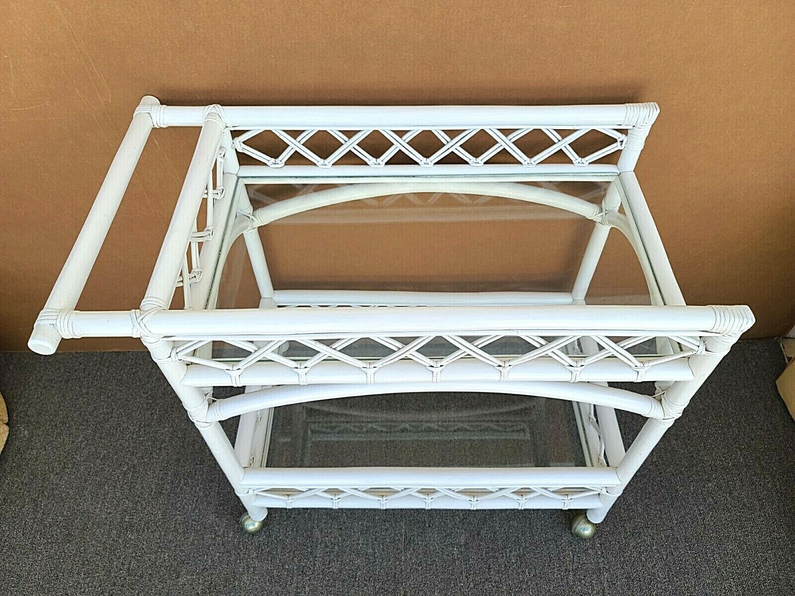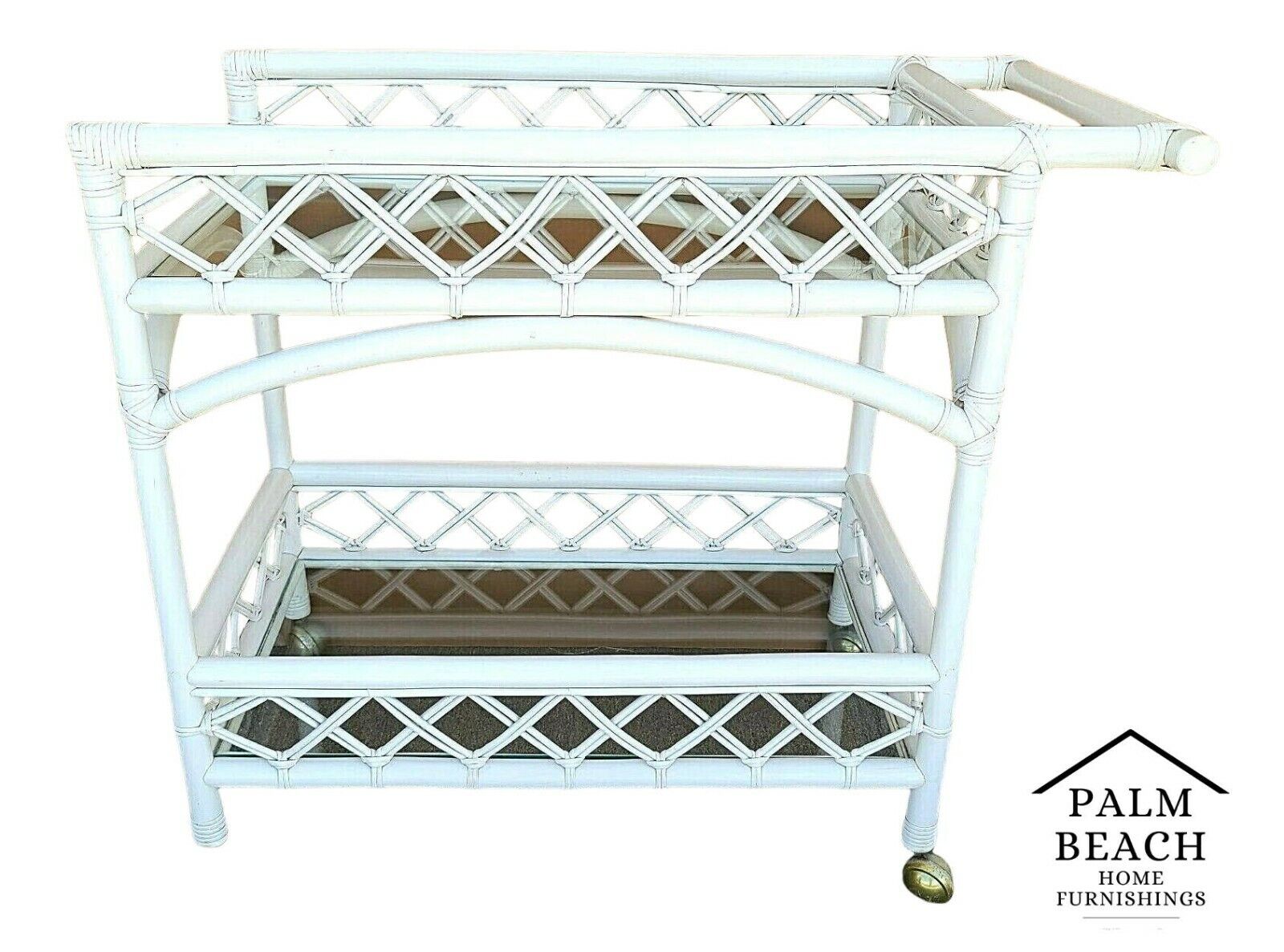 Vintage Palm Beach Coastal Bamboo & Glass 2 Tier Dry Bar Serving Cart Trolley