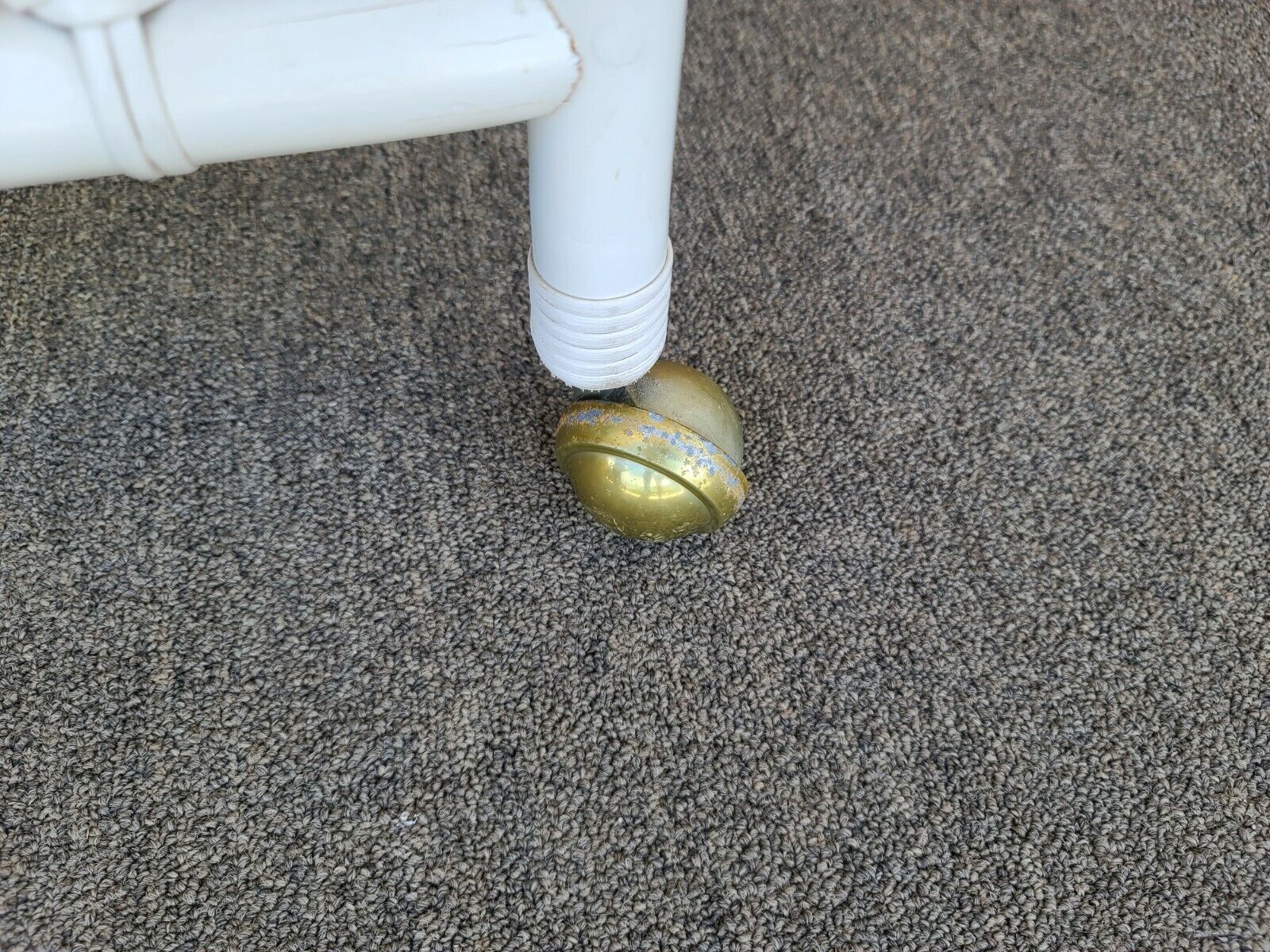 In good, structurally sound, and sturdy condition with only some scratches/wear on the brass casters.