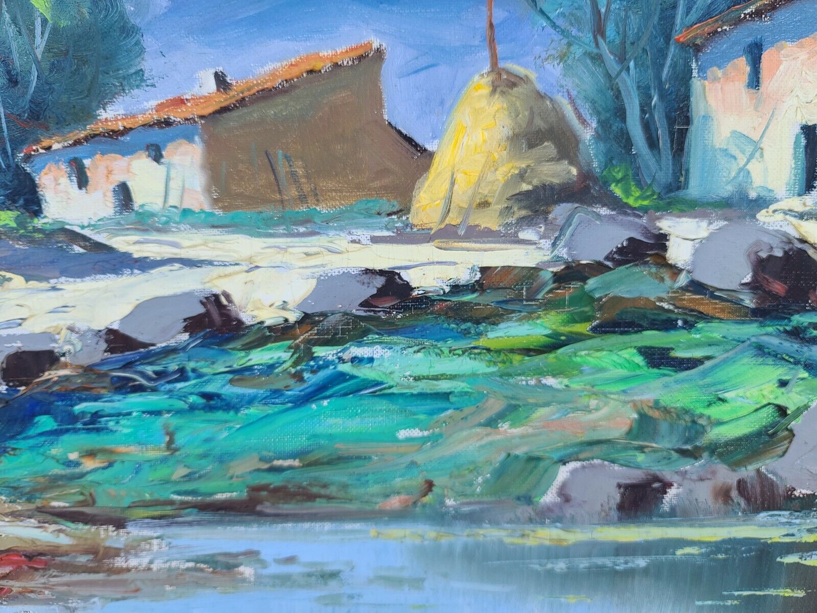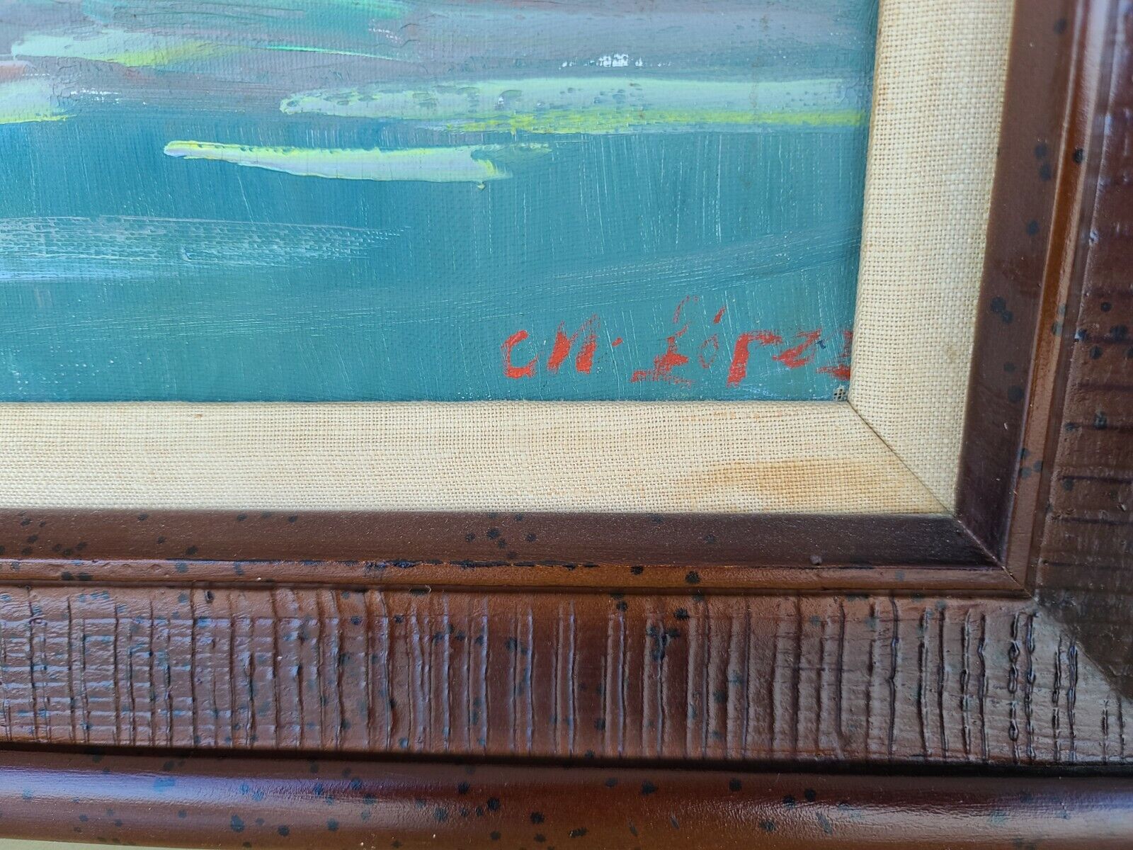 Vintage Signed Cityscape Village Landscape Oil Painting Framed