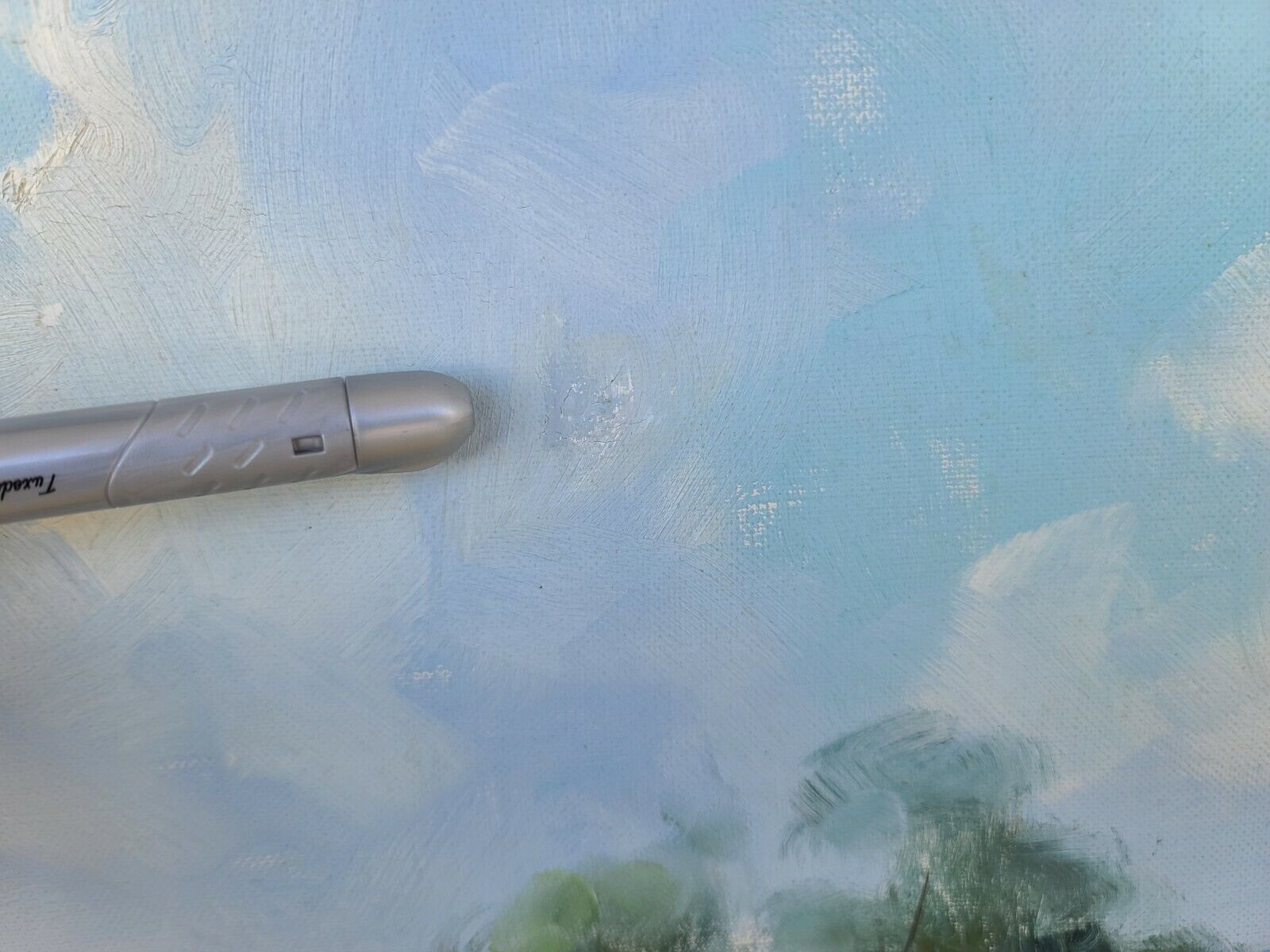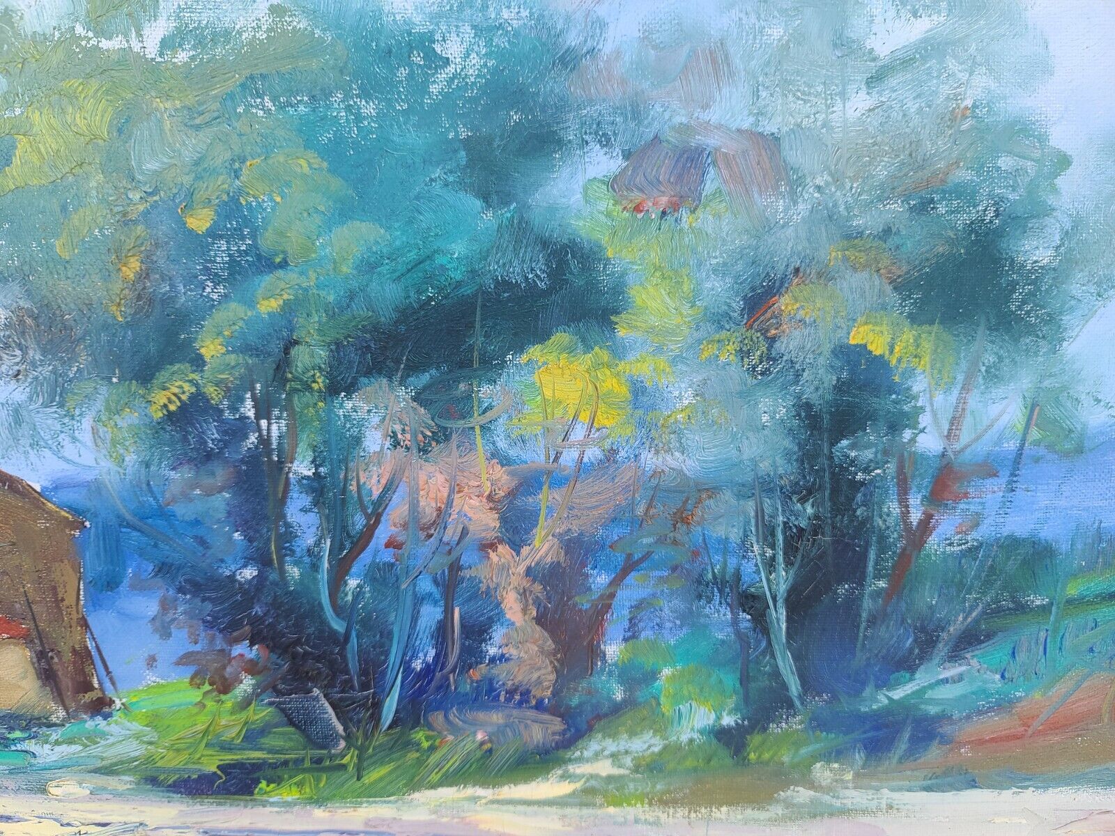 Brilliant colors and wonderful brushwork. Original wood frame has some nicks and dings that have been retouched.