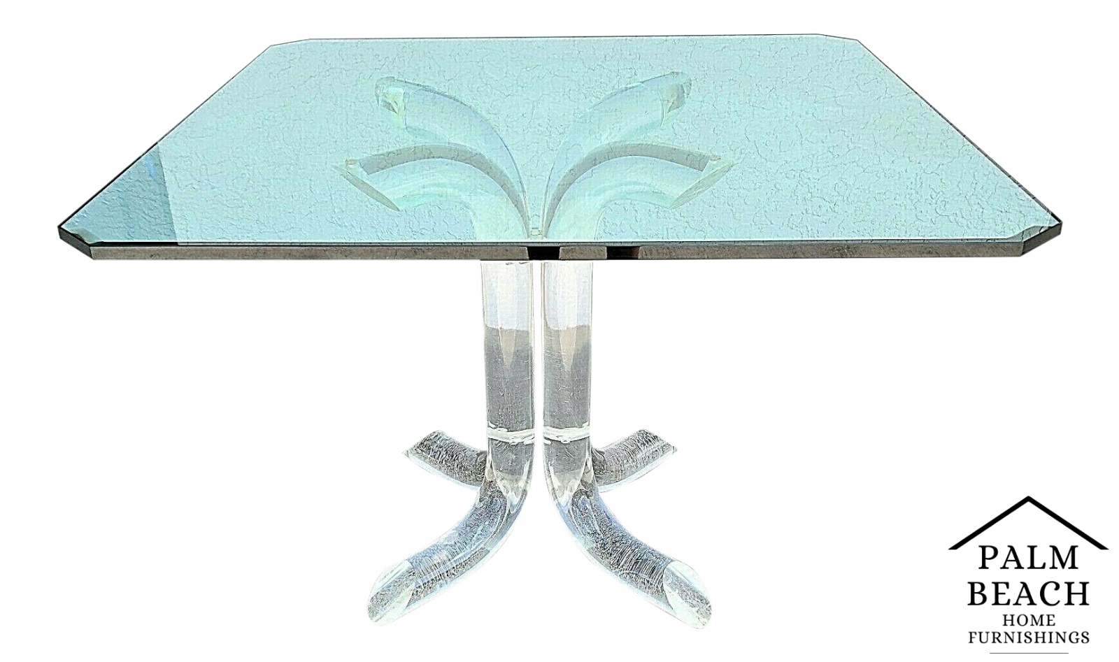 Vtg Charles Hollis Jones Tusk Lucite & Glass 4 Prong Dining Gaming Table