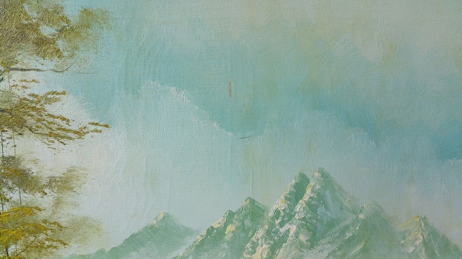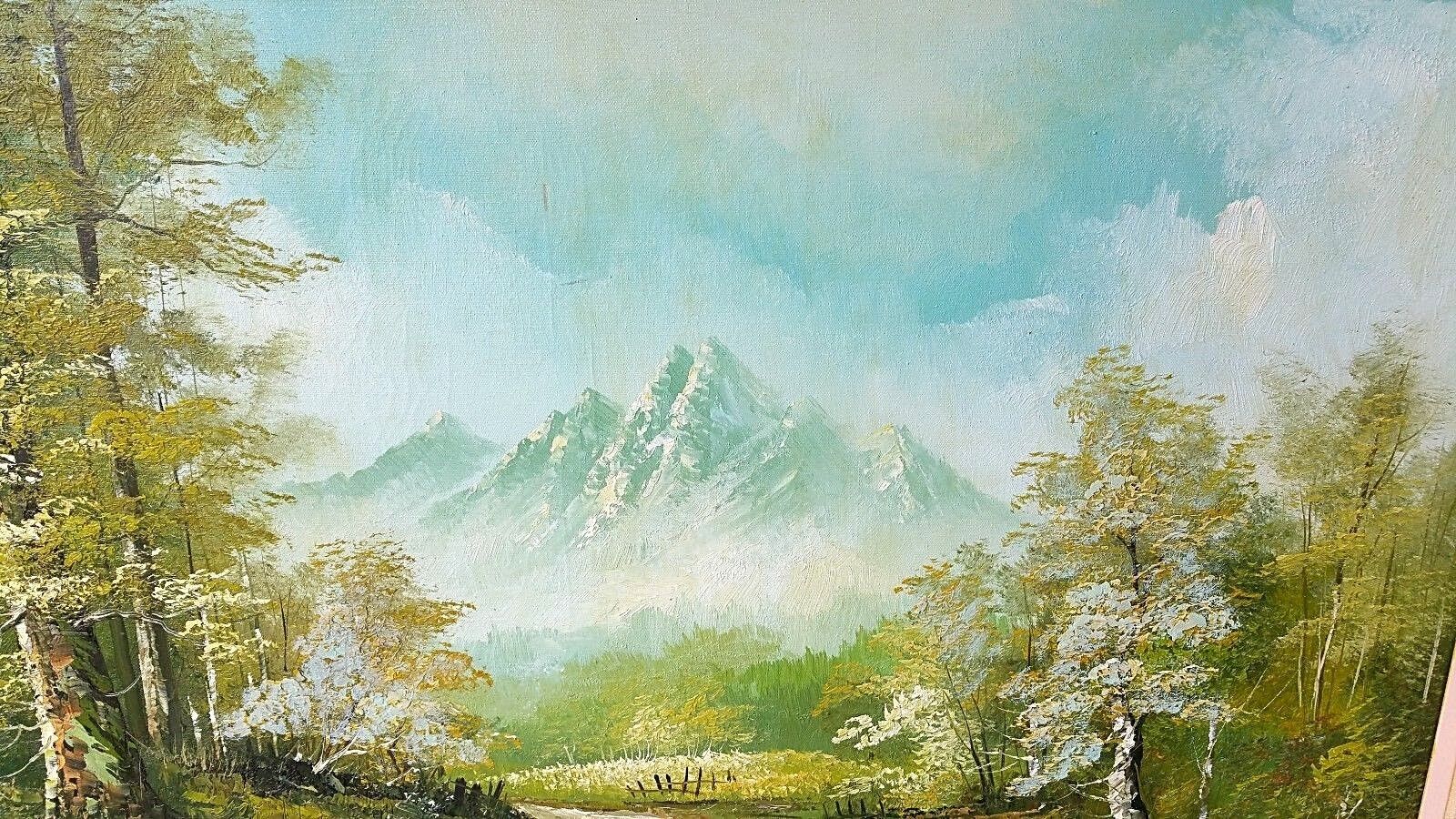 Vtg Estate Signed by Cooper Landscape Oil Painting Mountains Forest Path