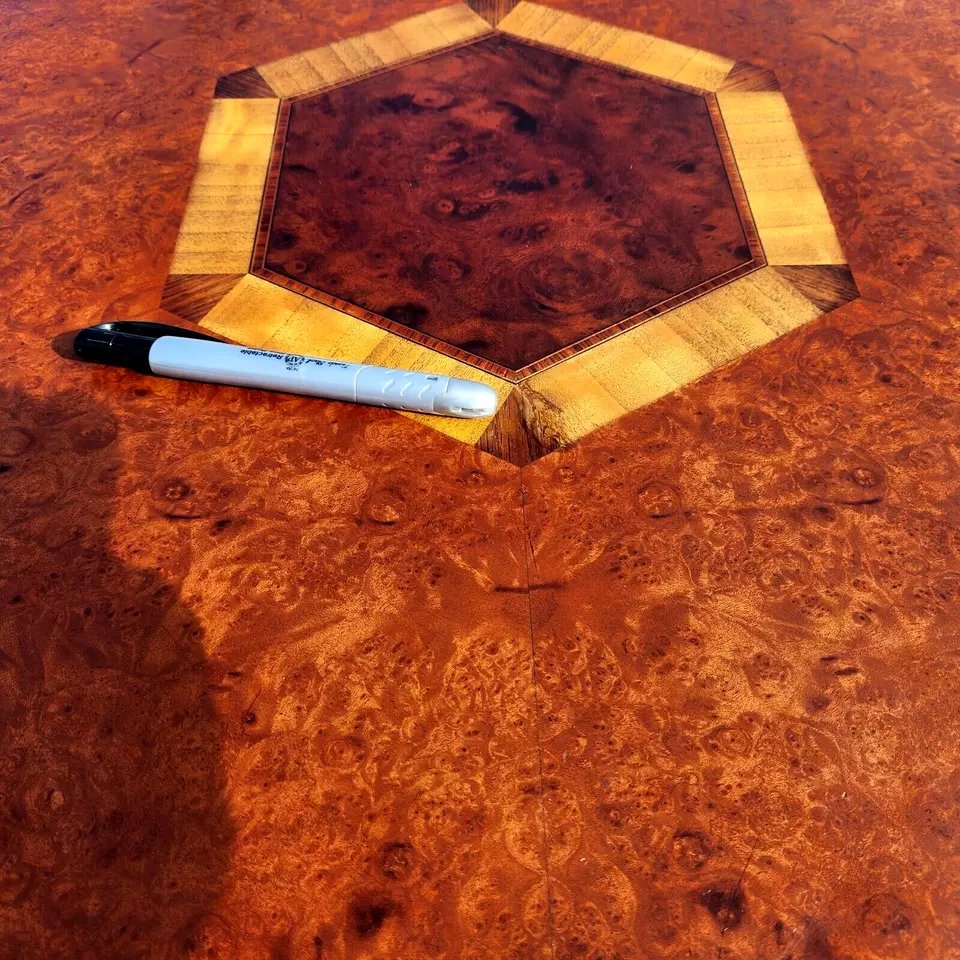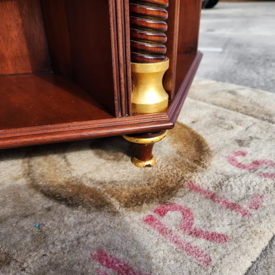 With inlaid Satinwood design, Giltwood highlights, and adjustable shelves.